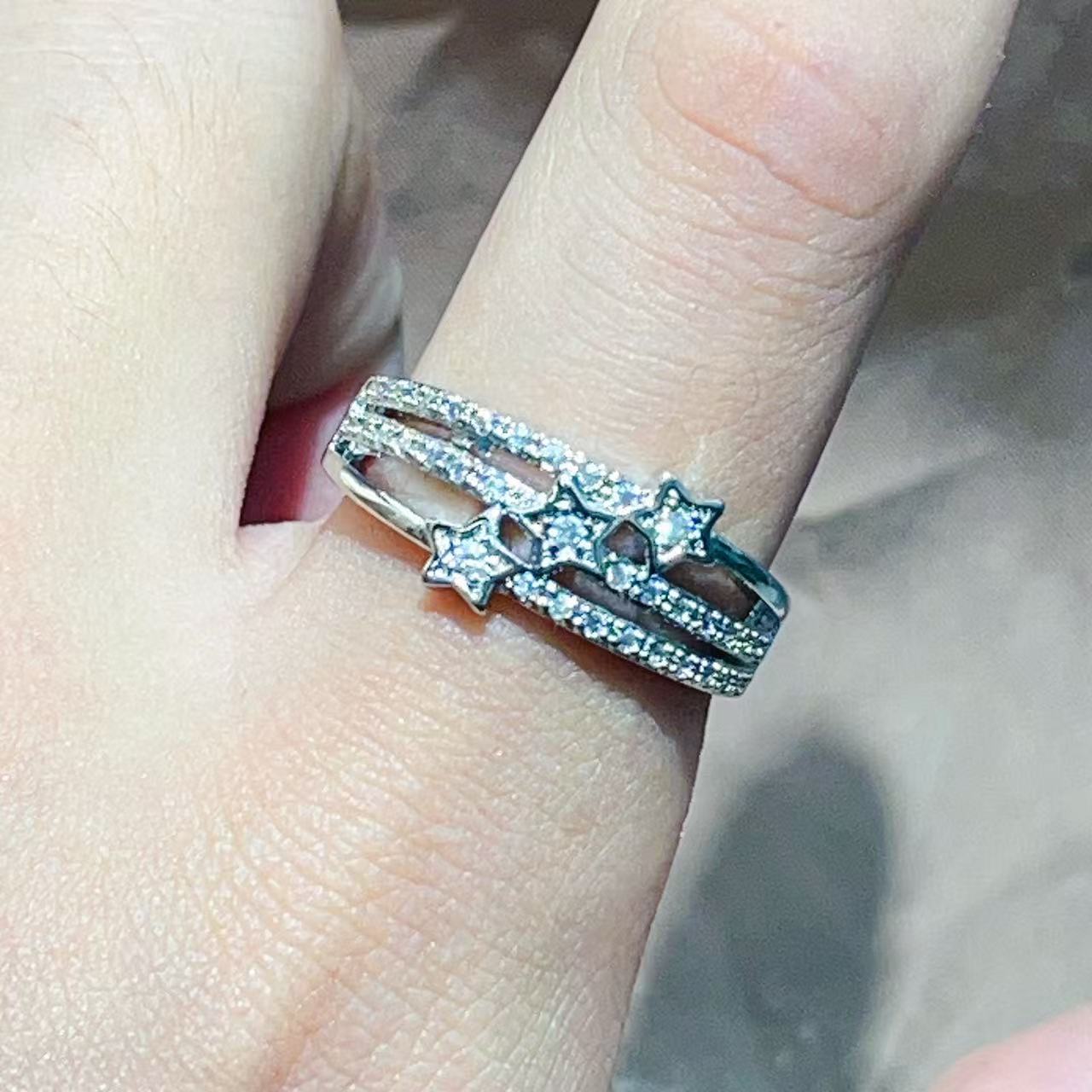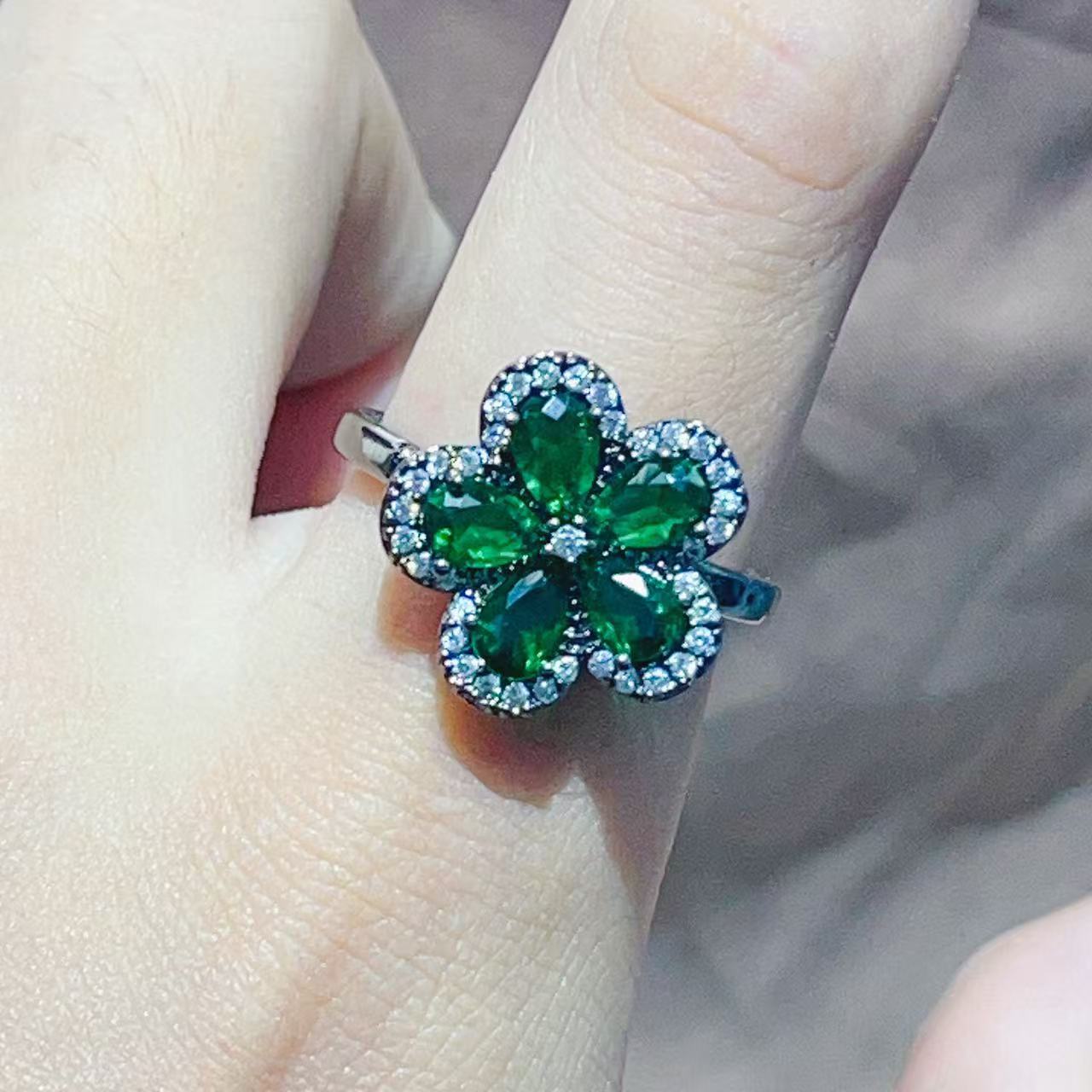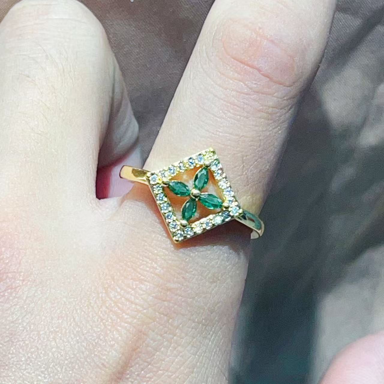 跨境新款时尚优雅气质铜镀真金保色樱花花朵微镶高级感戒指