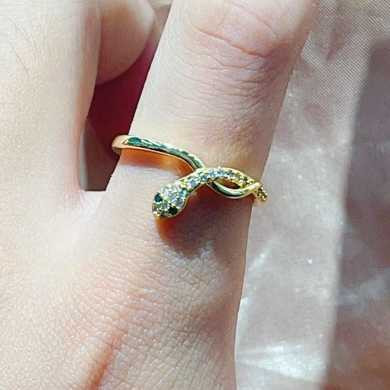 欧美时尚热销铜镀真金保色紧箍咒小熊蛇微镶锆石戒指配件可调节