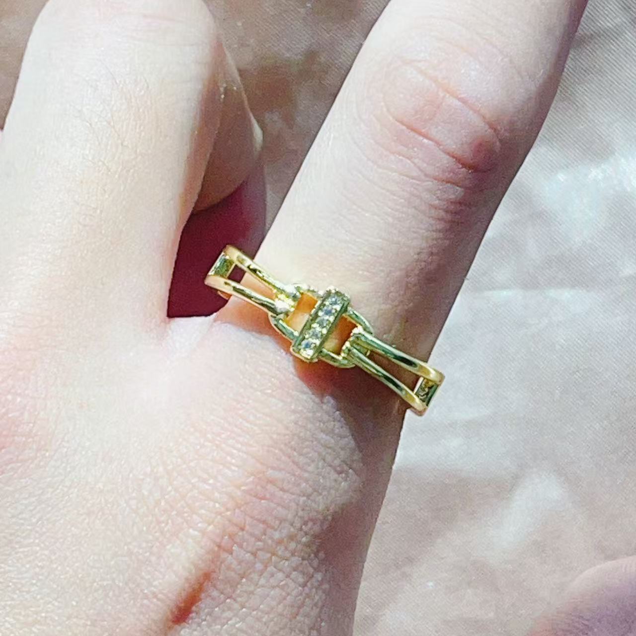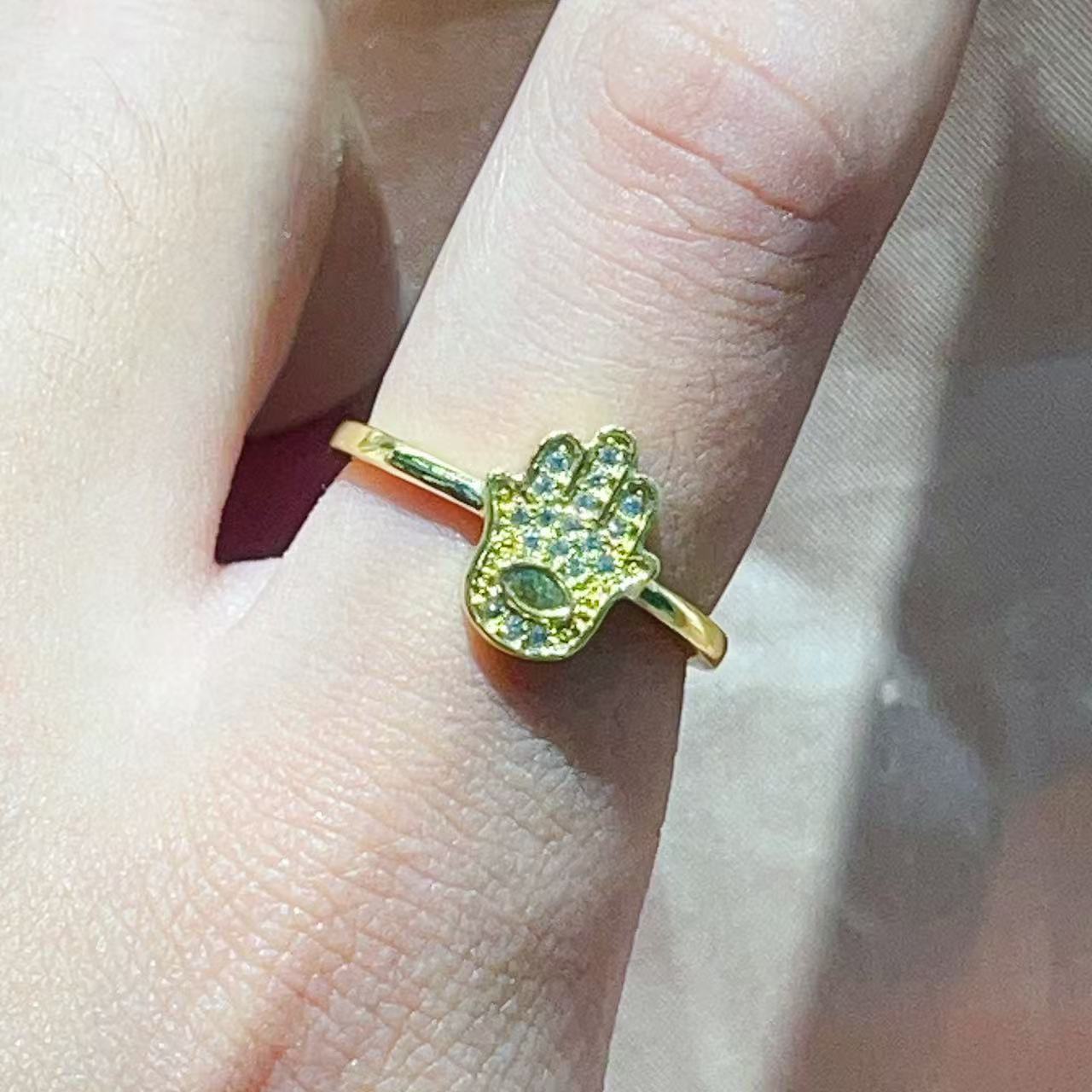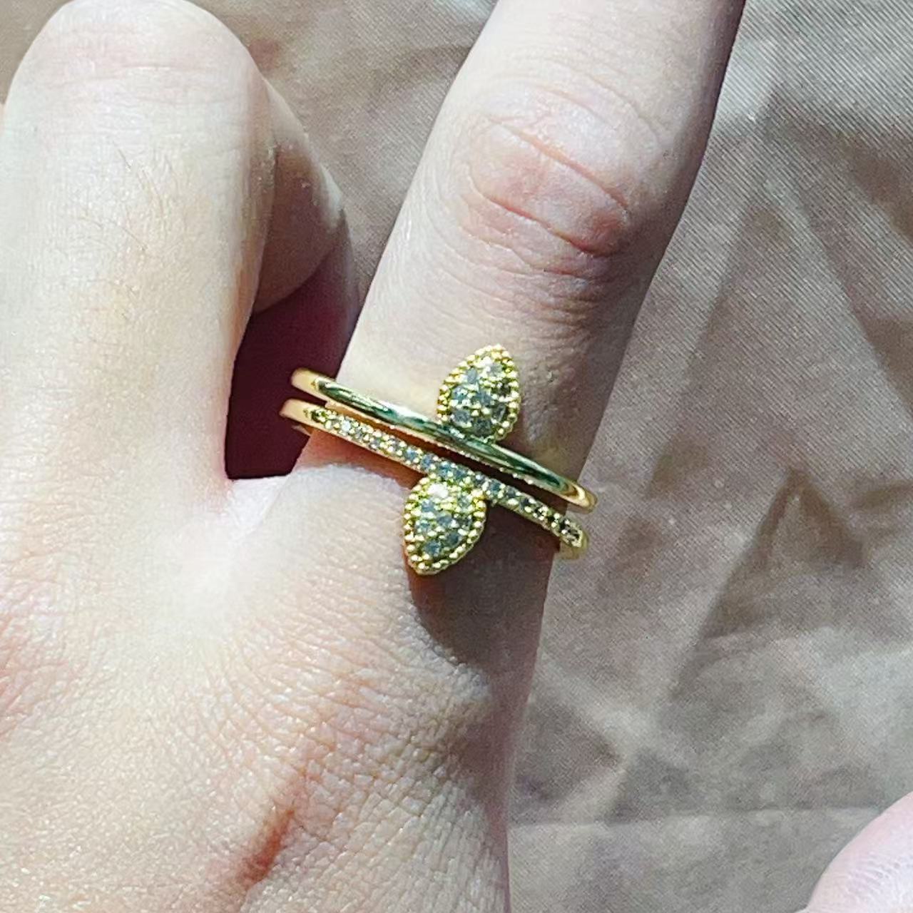 热销时尚铜镀真金微镶锆石开合手掌叶子小众设计网红气质戒指