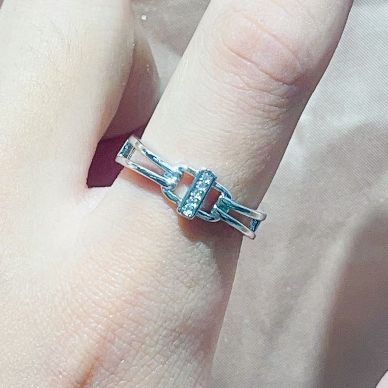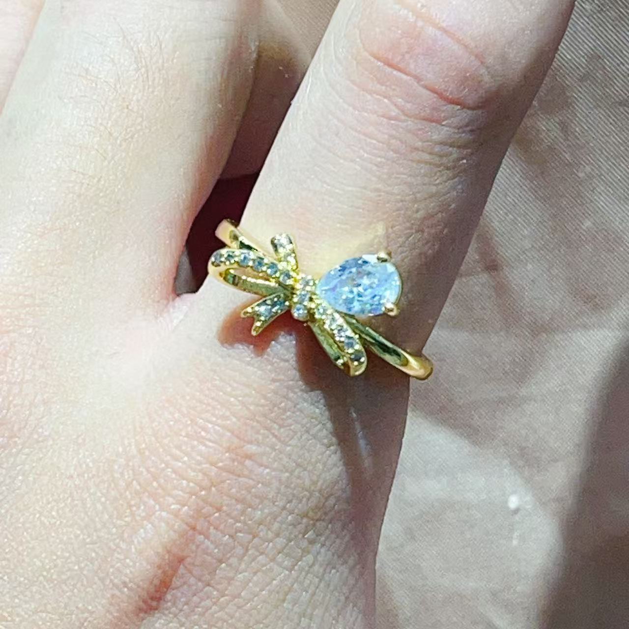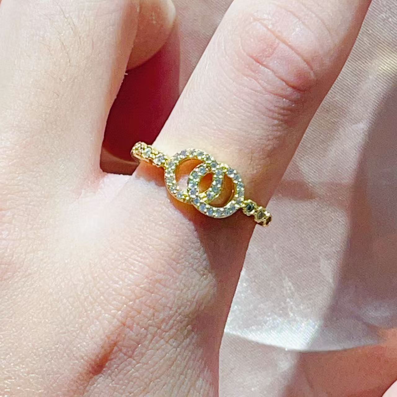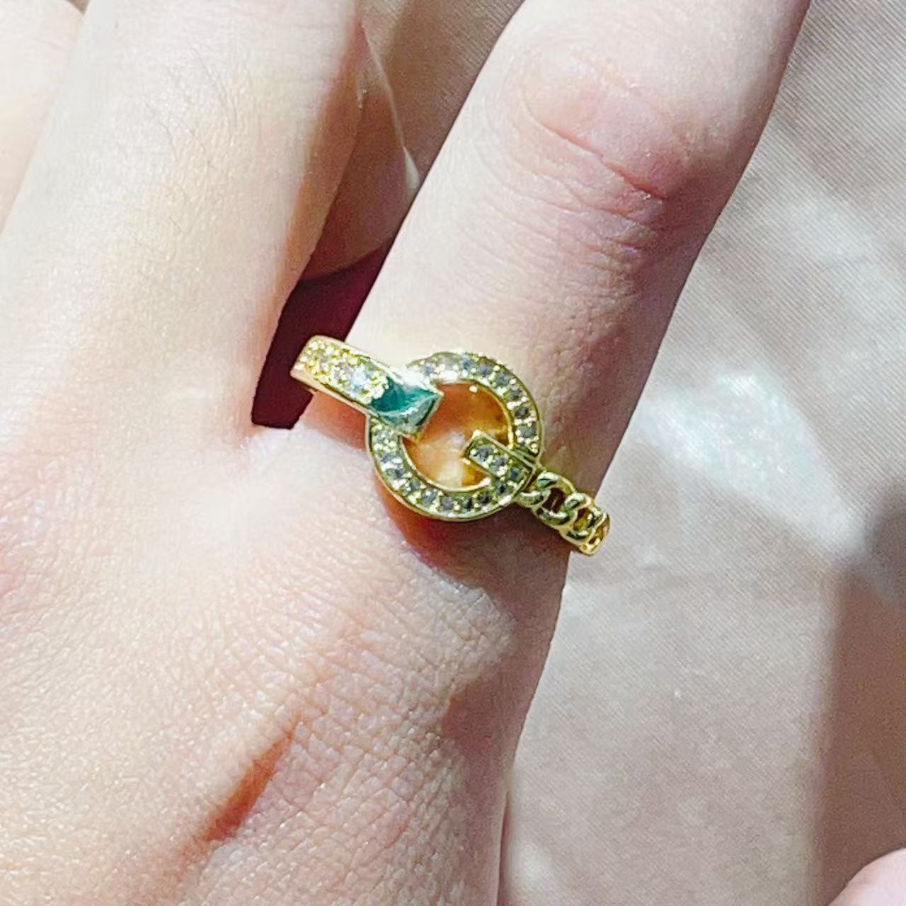 热销时尚铜镀真金微镶锆石开合手掌叶子小众设计网红气质戒指