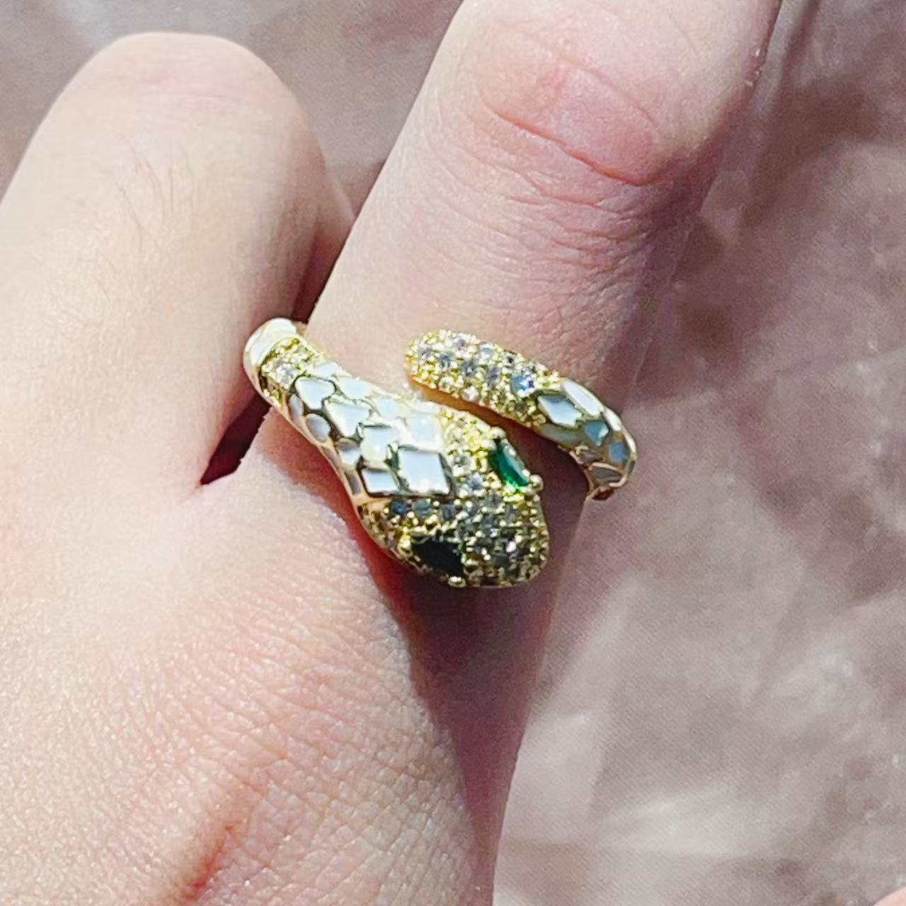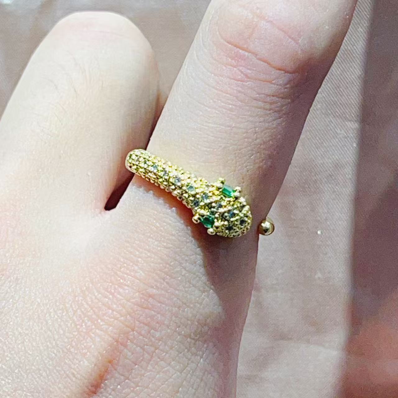 欧美时尚个性铜镀真金保色微镶锆石蛇豹子ins风闪耀戒指可调节