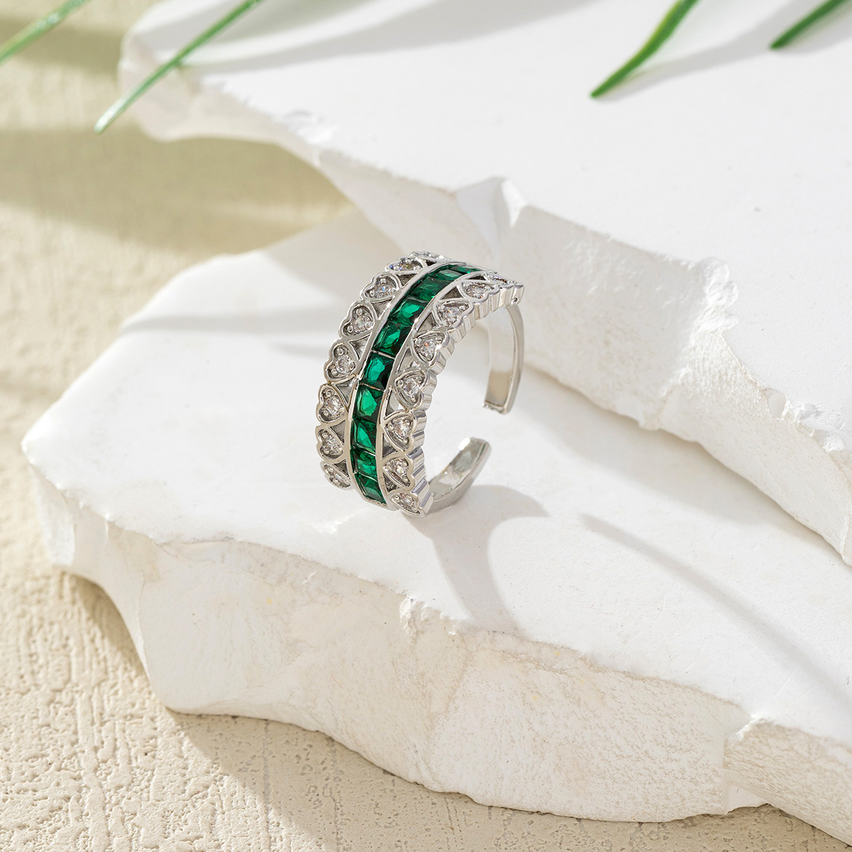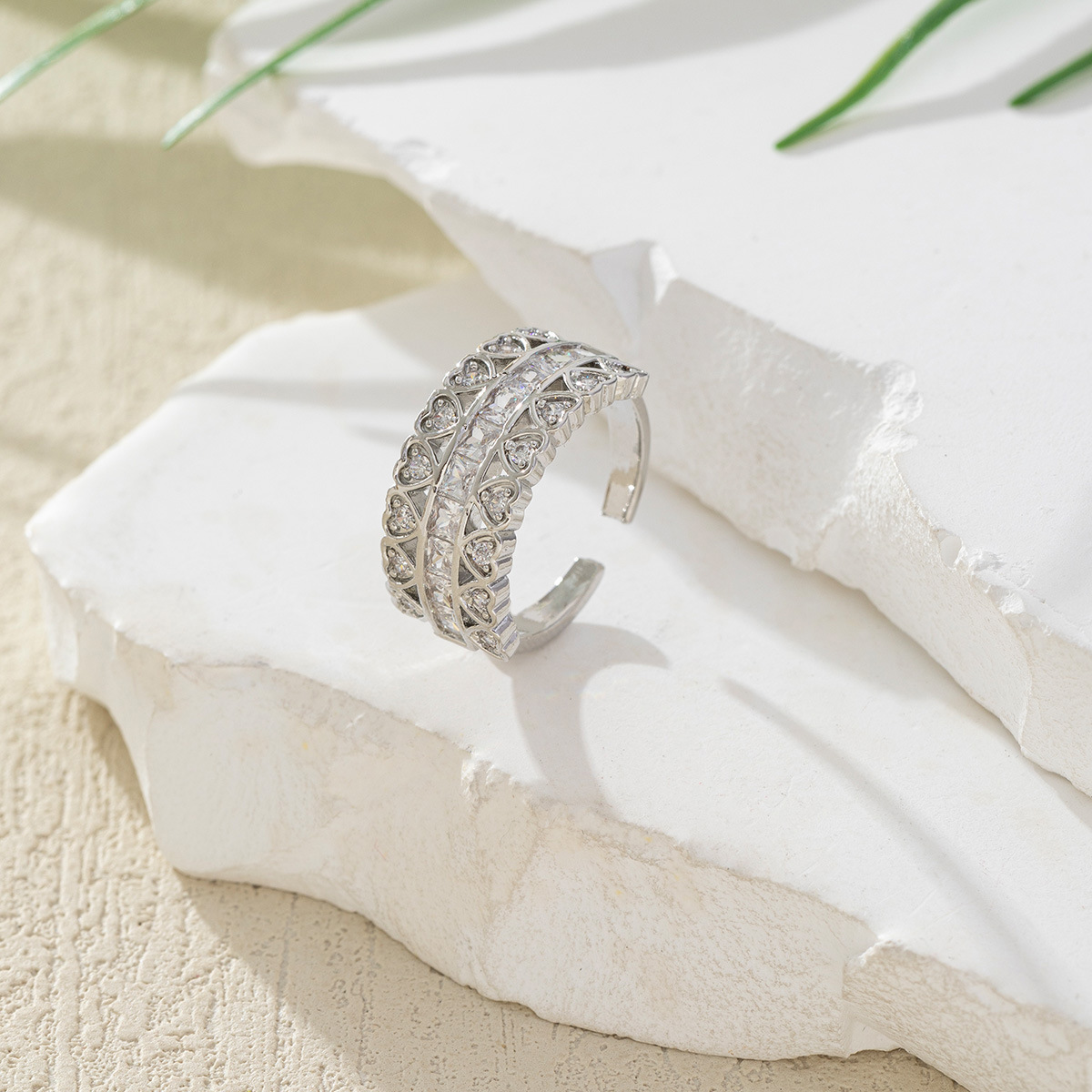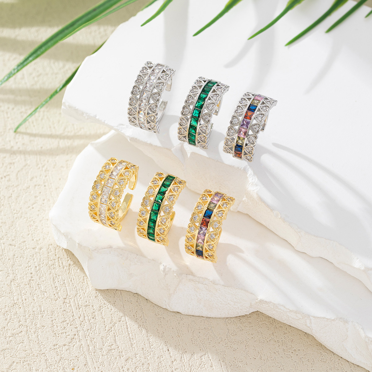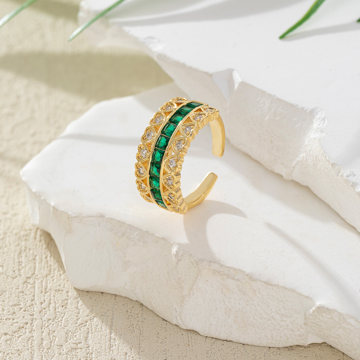 亚马逊热卖锆石戒指 18k金电镀爱心开口欧美小众彩色排钻高级指环