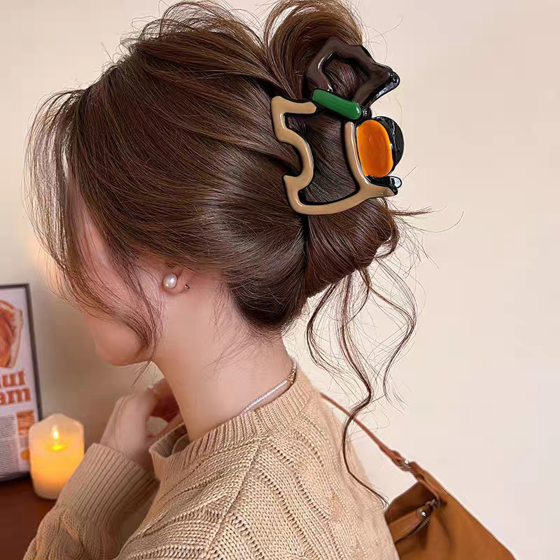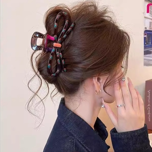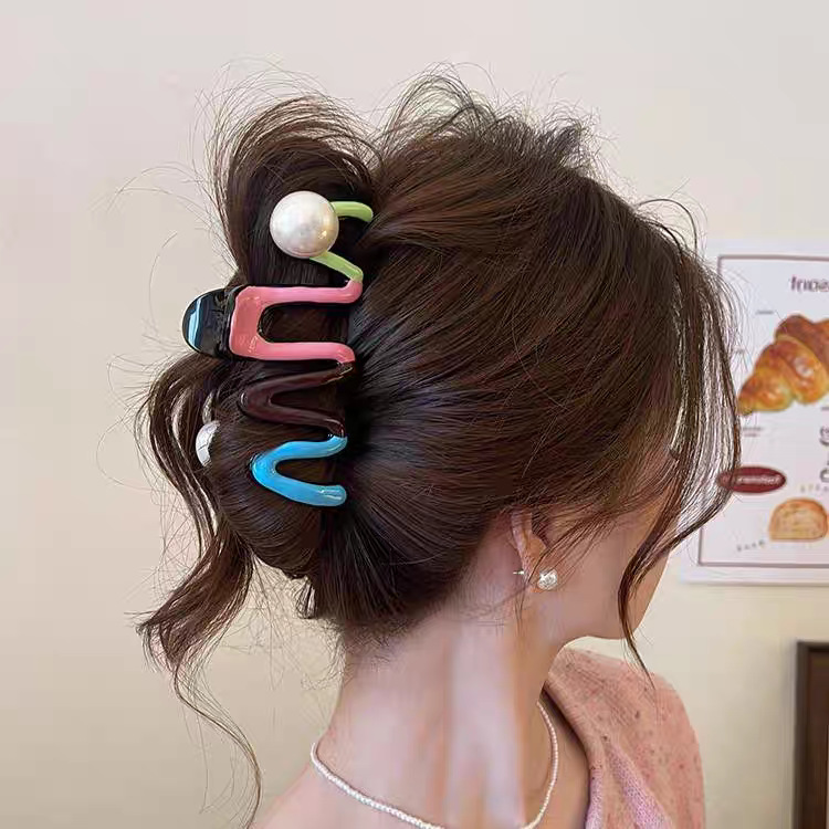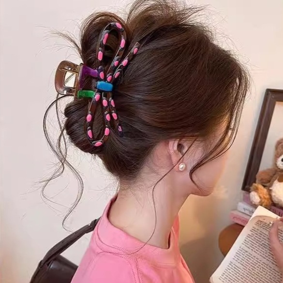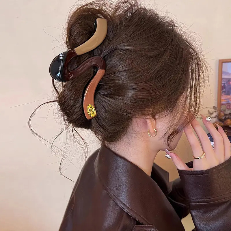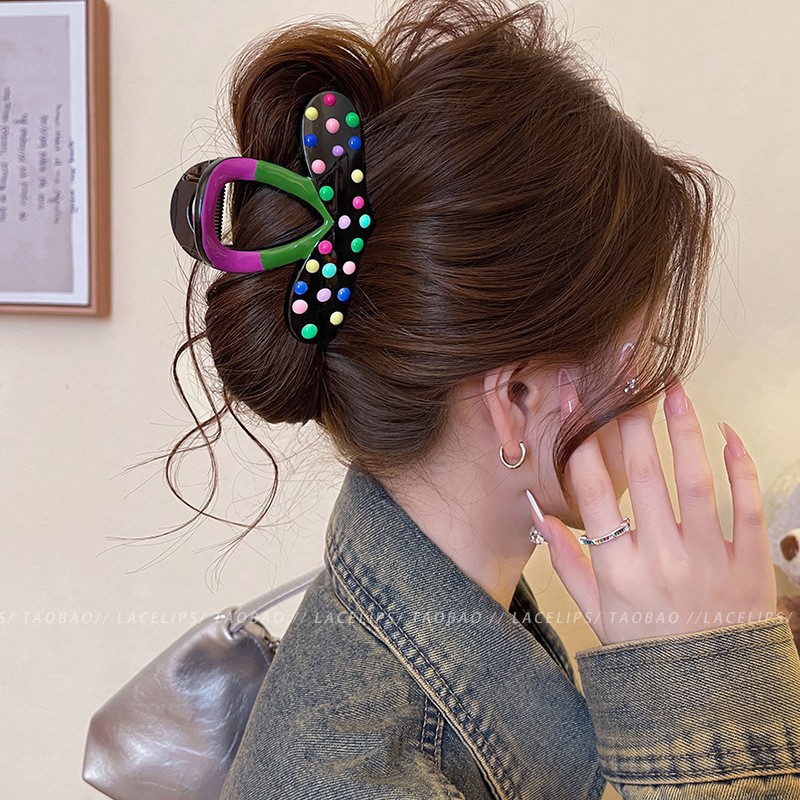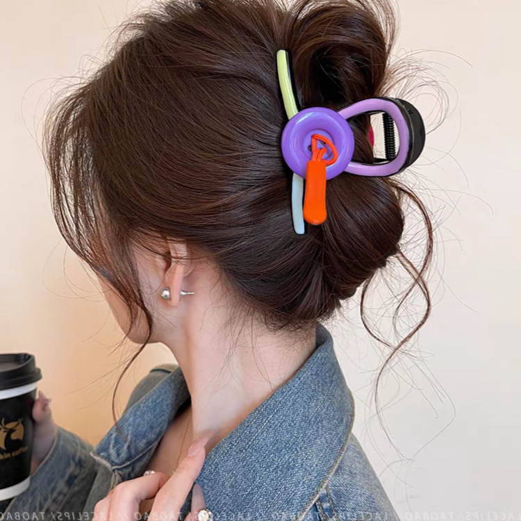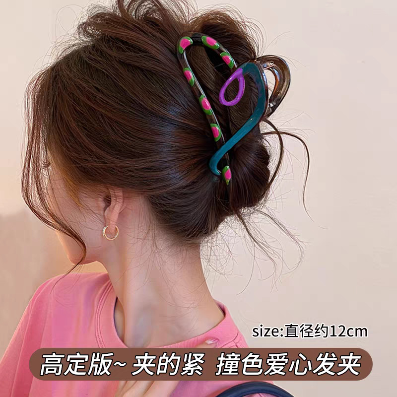 2025新款多巴胺撞色发夹甜美感鲨鱼夹抓夹后脑勺盘发头饰发饰