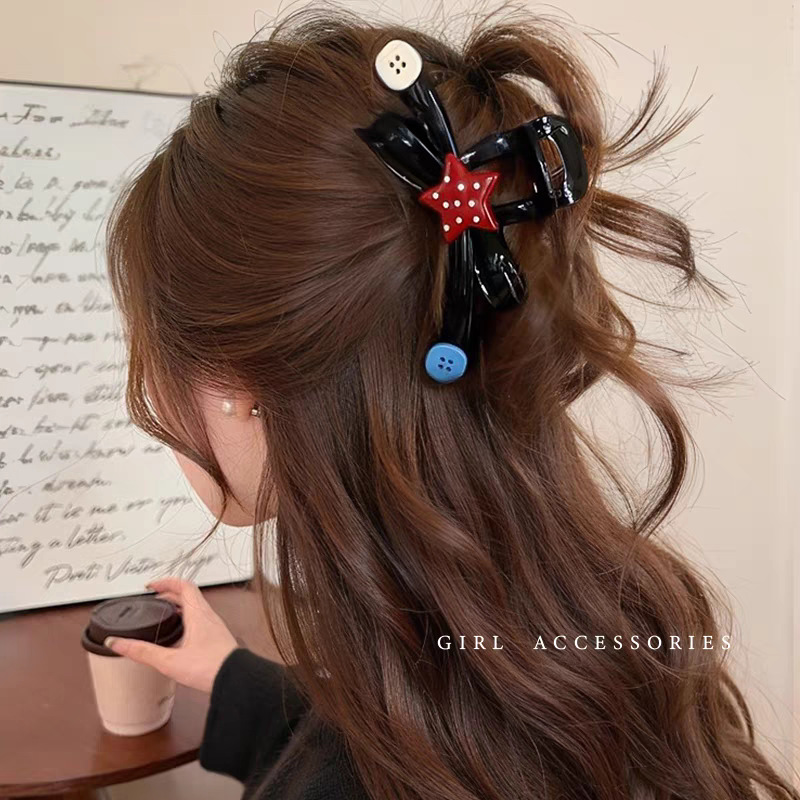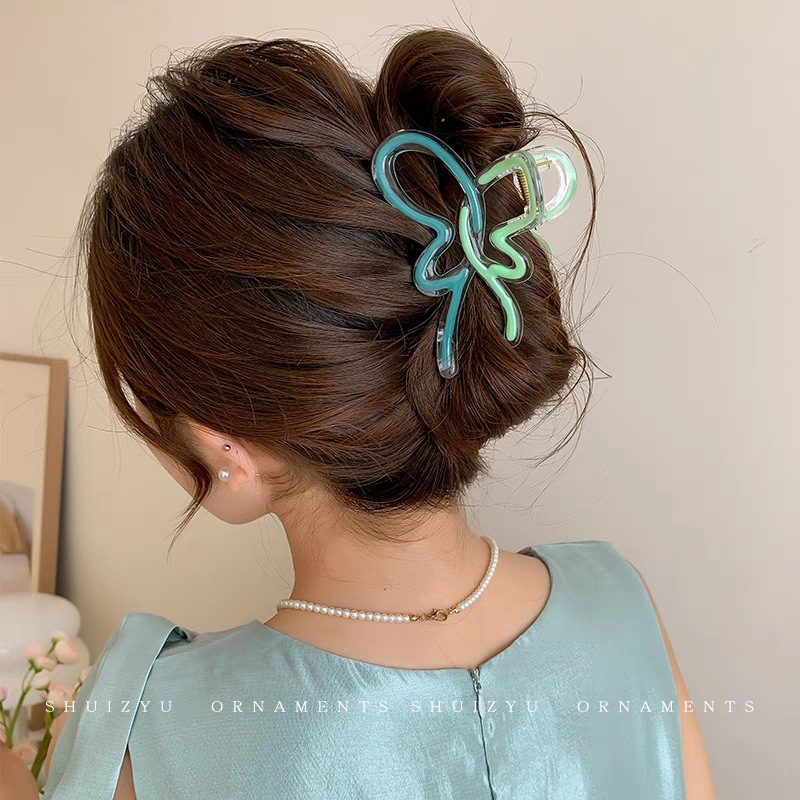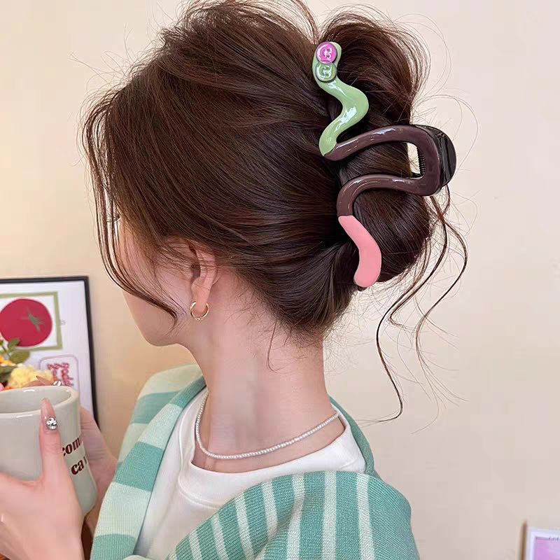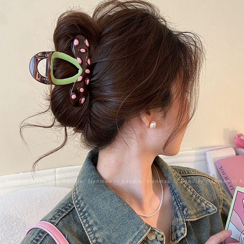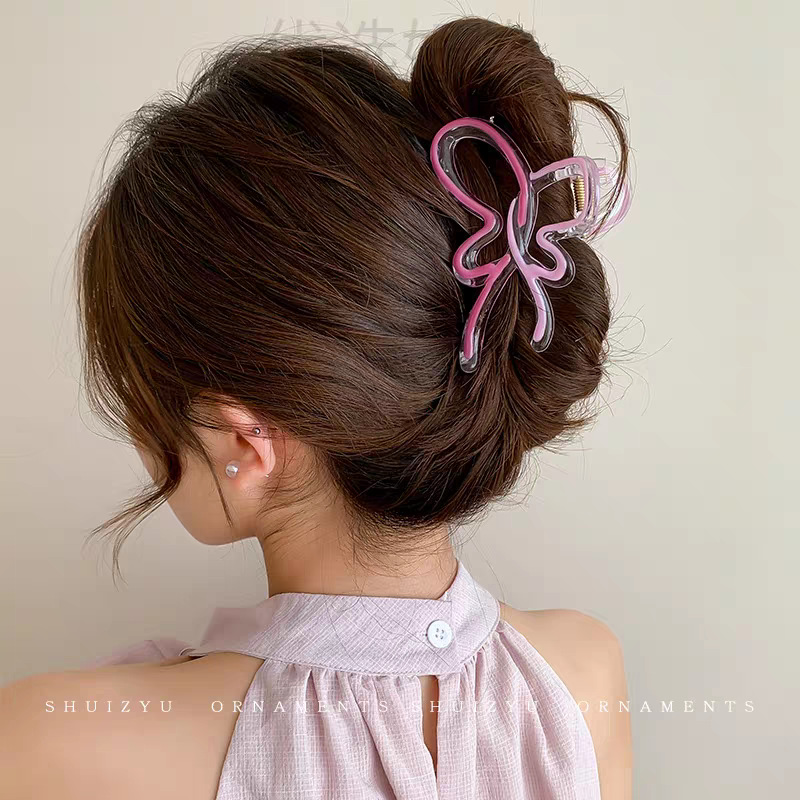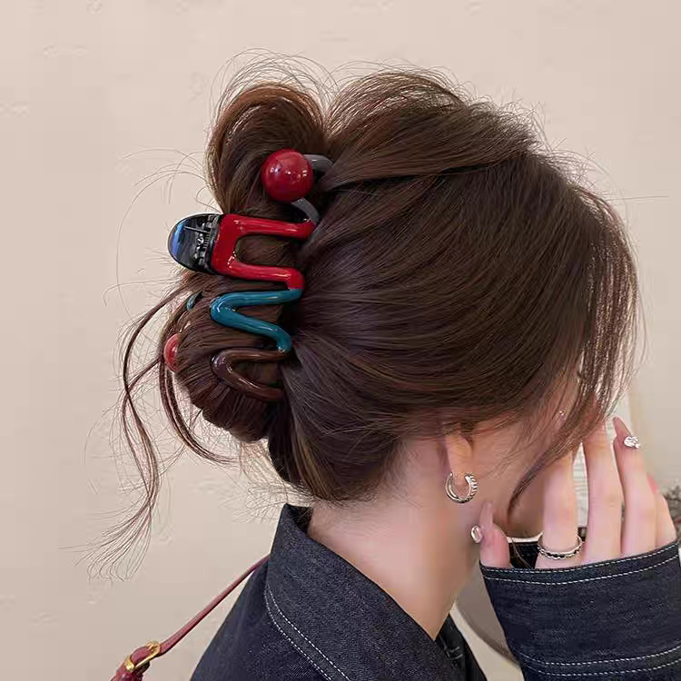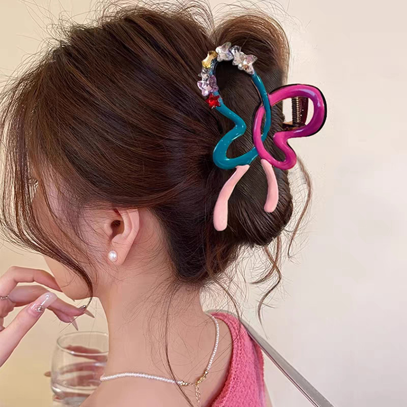 2025新款多巴胺撞色发夹甜美感鲨鱼夹抓夹后脑勺盘发头饰发饰
