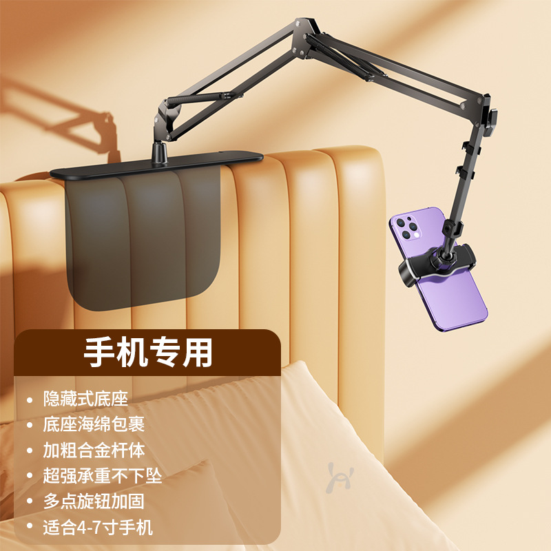 隐藏式床头懒人支架免夹手机平板电脑悬臂俯拍支架刷抖音刷剧支架