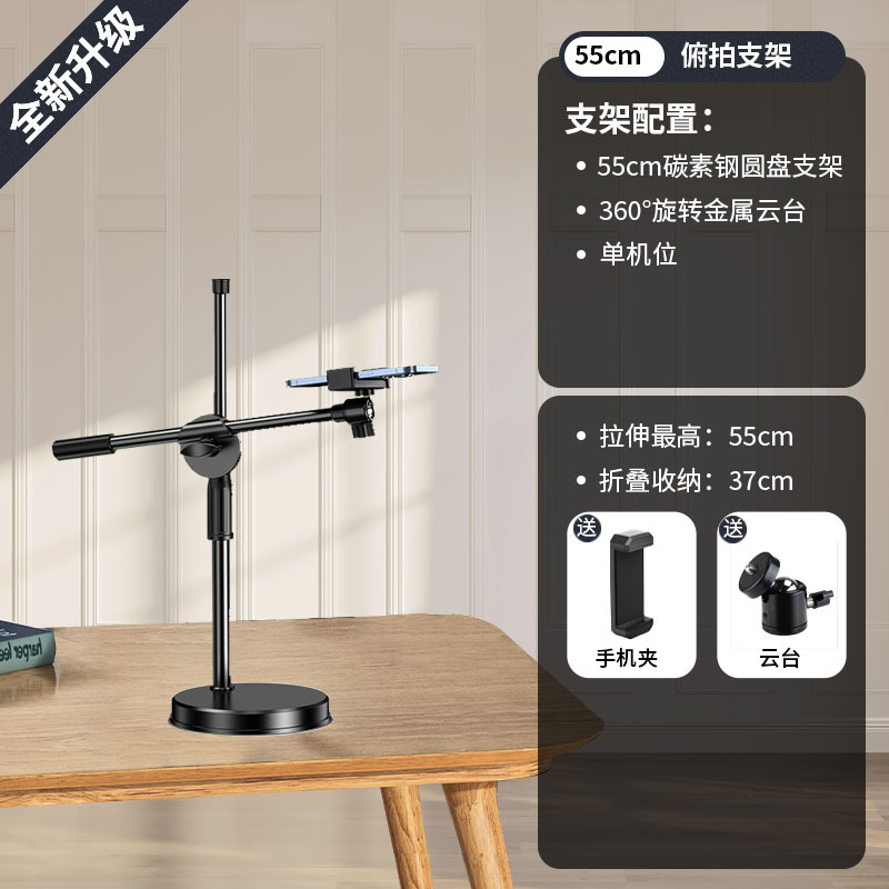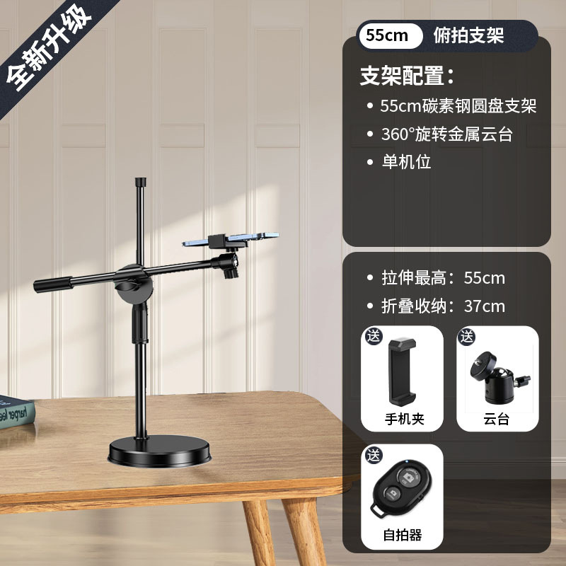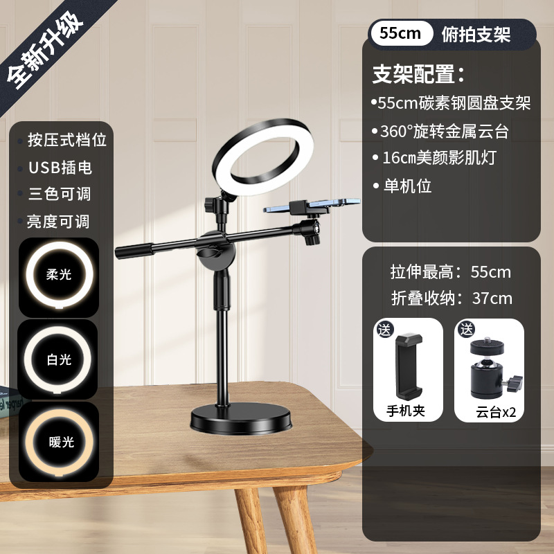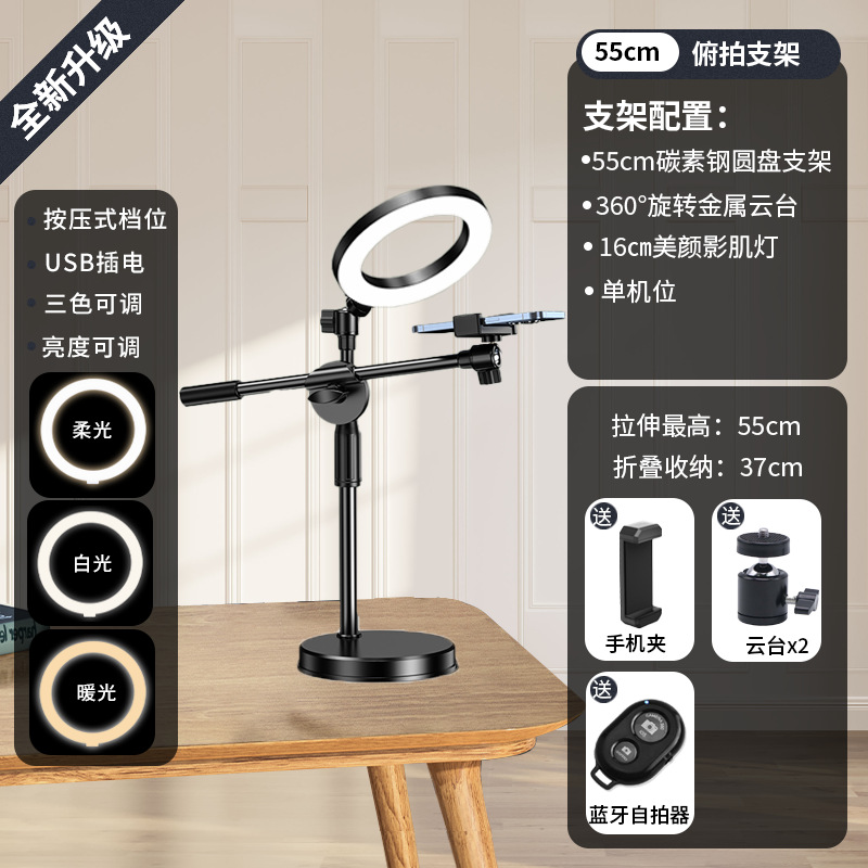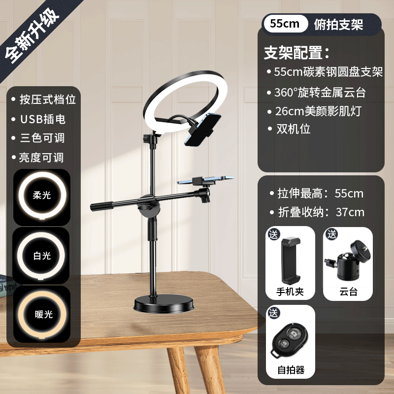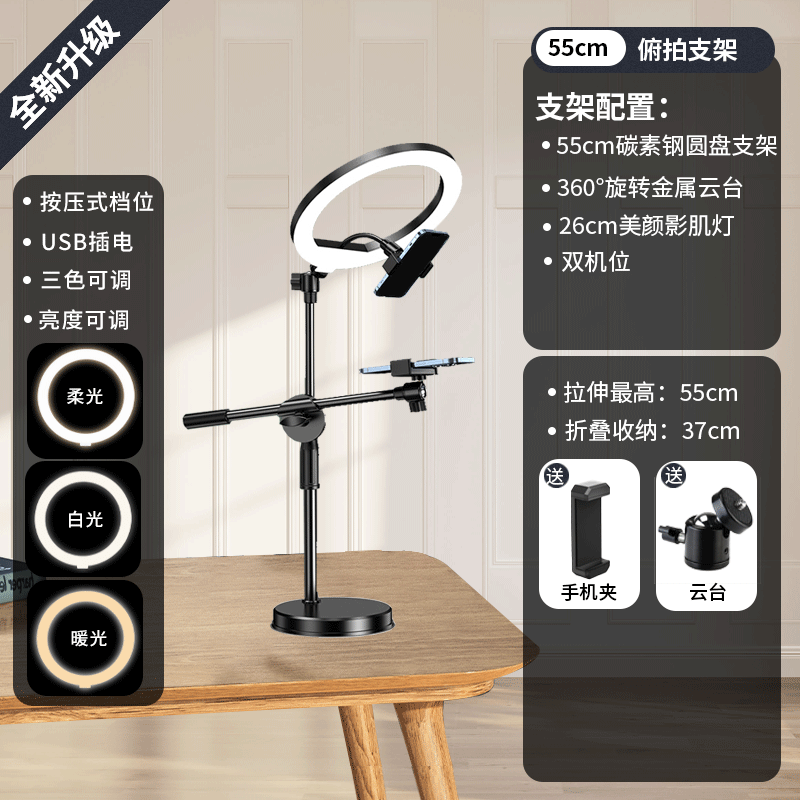 桌面俯拍手机支架新款直播录视频vlog拍美食神器拍摄补光灯支架