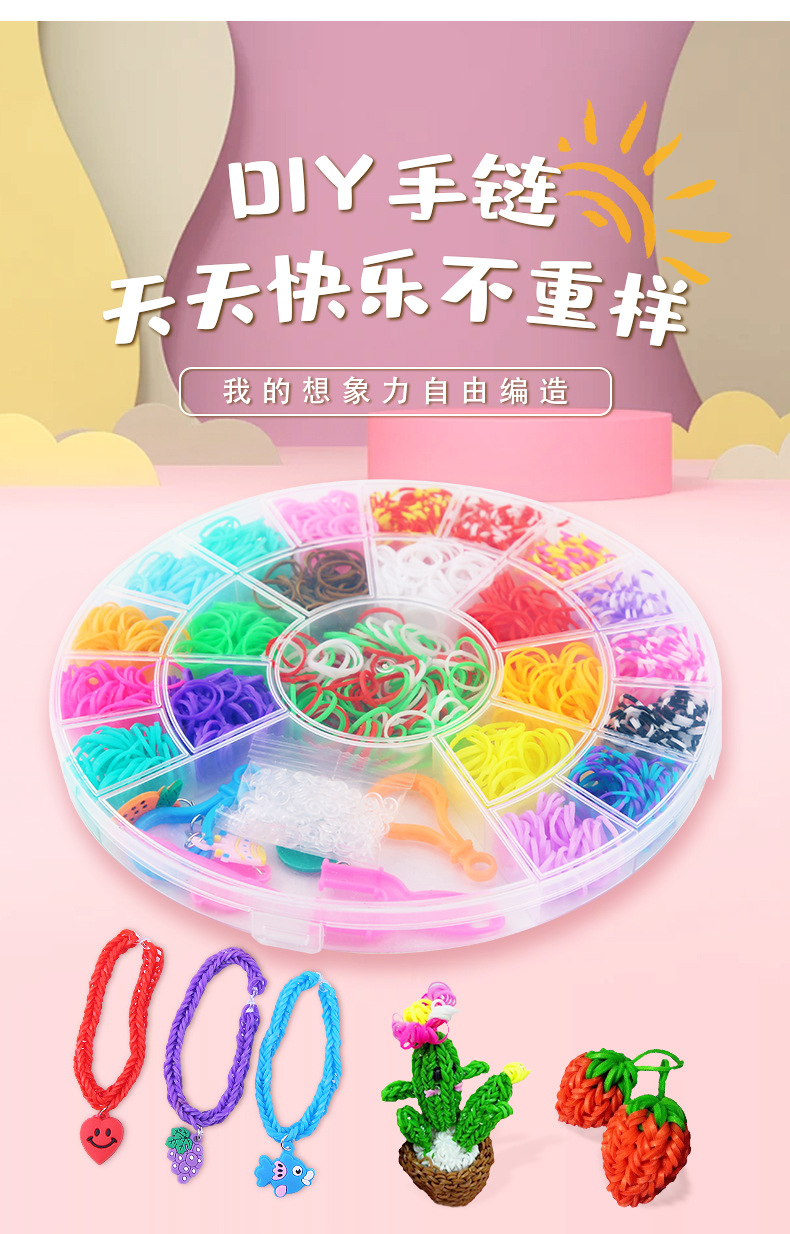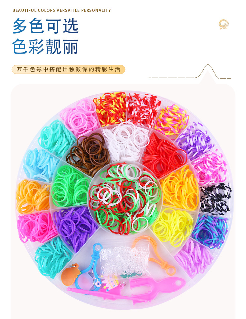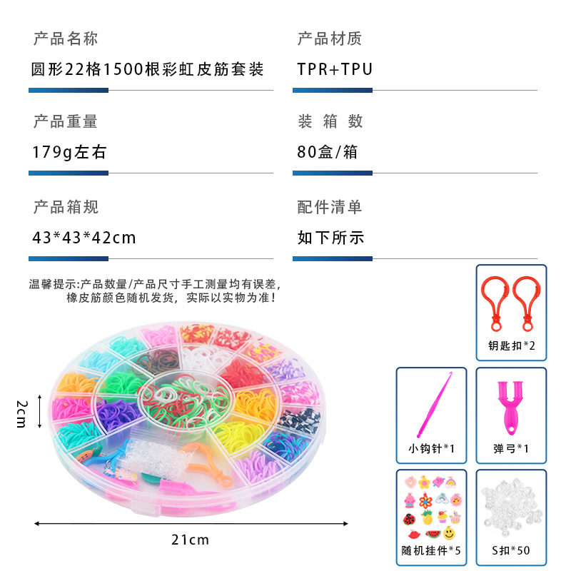 跨境彩虹编织橡皮筋圆形22格1500根彩色diy皮筋 儿童早教益智玩具