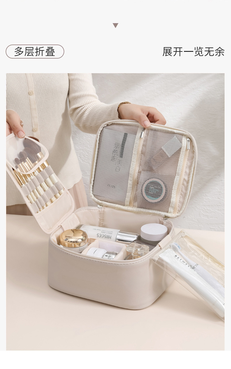 新款化妆包肤感PU皮便携旅行手提收纳洗漱包大容量厂家批发定LOGO
