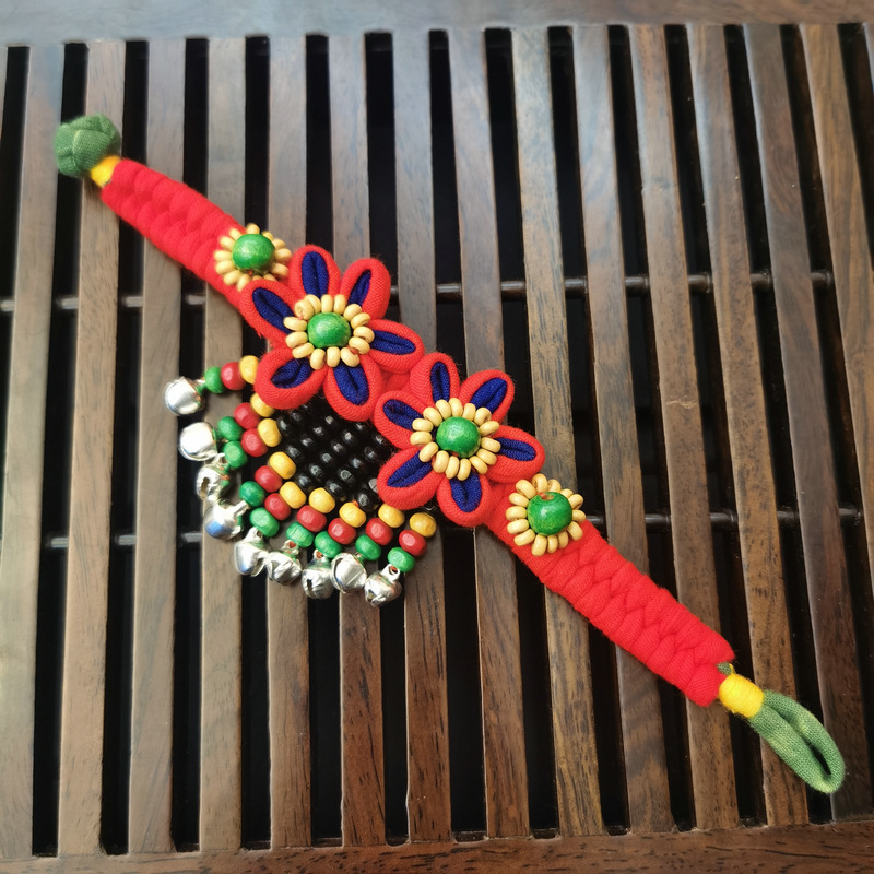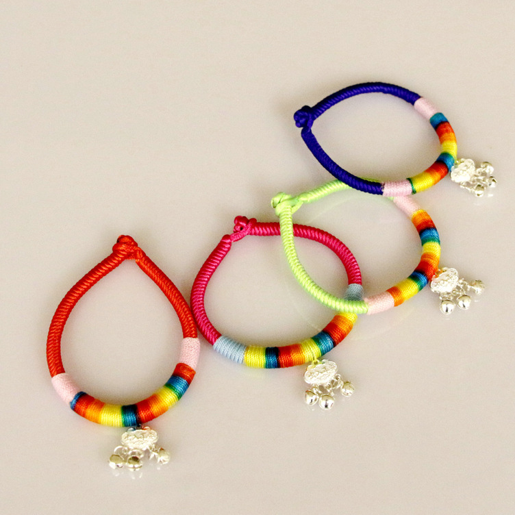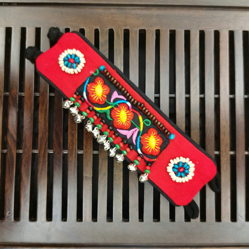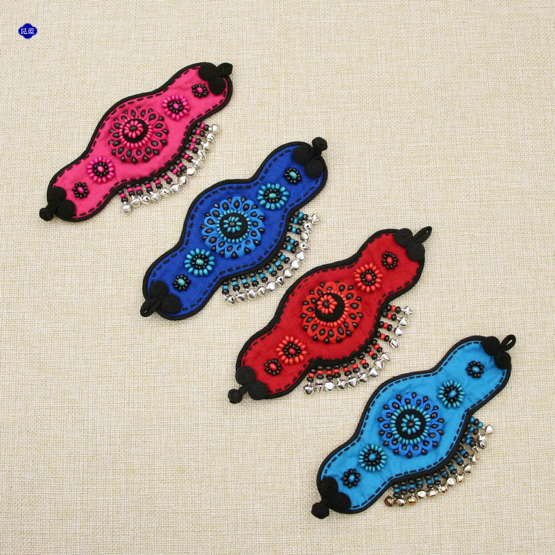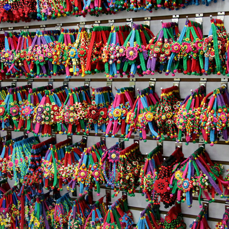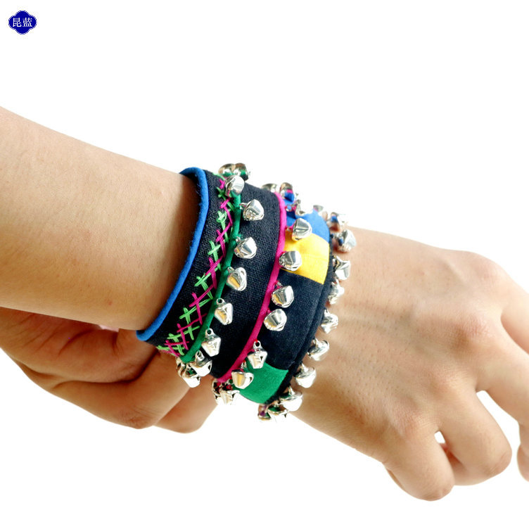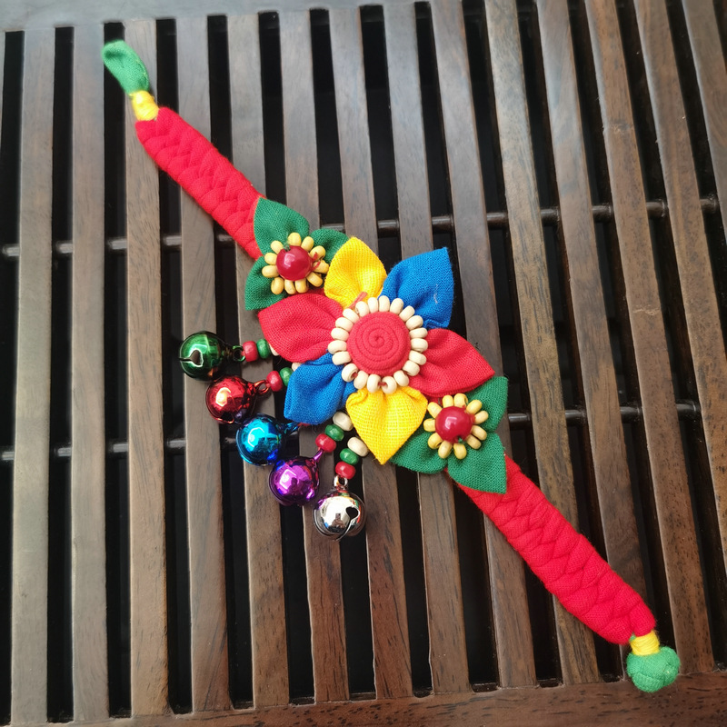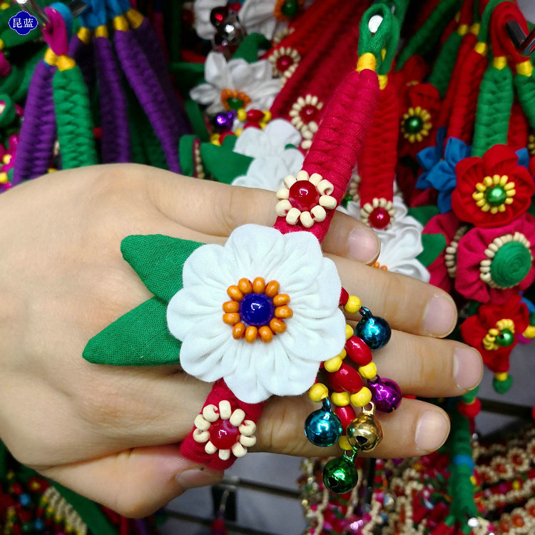 特色云南民族风布艺手链端午手工编织花朵铃铛舞蹈配饰宝宝手绳