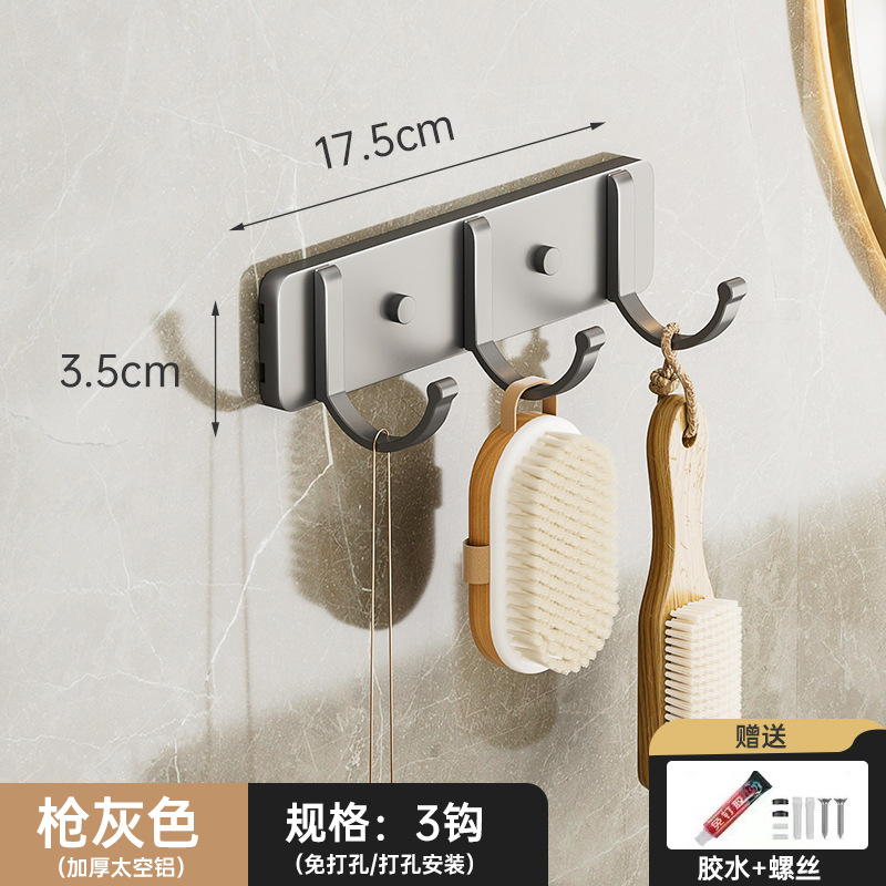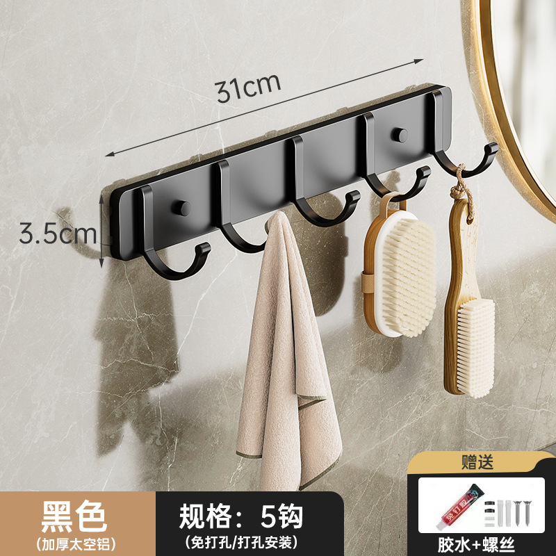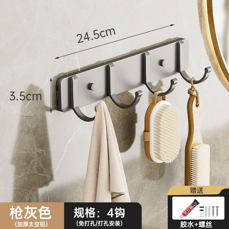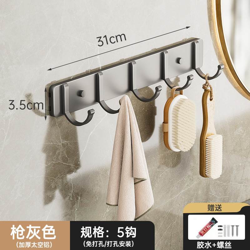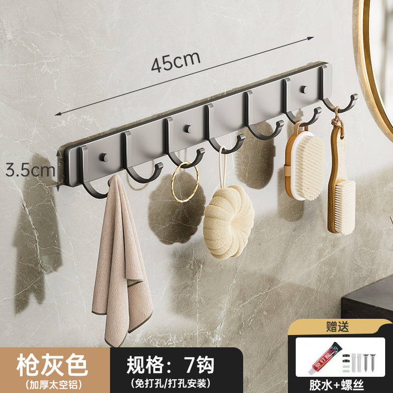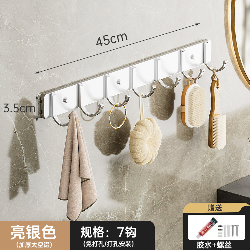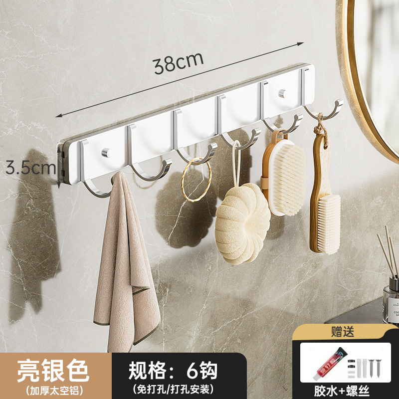 厂家供应免打孔太空铝挂衣钩挂钩壁挂式排钩粘钩衣服衣帽钩子浴室