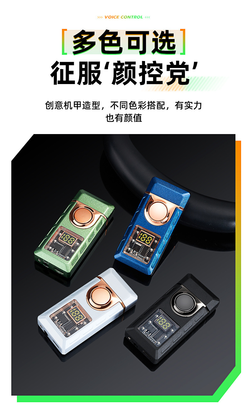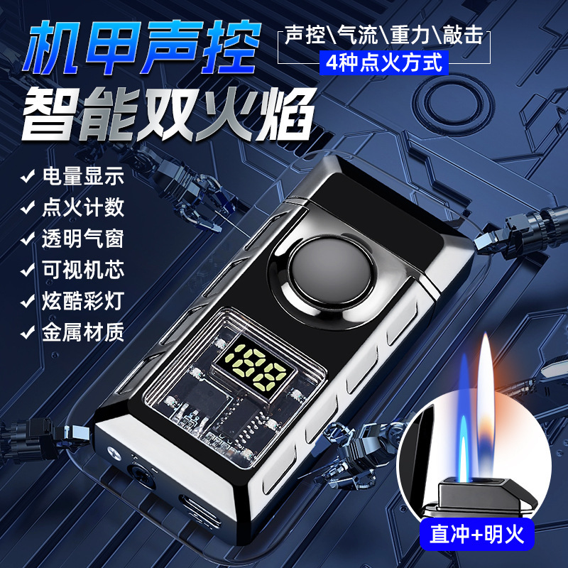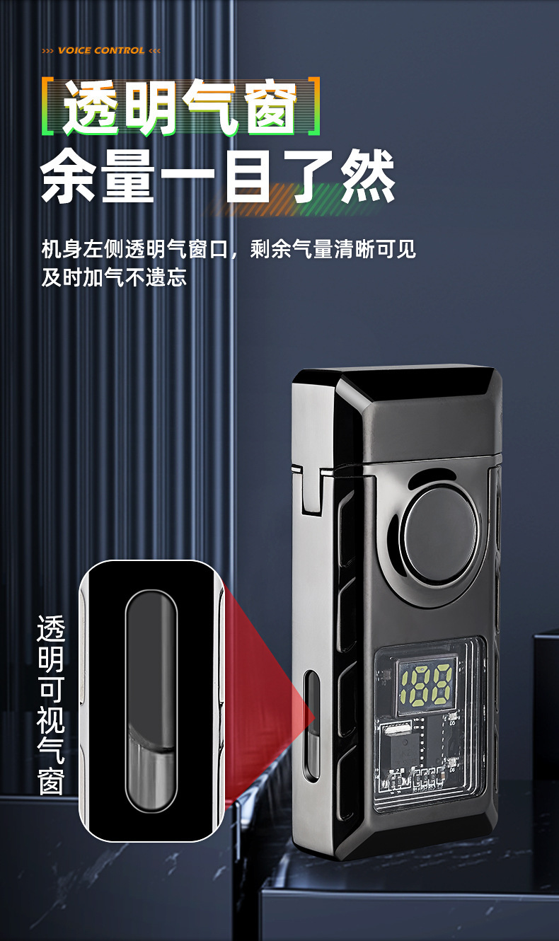 高科技声控智能点火火焰一键切换透明可视机芯充气防风打火机批发