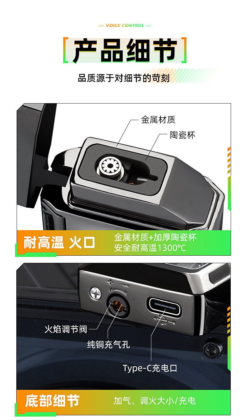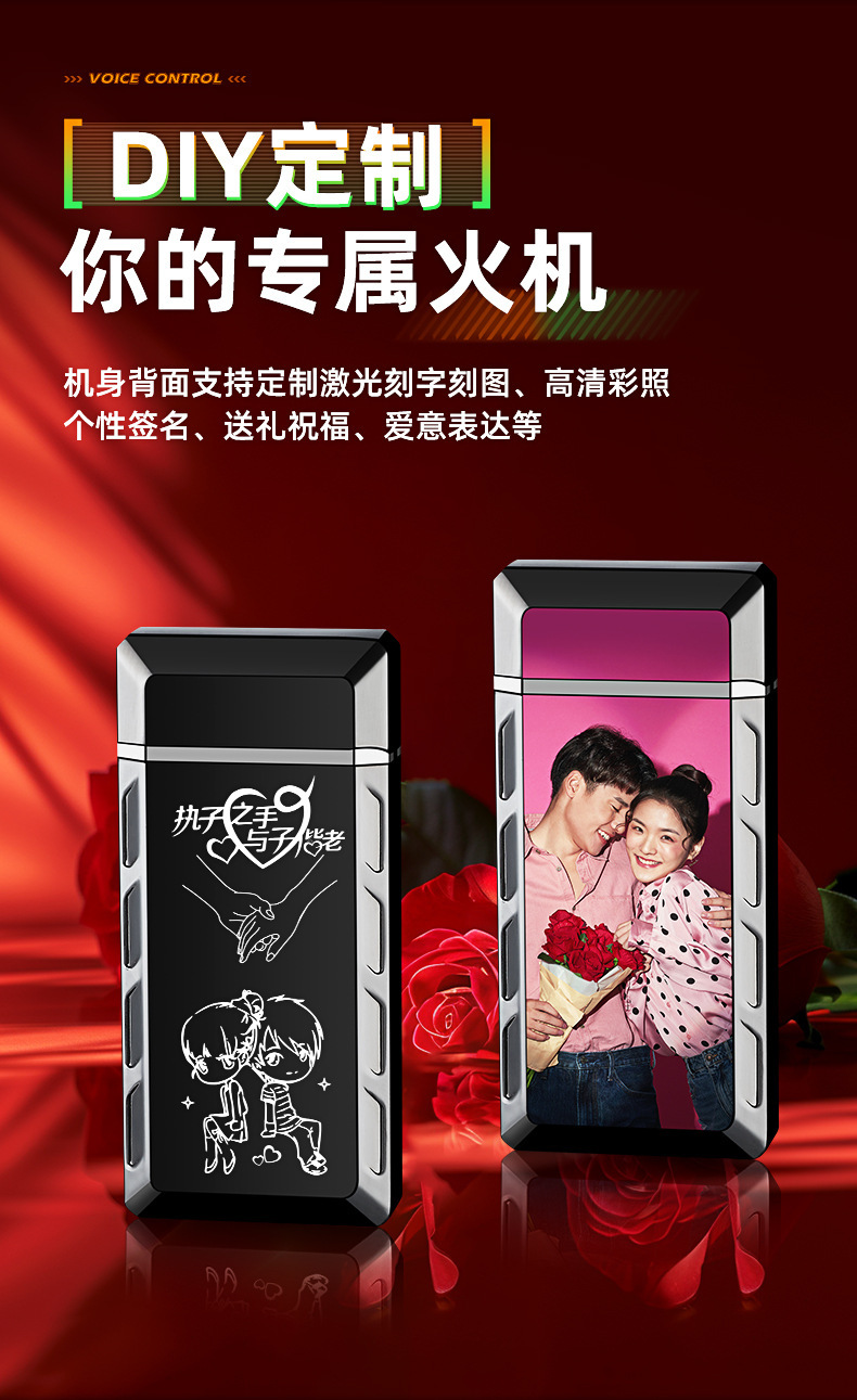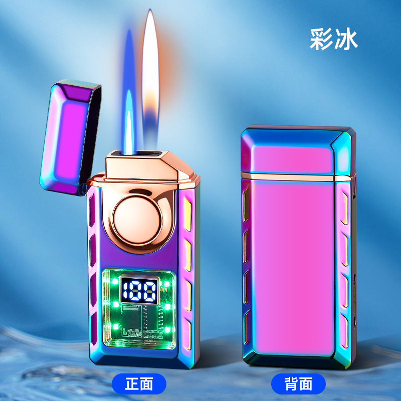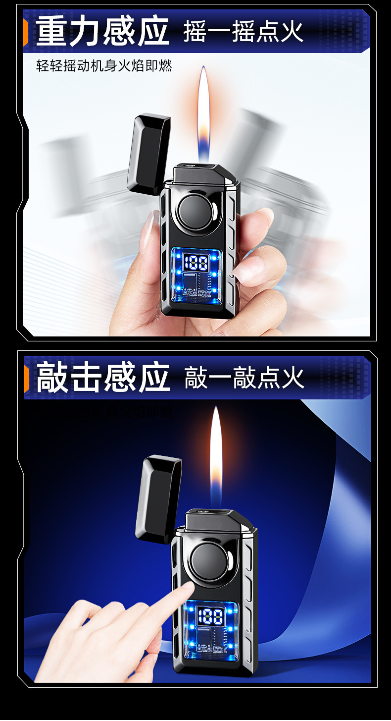 高科技声控智能点火火焰一键切换透明可视机芯充气防风打火机批发