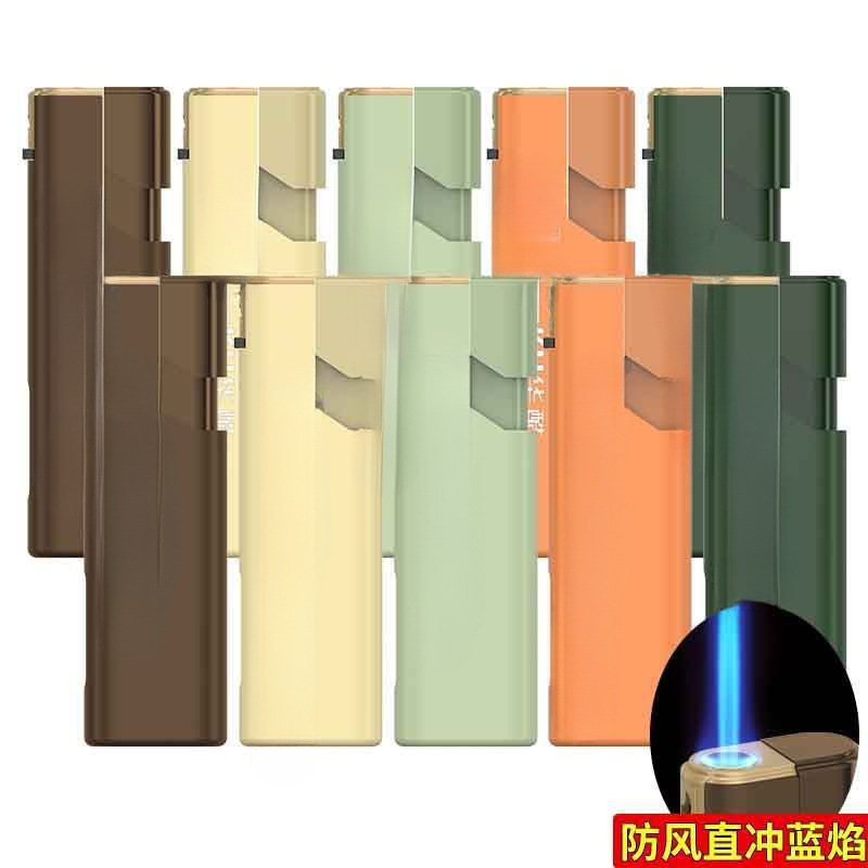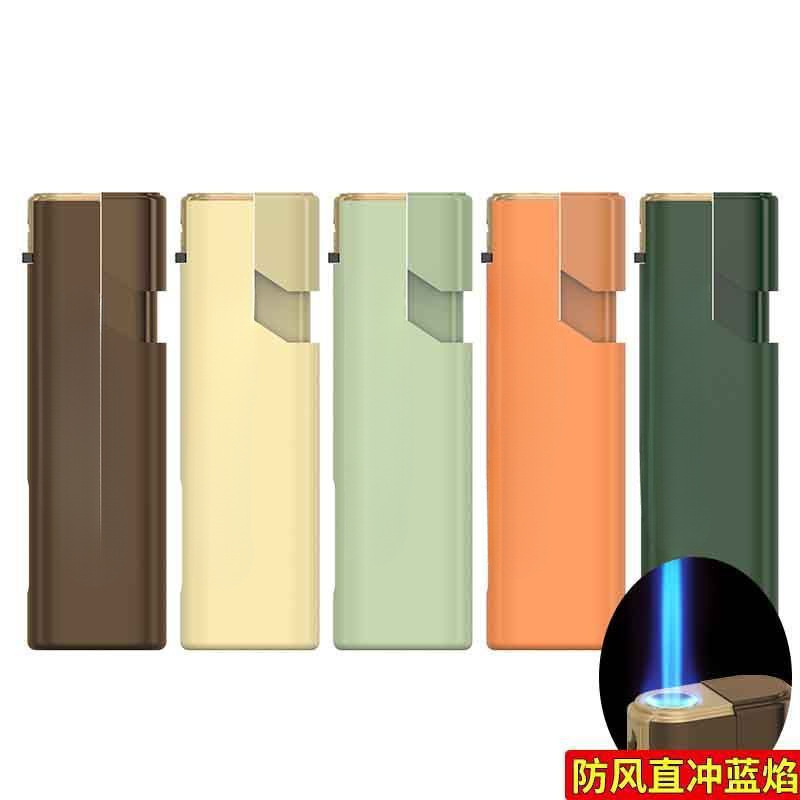 50支新款莫兰迪金属蓝焰直冲防风打火机双层加厚充气印字刻字批发