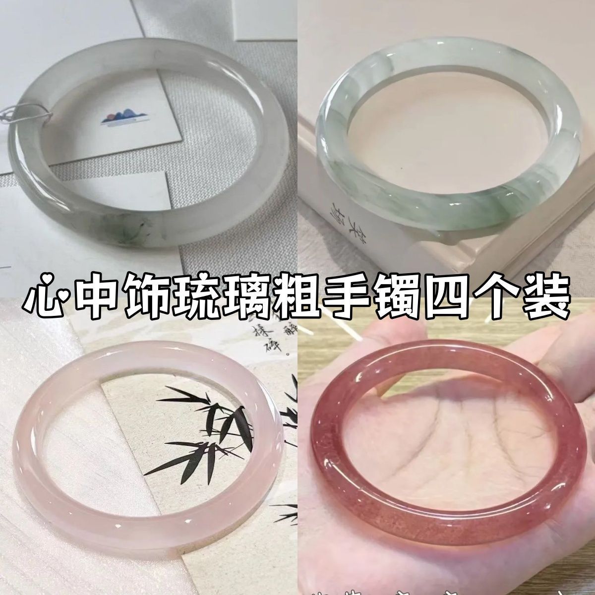小红书同款水墨丹青女手镯粗款古风配饰贵妃镯闺蜜手镯圆条叮当镯