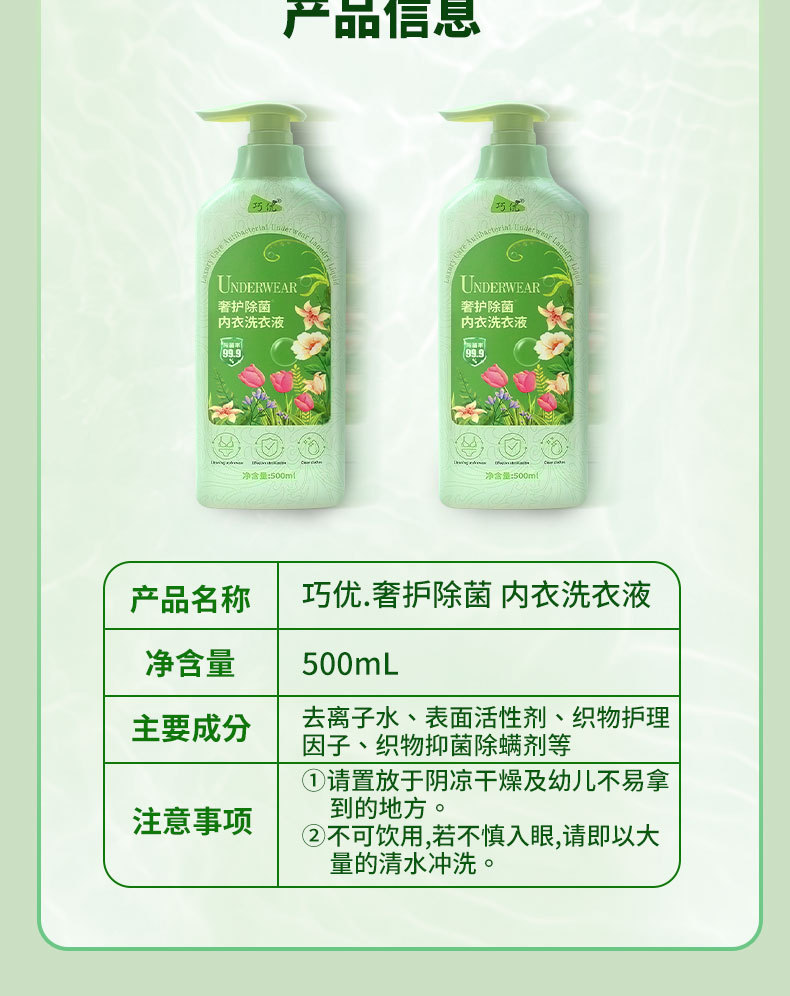 巧优内衣洗衣液批发衣物内裤洗衣液去血渍专用内衣清洗液男女士