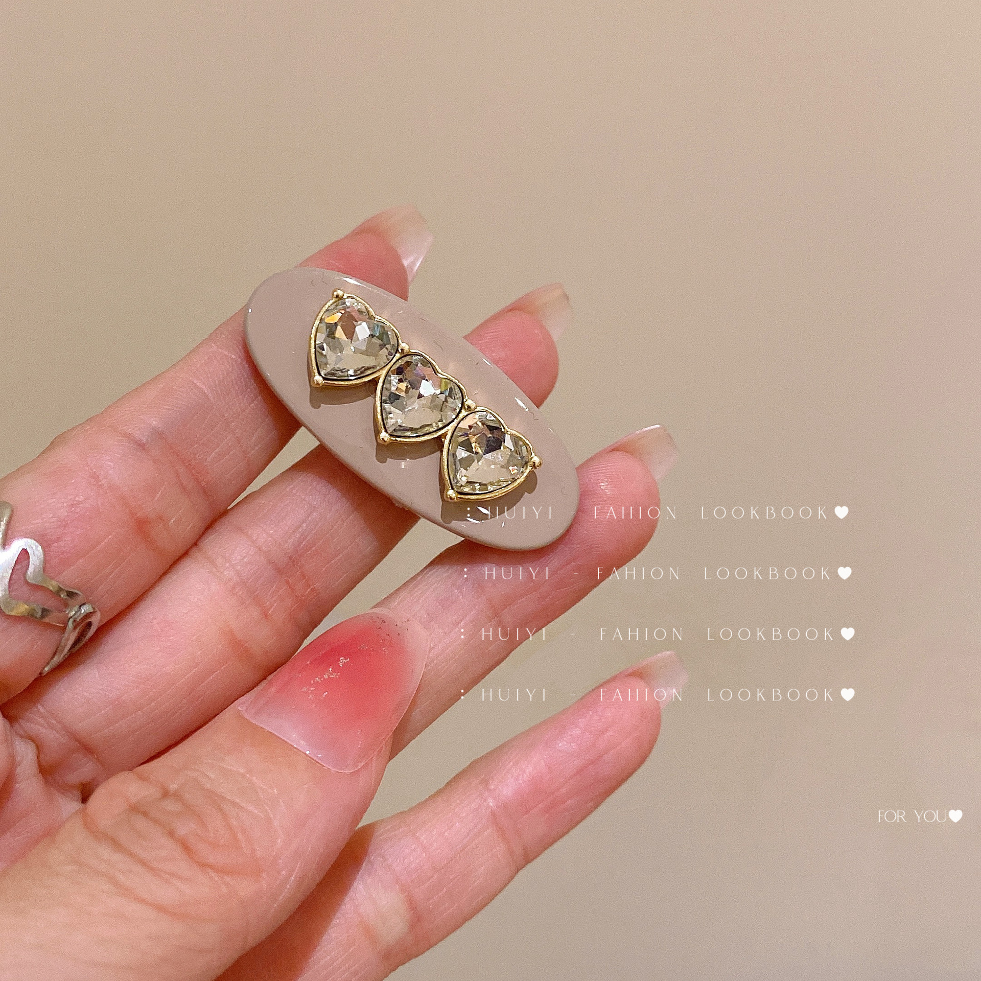 春日在逃公主氛围感~甜美粉色系水钻发夹侧边刘海一字鸭嘴夹发饰