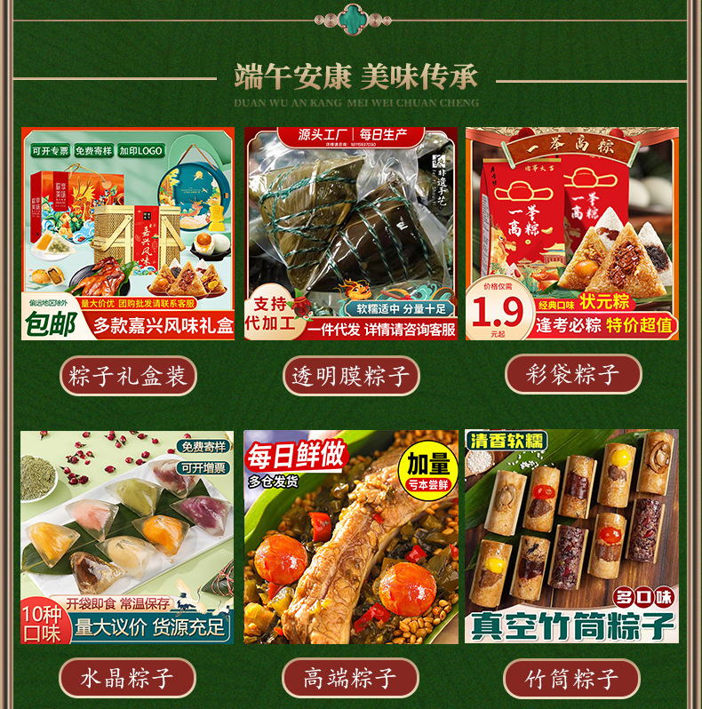 粽子批货散装蛋黄鲜肉粽端午节传统糕点早餐速食竹筒豆沙粽礼盒装