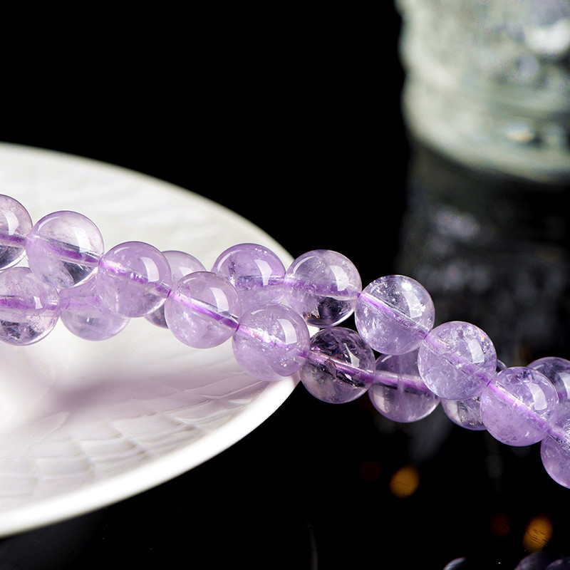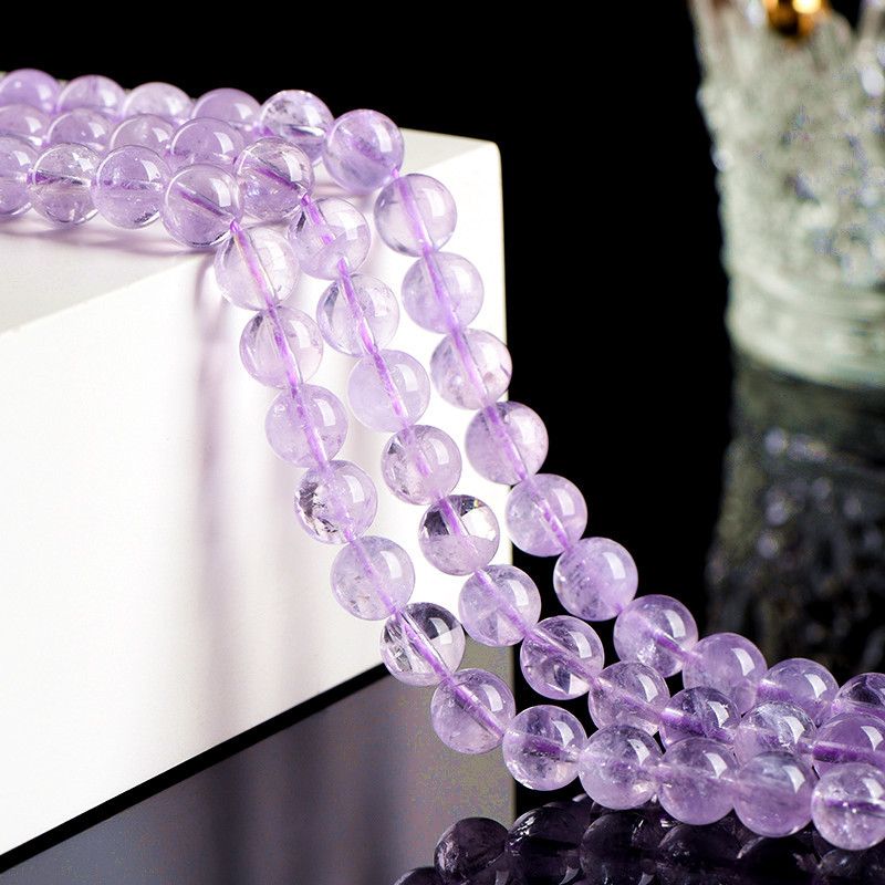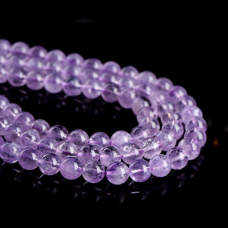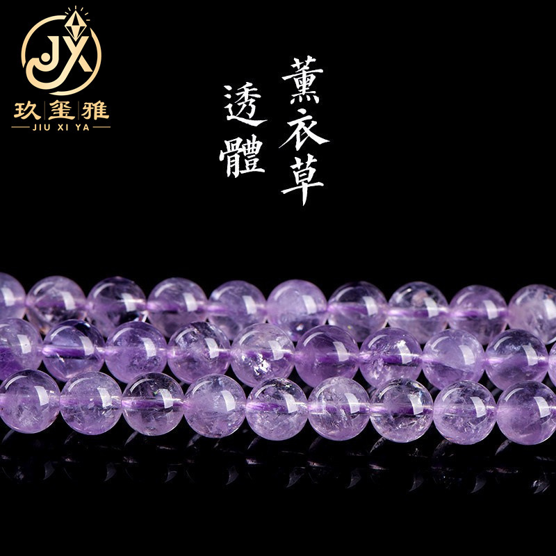 久雅水晶 天然薰衣草紫晶散珠 圆珠 浅色紫水晶半成品 串珠 批发