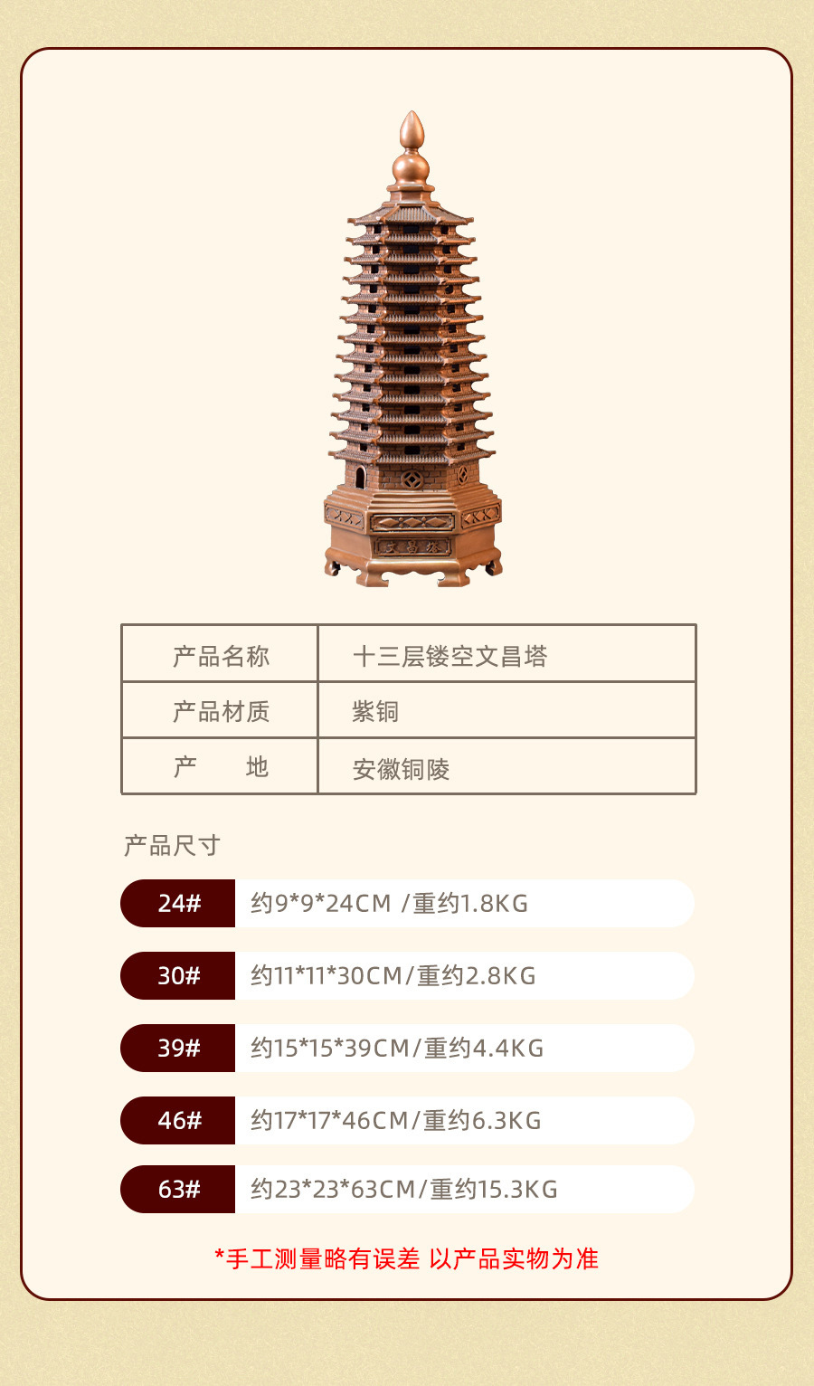 紫铜十三层镂空文昌塔摆件铜工艺品家居办公室装饰品送孩子礼品
