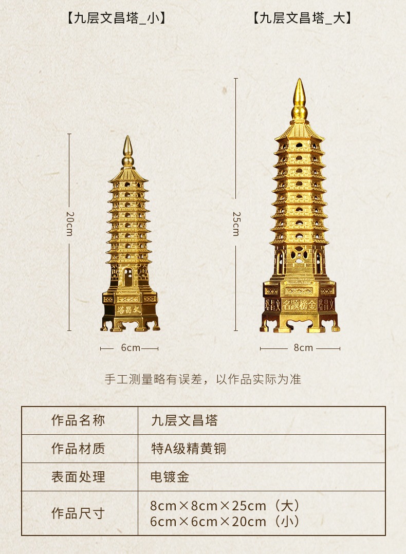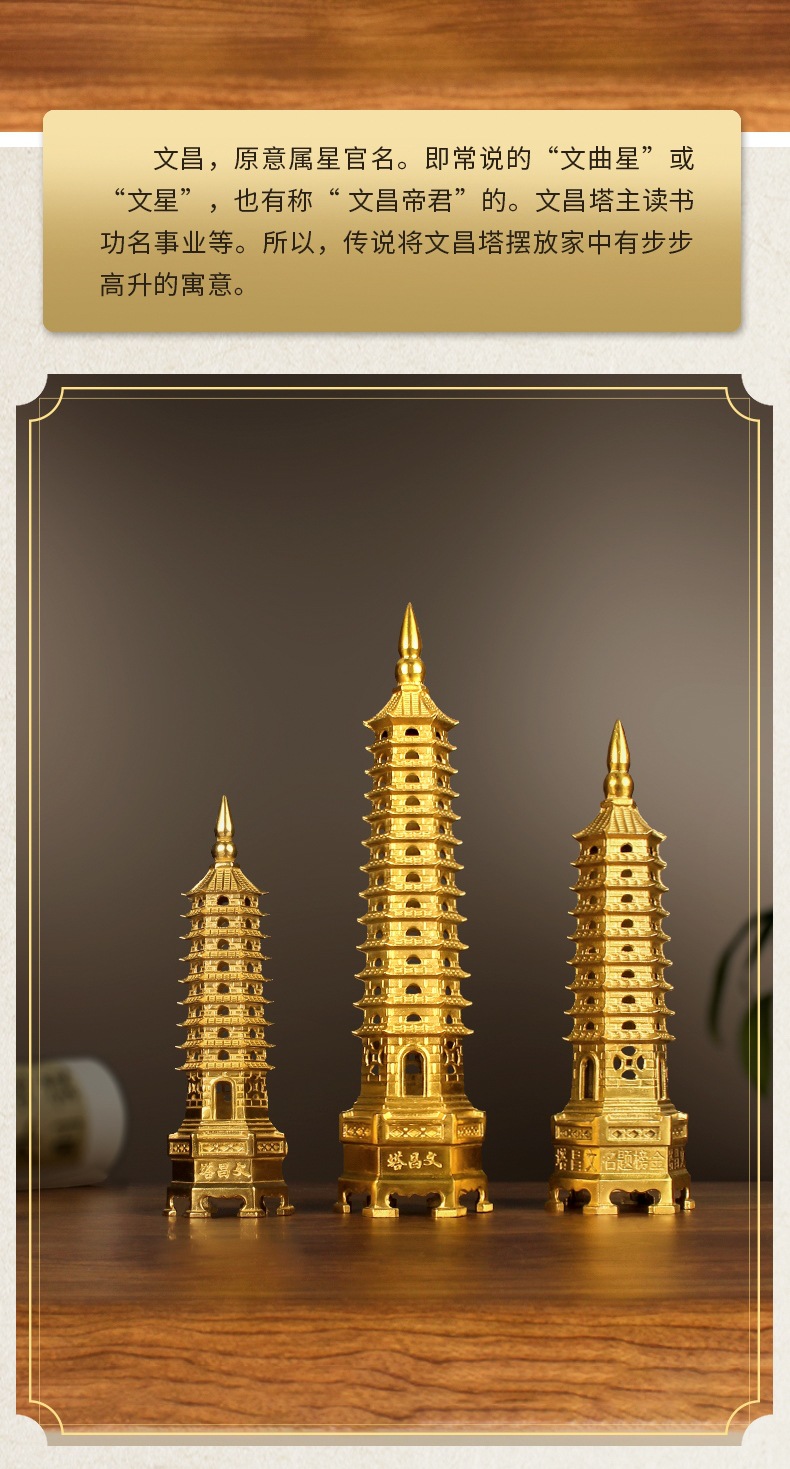 黄铜文昌塔摆件 9九层13十三层书房文昌塔摆件 家居装饰工艺品