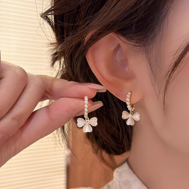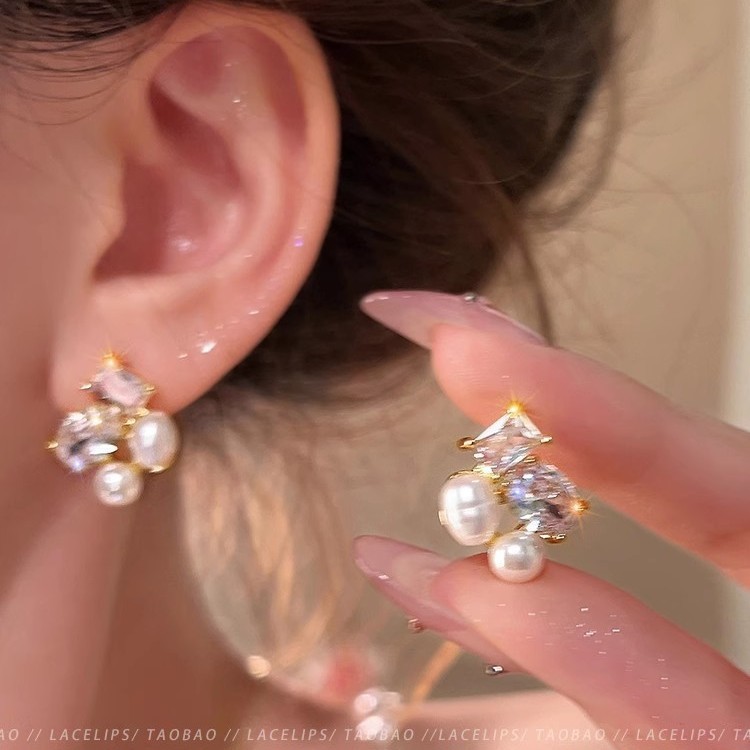 S925银针爆款锆石珍珠耳环女轻奢感小众蝴蝶耳钉百搭气质耳饰