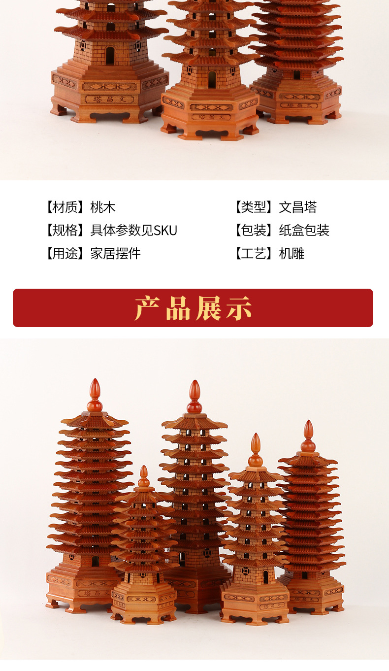 厂家批发桃木文昌塔7层9层十三层文昌塔家居办公室书房文昌塔摆件