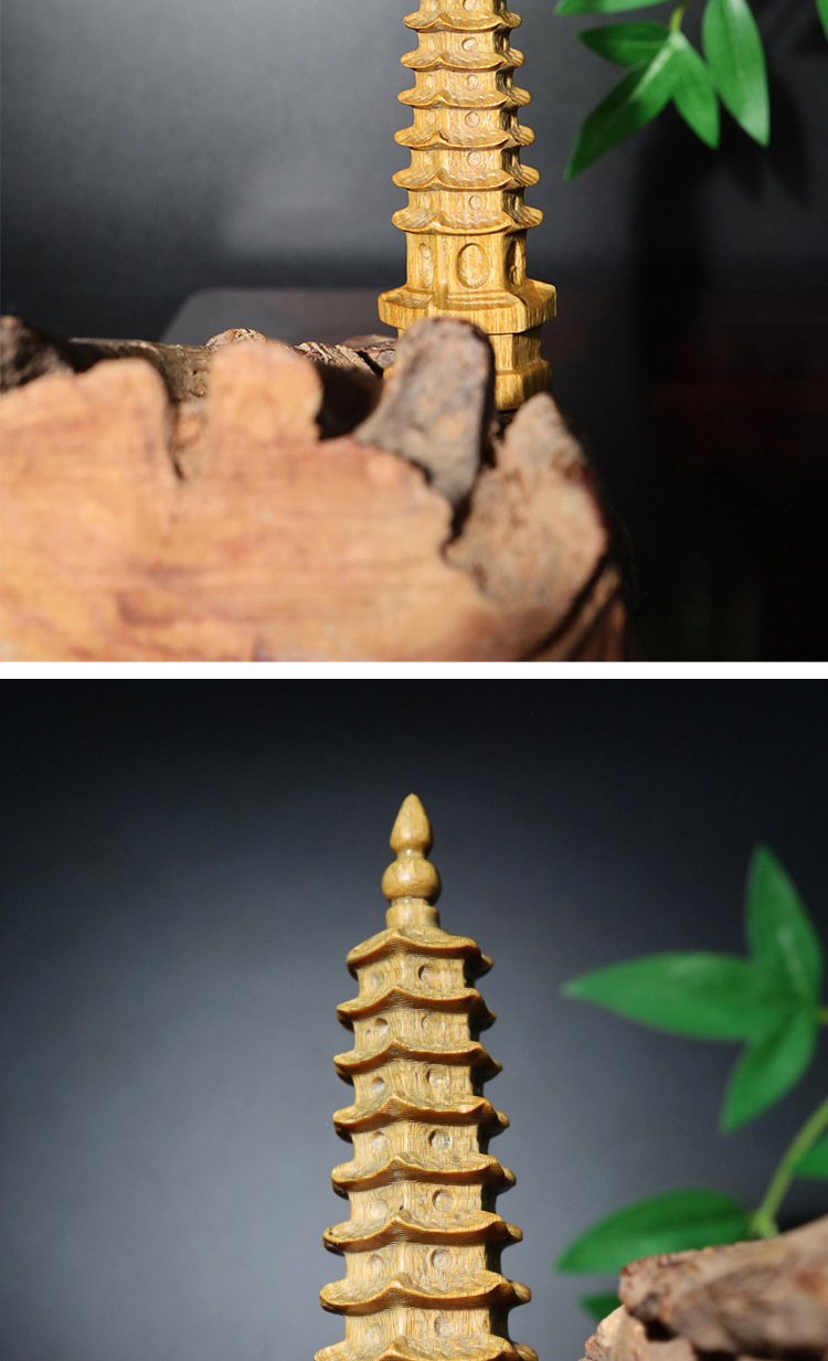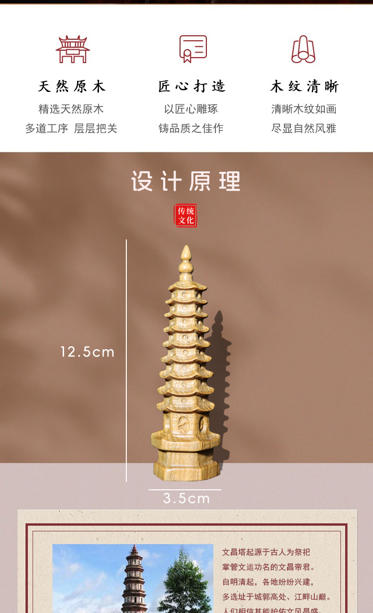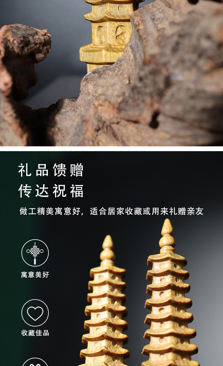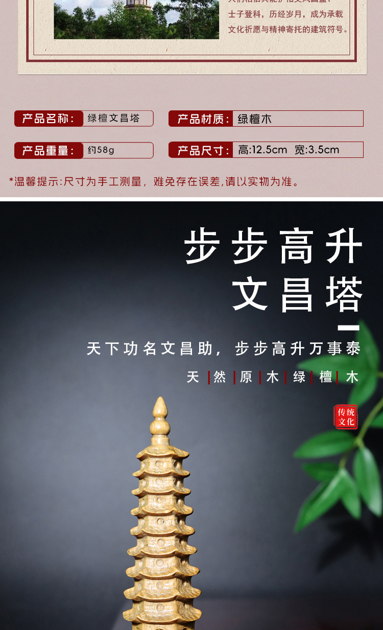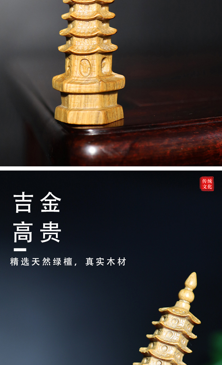 文昌塔天然绿檀实木雕刻实木塔摆件创意道家手把件文玩盘玩工艺品