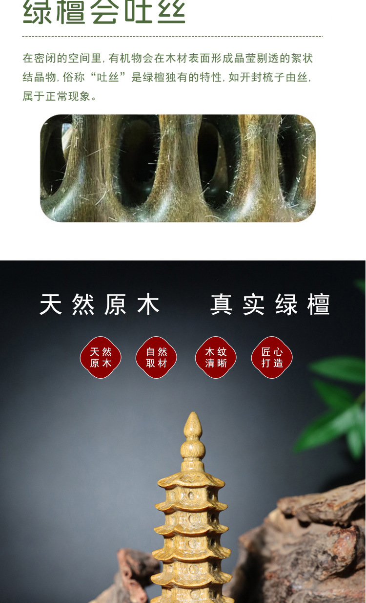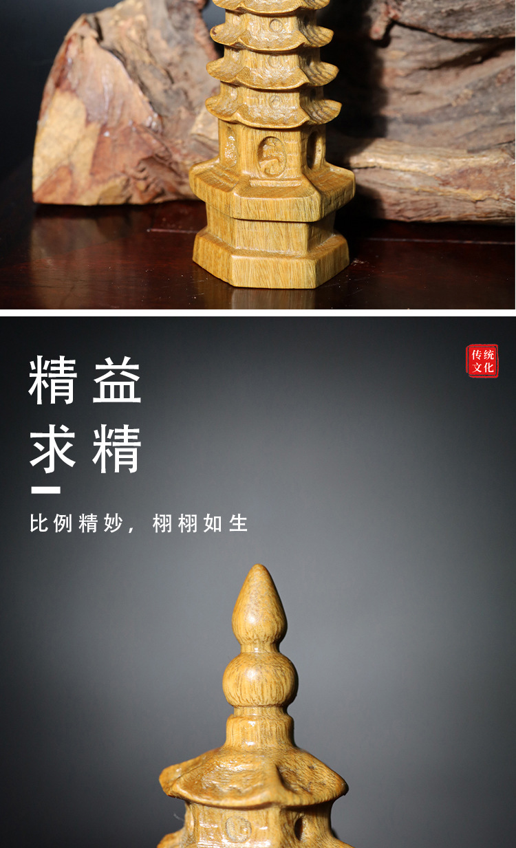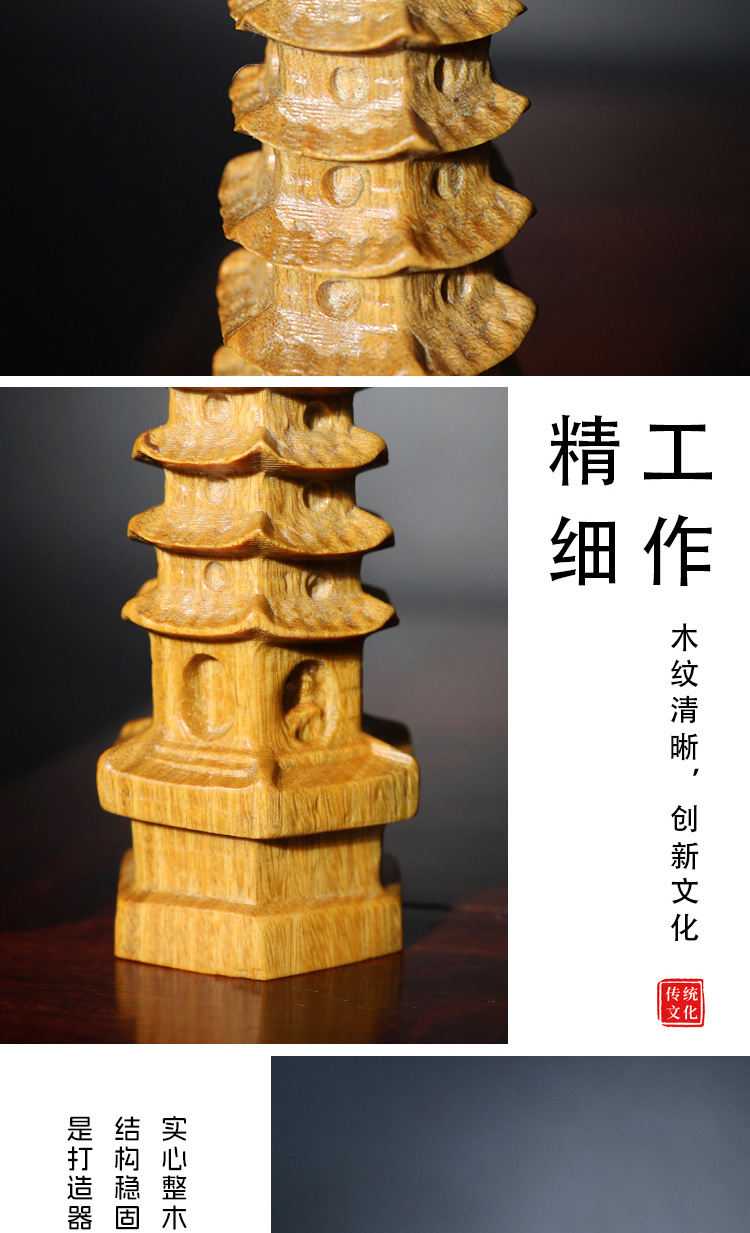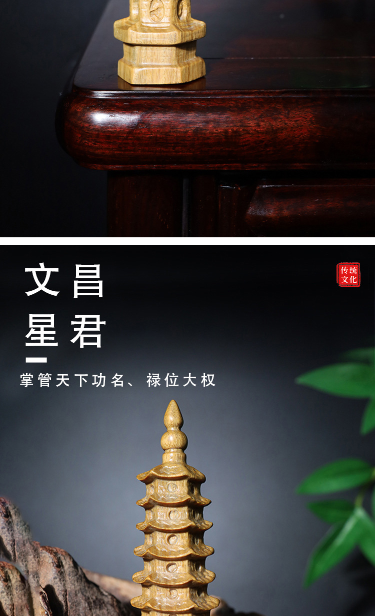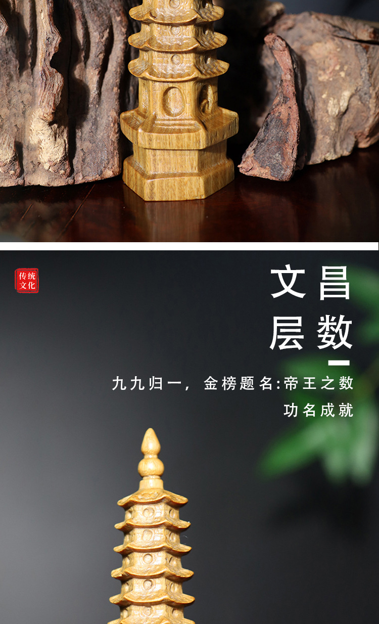文昌塔天然绿檀实木雕刻实木塔摆件创意道家手把件文玩盘玩工艺品