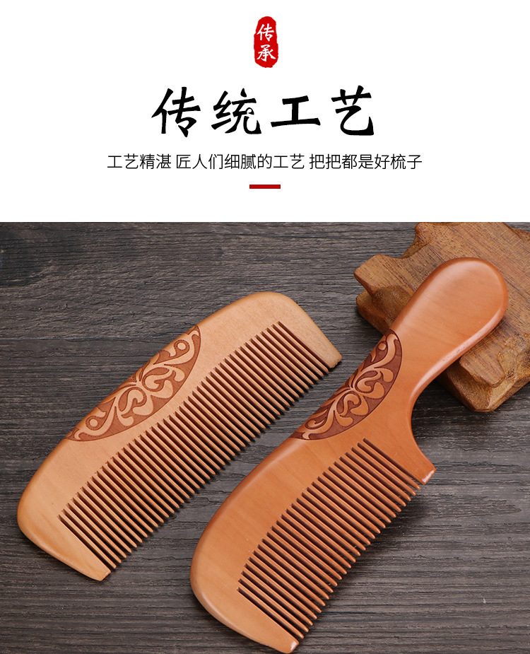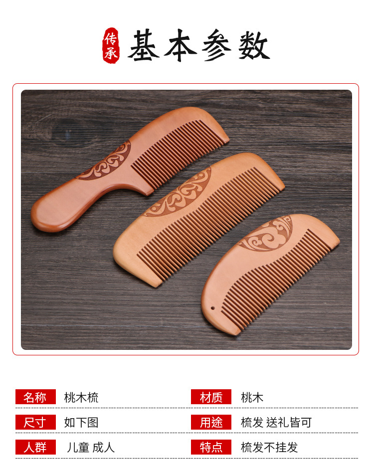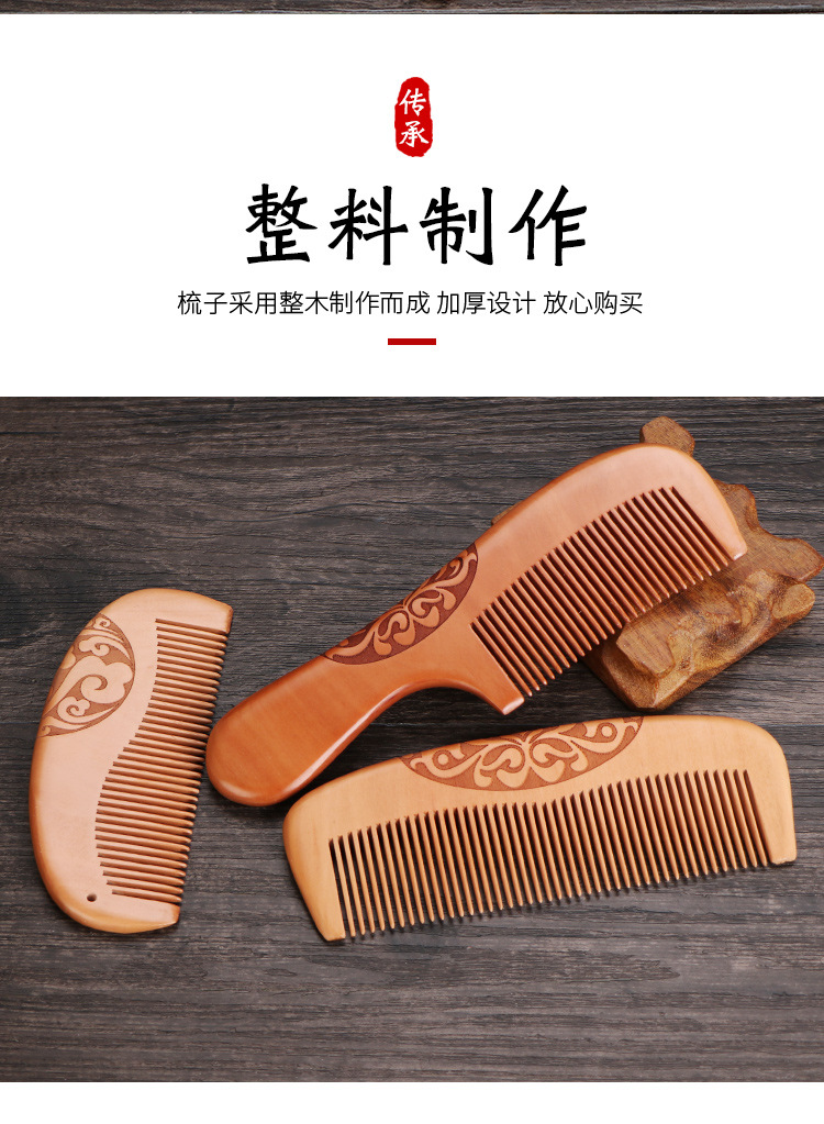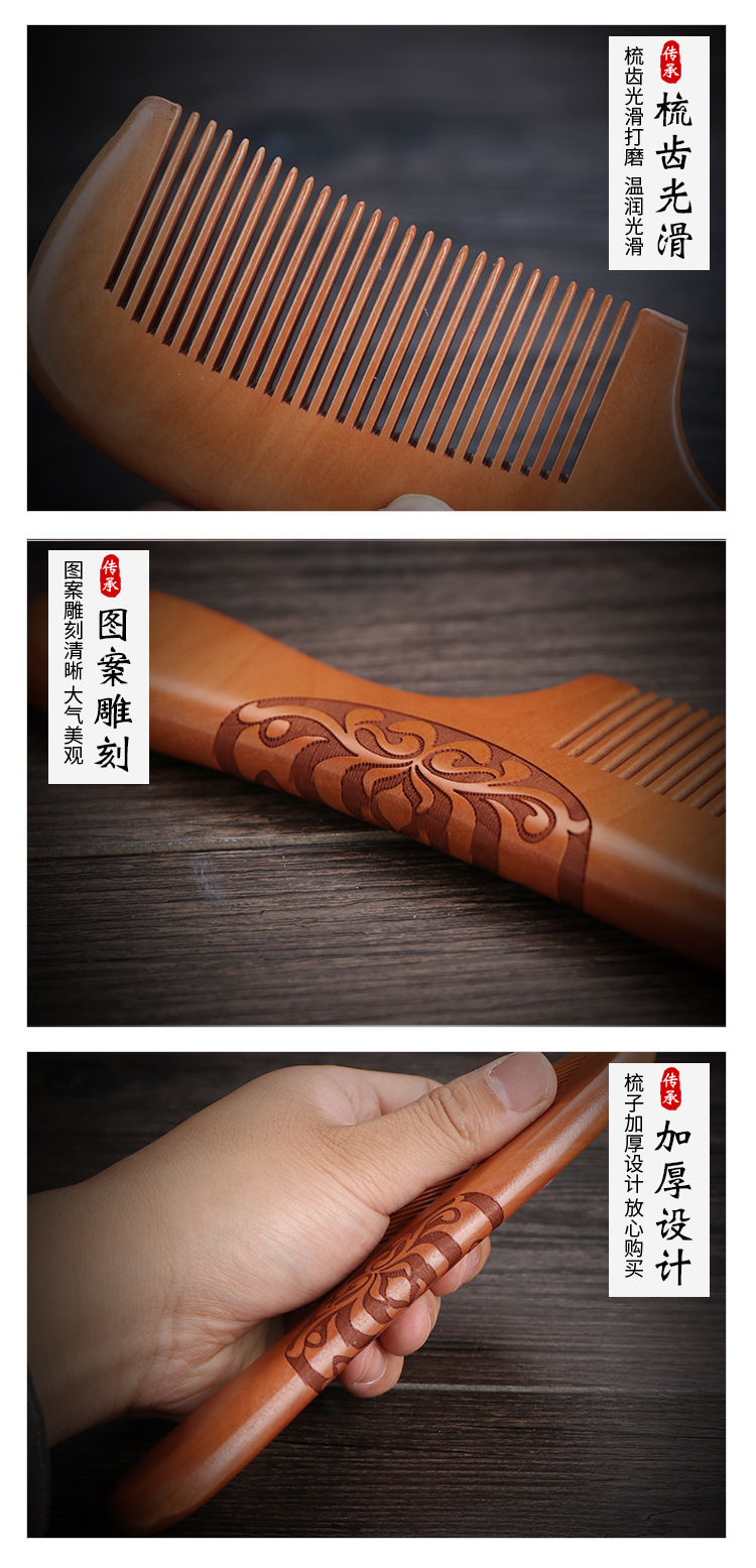 天然加厚桃木梳大号防静电桃木梳子免费logo礼品地摊批发木梳礼盒