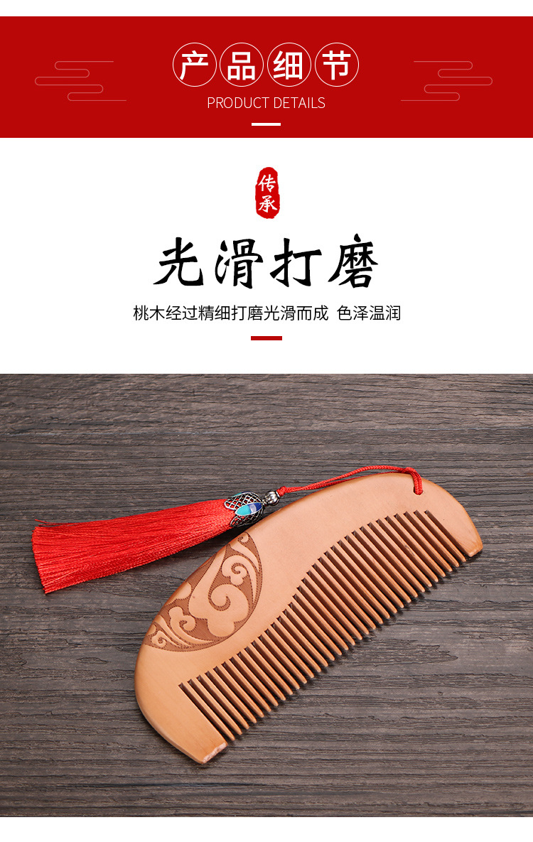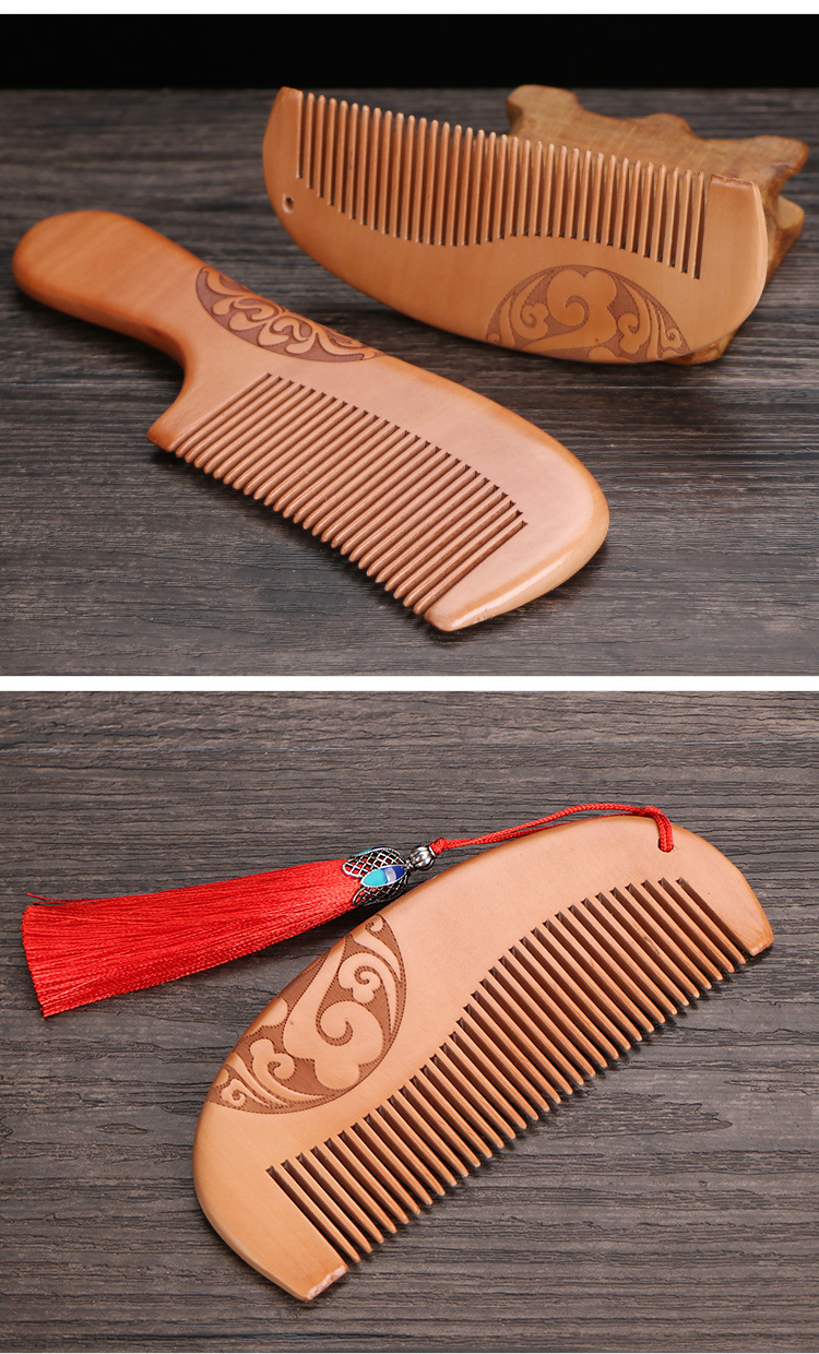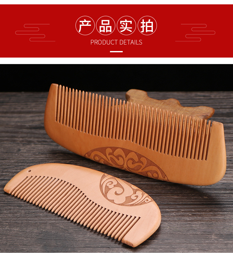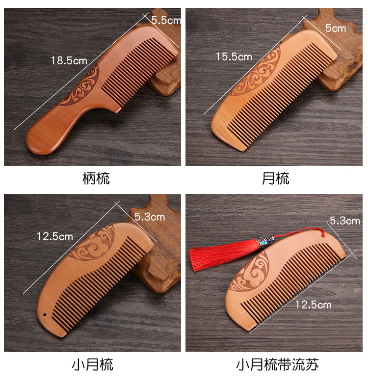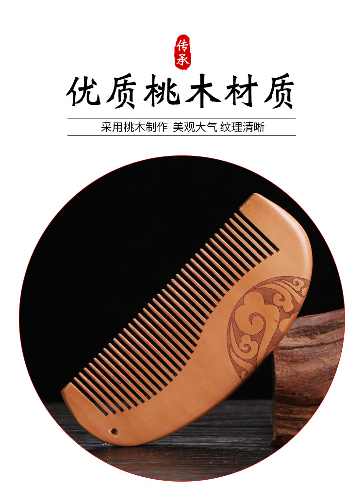 天然加厚桃木梳大号防静电桃木梳子免费logo礼品地摊批发木梳礼盒