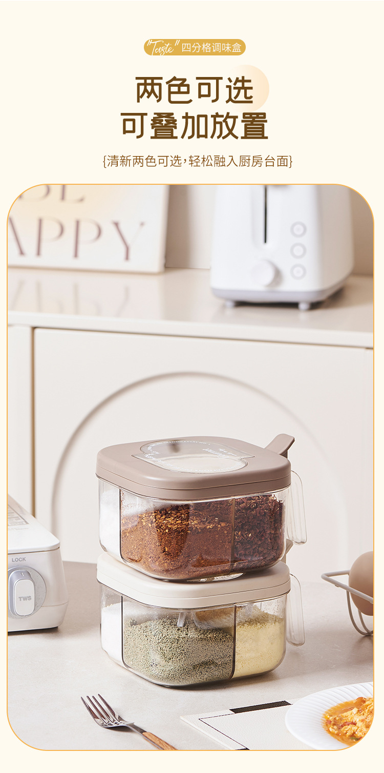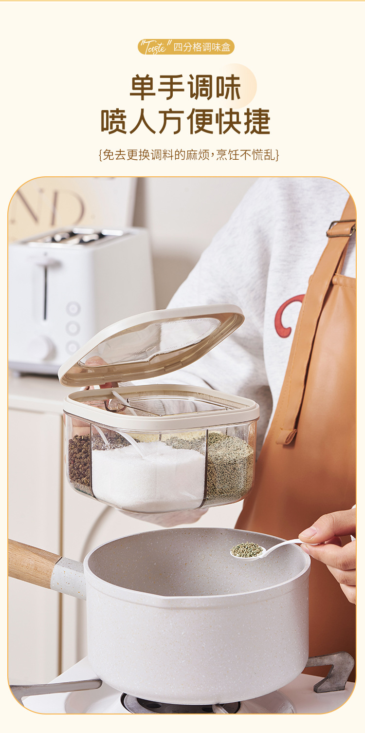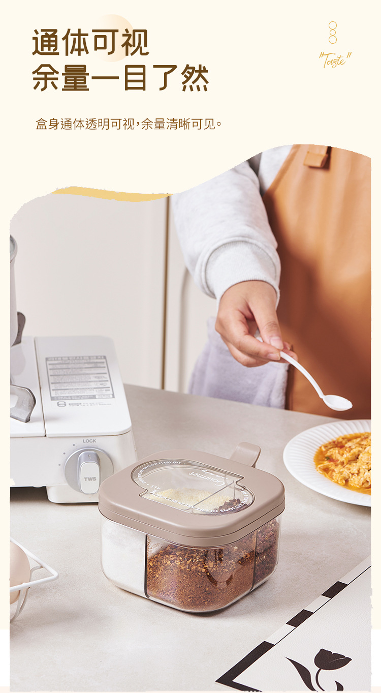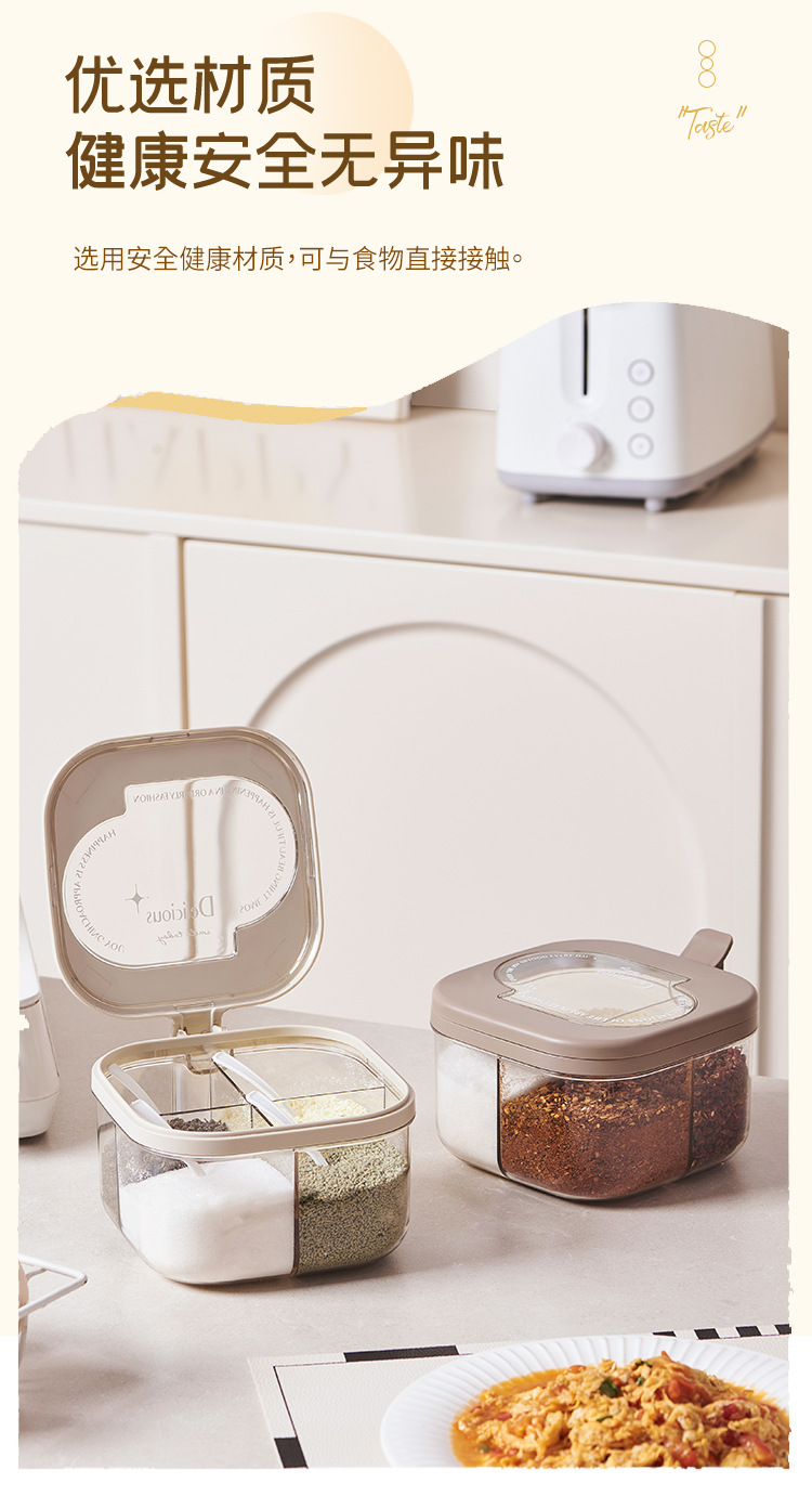 方形简约时光调味盒分格防尘 家用用品创意厨房按压翻盖调味盒