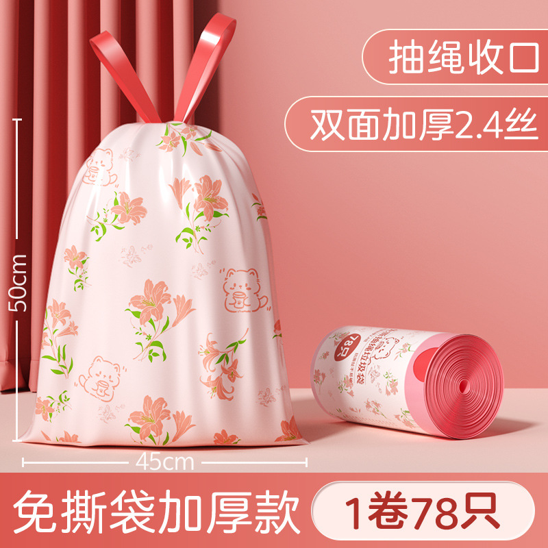 垃圾袋加厚不易破家用免撕抽绳式带拎手手提黑色大拉圾袋一件起批