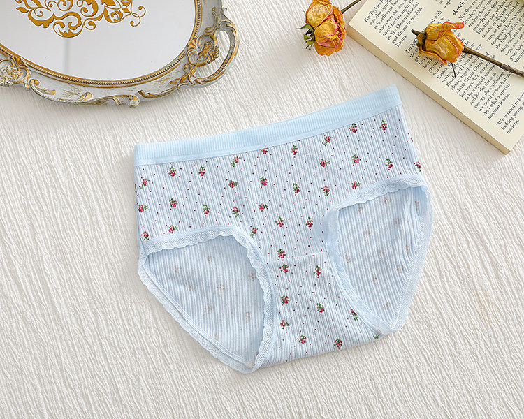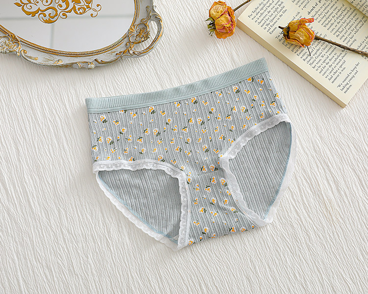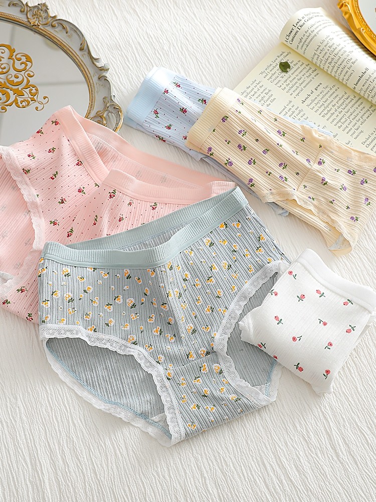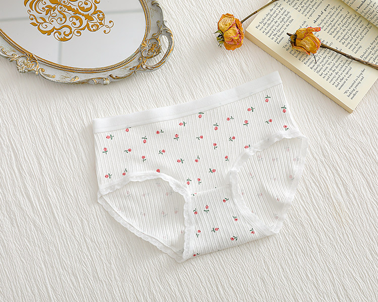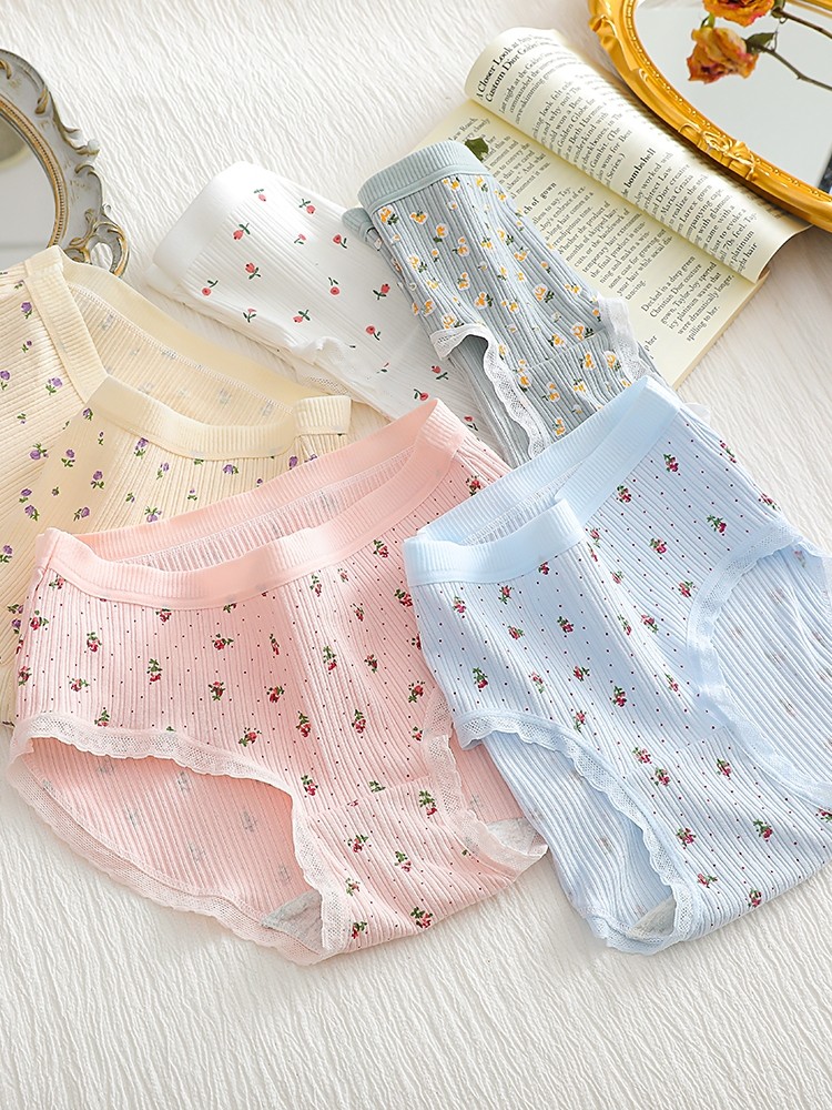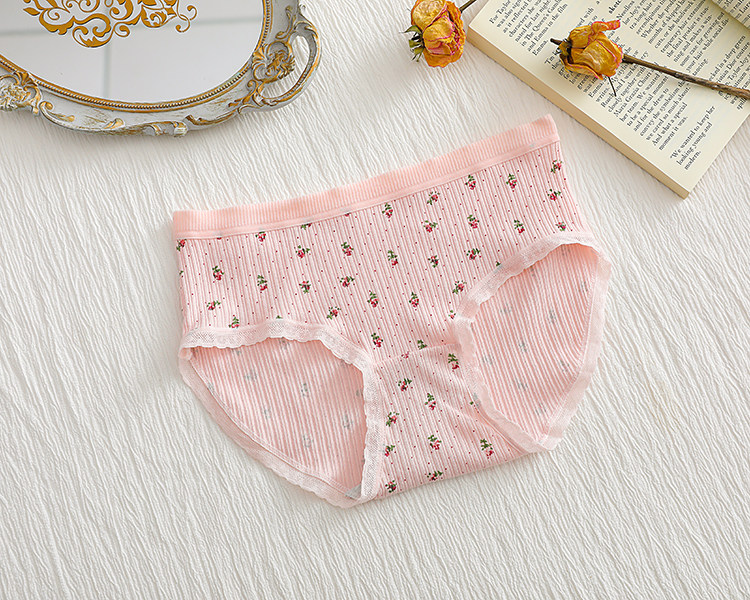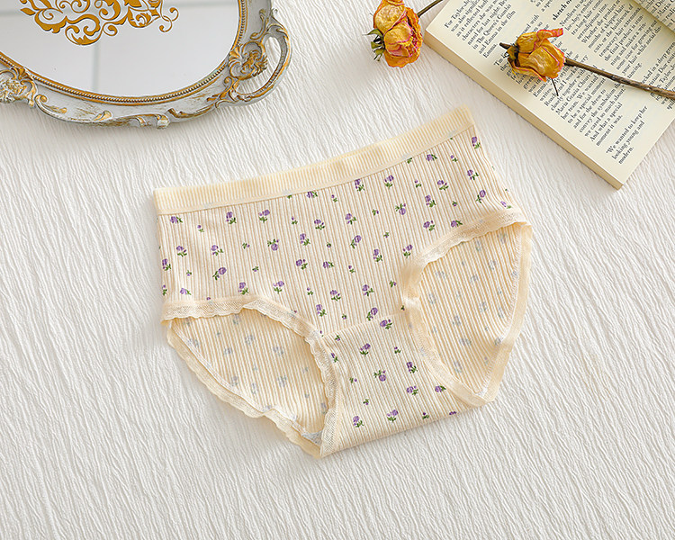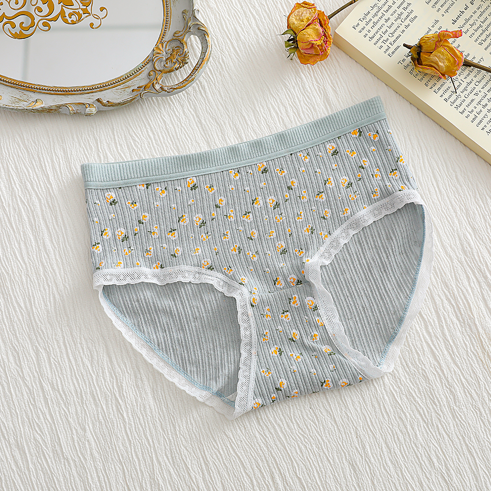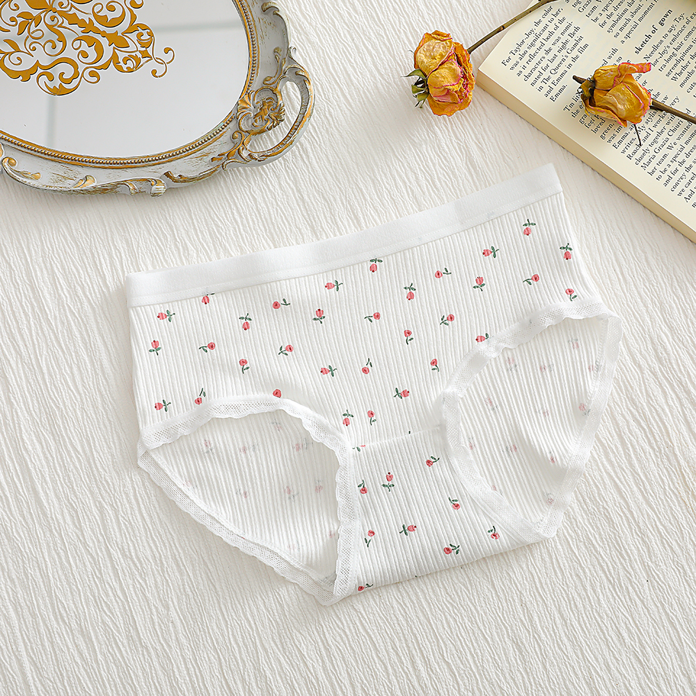 田园小碎花中腰包臀透气纯棉裆内裤女螺纹清新浅色系少女三角裤
