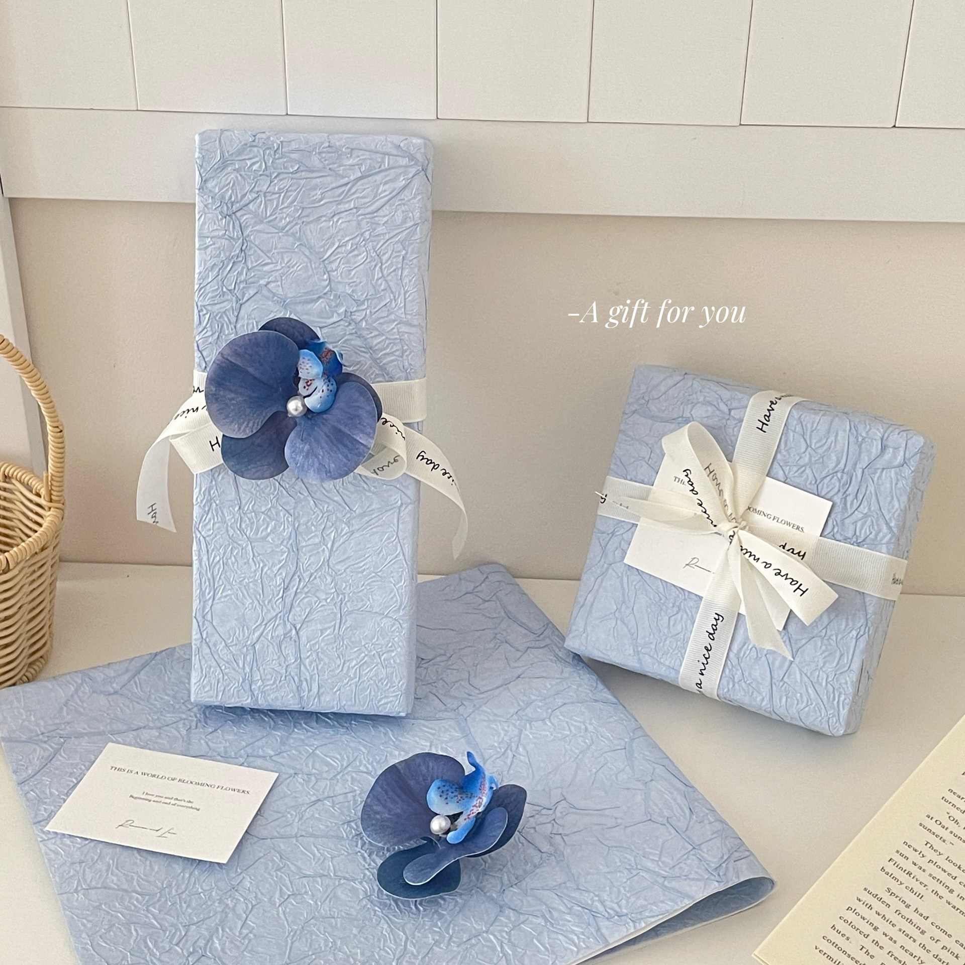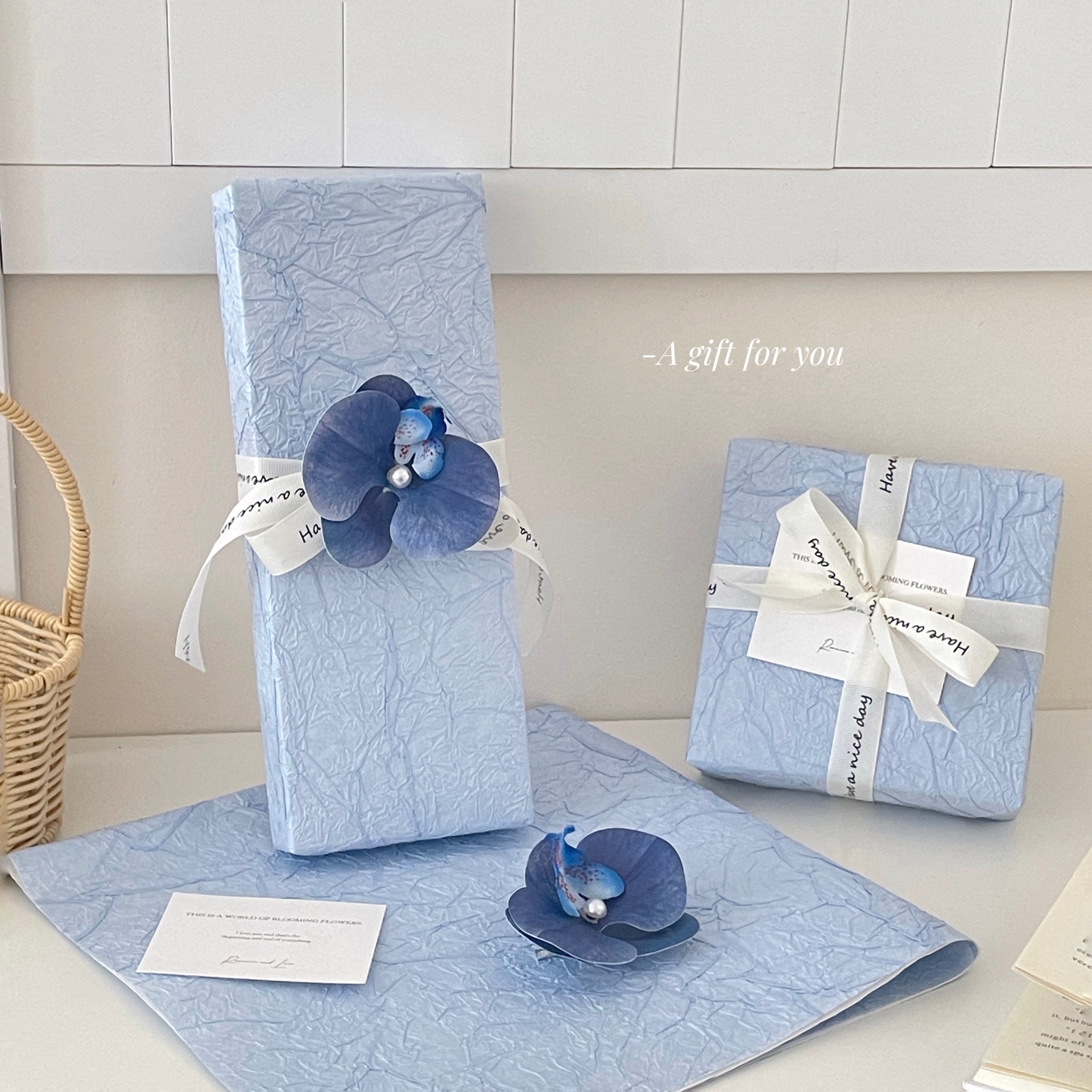 蓝色系烟盒包装石纹纸高质感褶皱纸送男友礼物包装纸感礼品纸