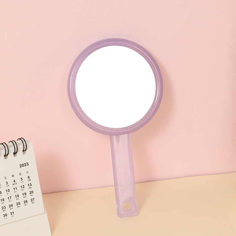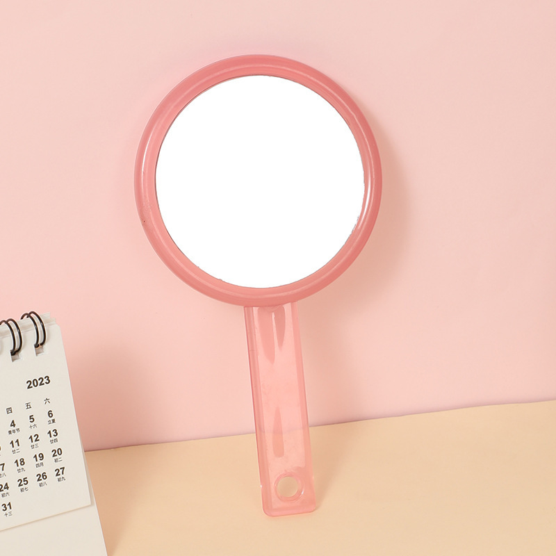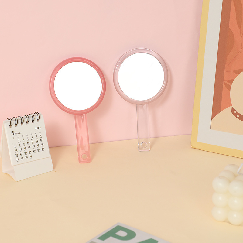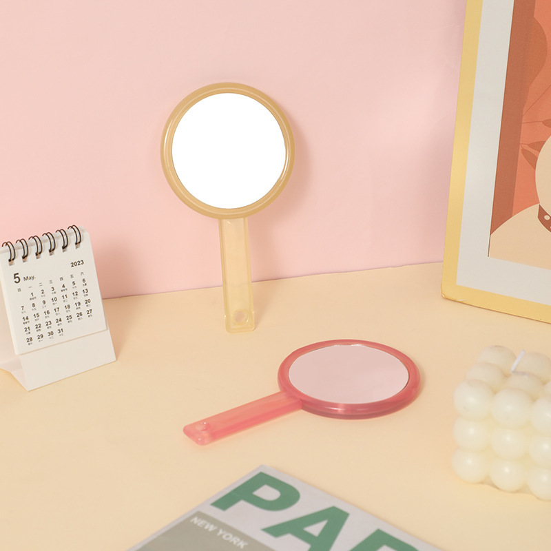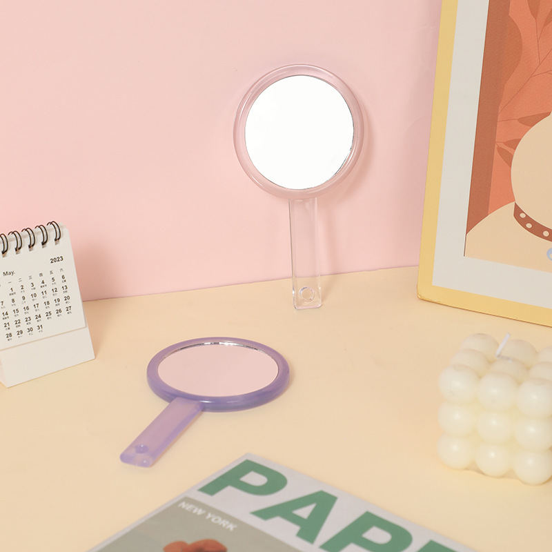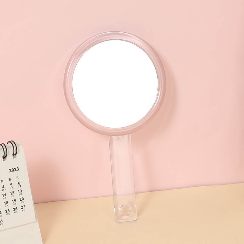 手持双面化妆镜随身便携透明手柄镜子女生宿舍小号手拿补妆小镜子