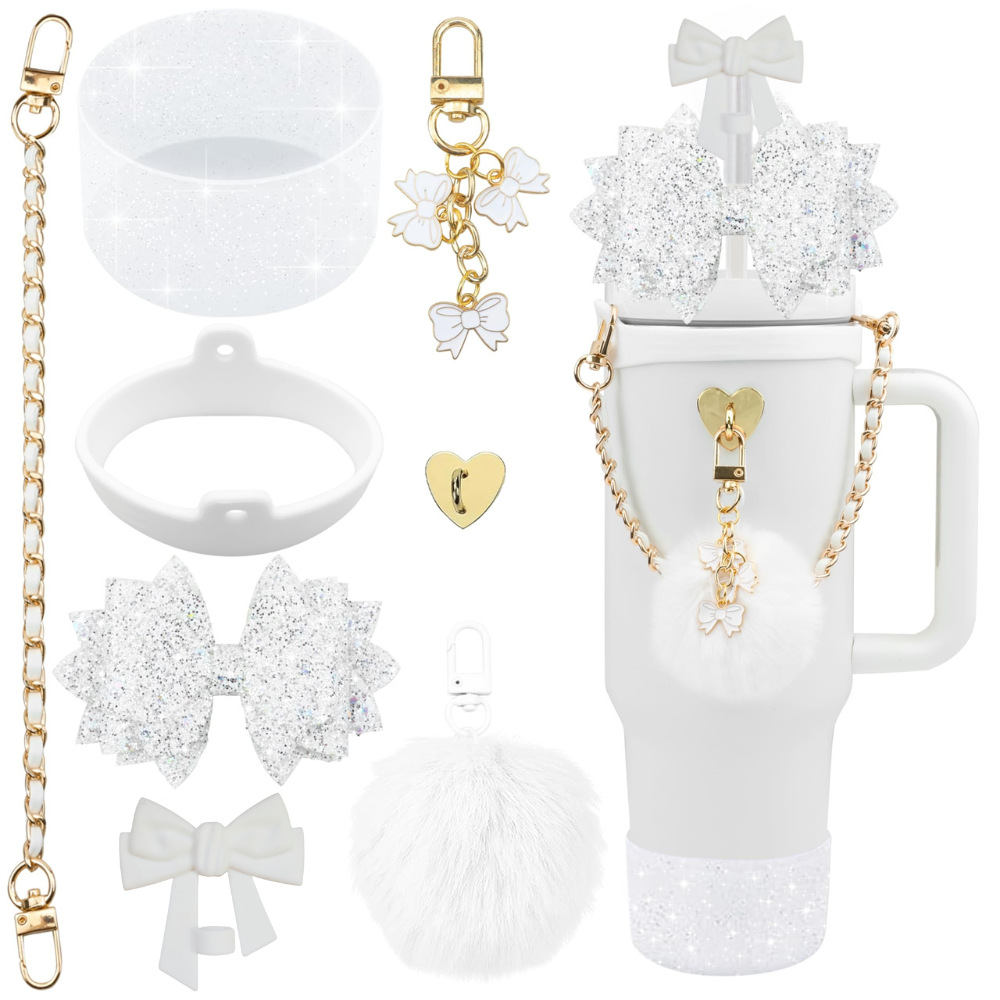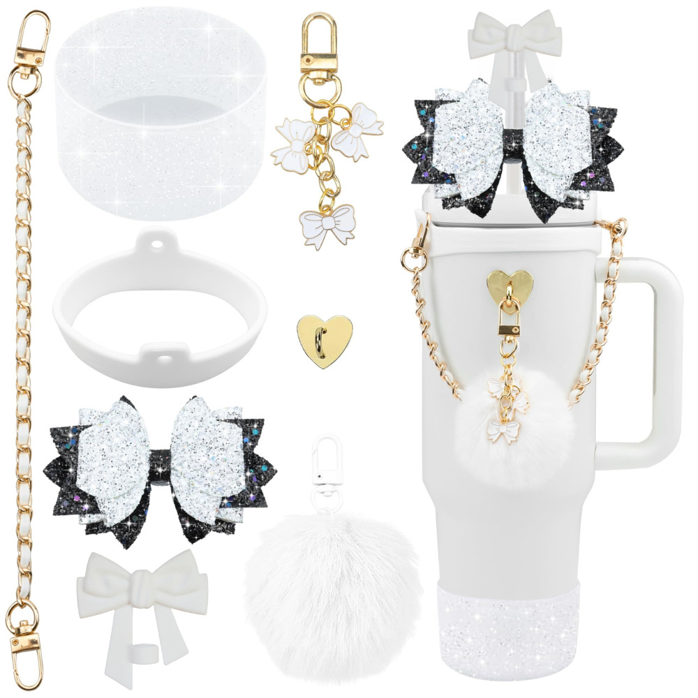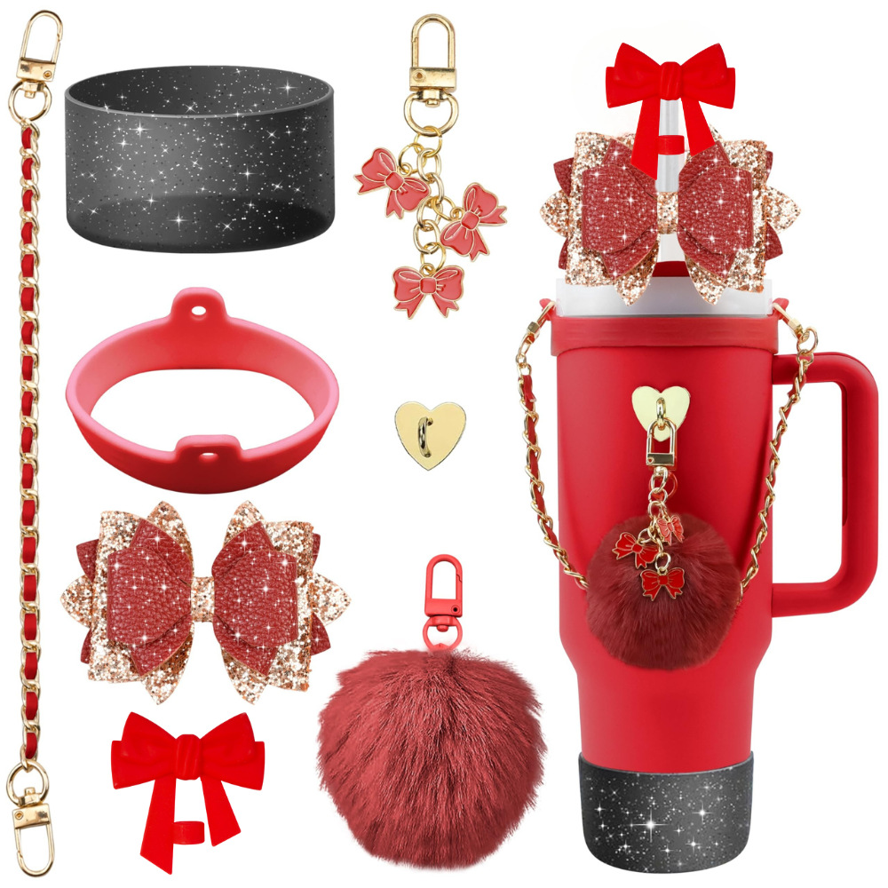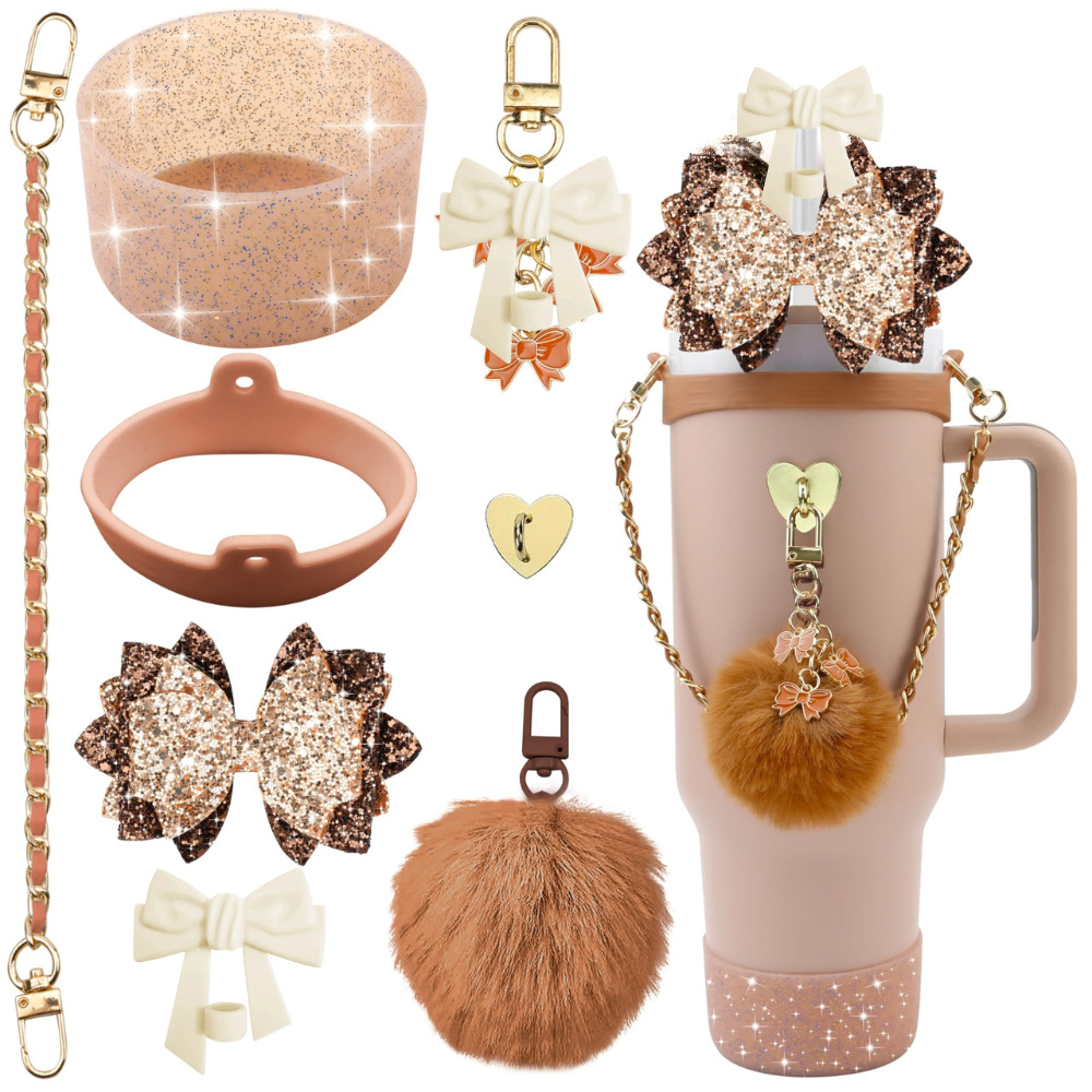 跨境斯坦利杯配件闪粉蝴蝶结吸管装饰毛球挂件手提绳蝴蝶结吸管盖
