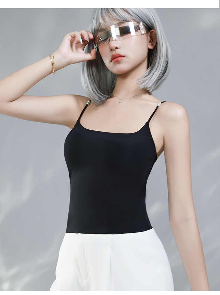 致曲吊带背心女内搭带胸垫夏季上衣2025新款春夏外穿白色美背打底
