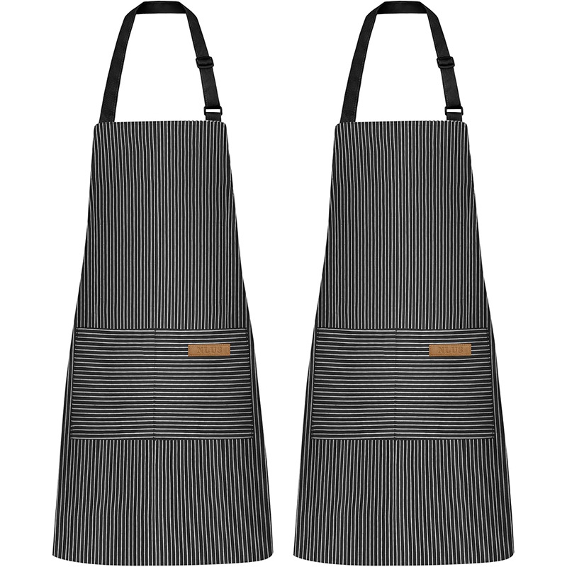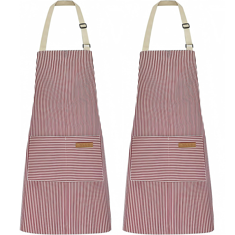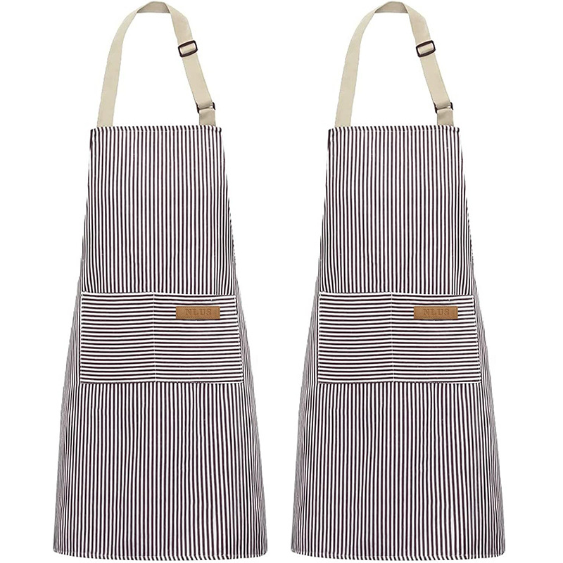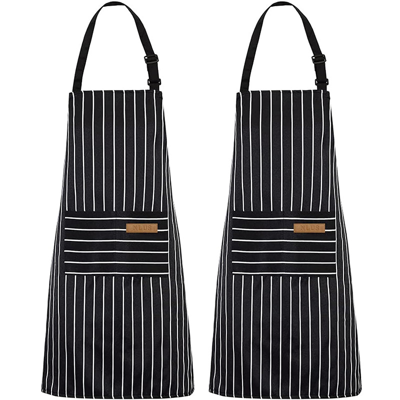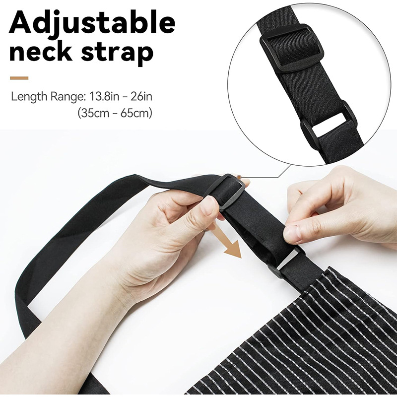 跨境涤纶家用围裙定制logo户外园艺挂脖可调节餐厅工作服围裙条纹
