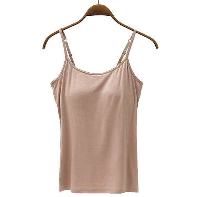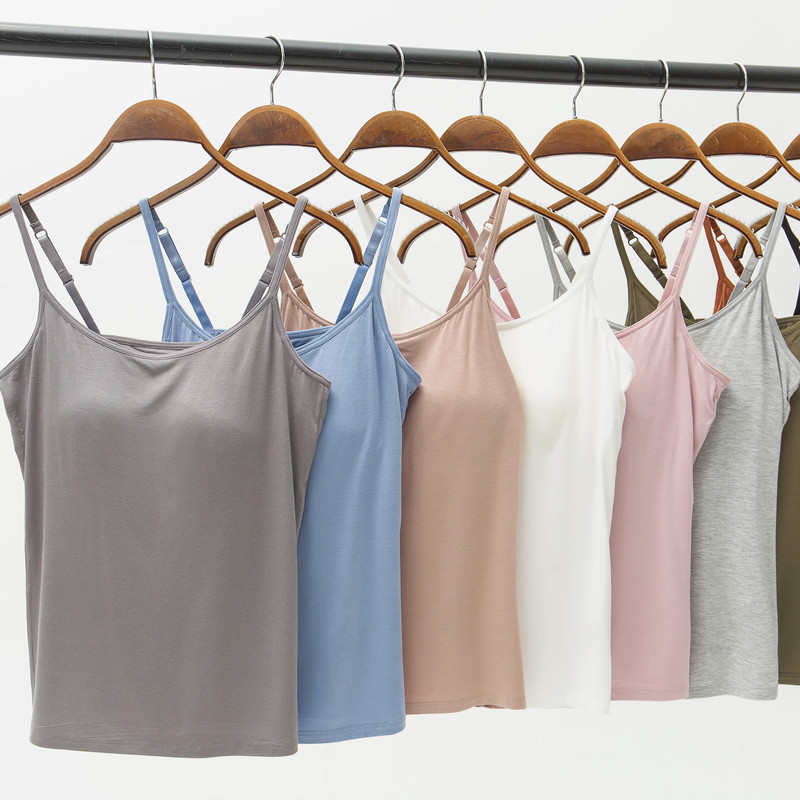 女莫代尔吊带背心带胸垫内搭修身无钢圈免文胸可调节肩带打底衫