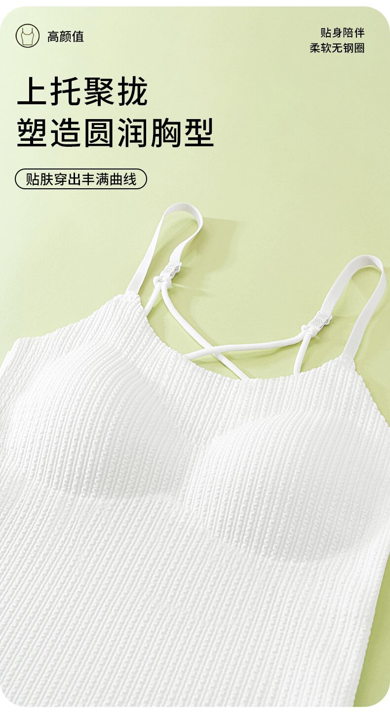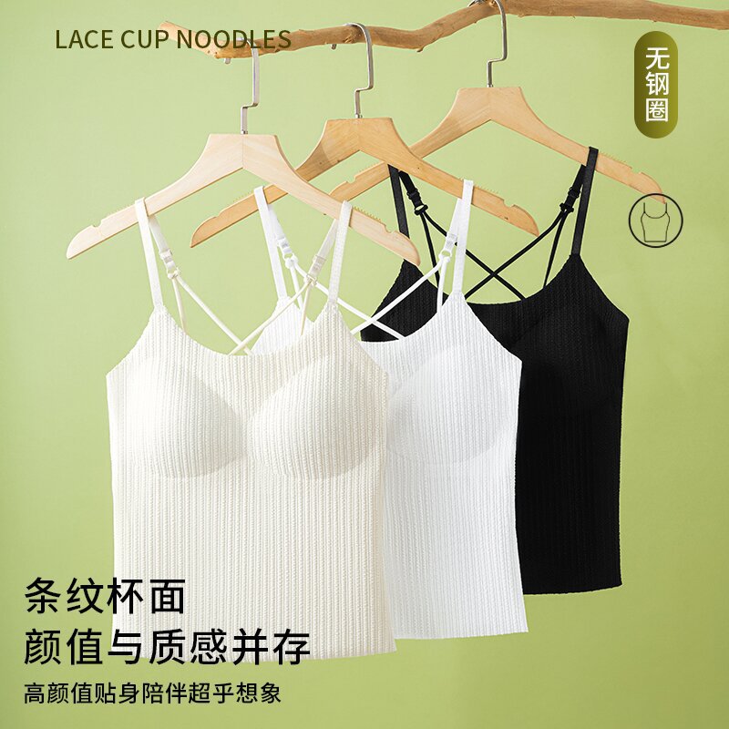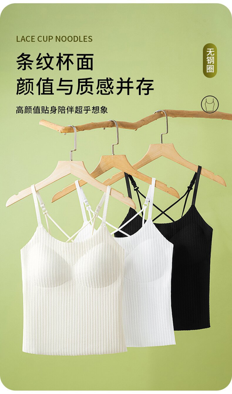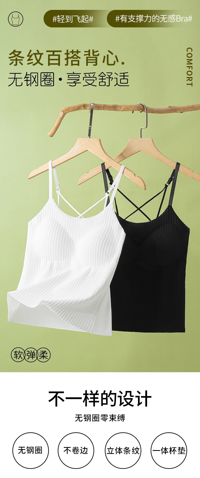直播爆款夏季条纹百搭吊带背心女内搭外穿收副乳显瘦无痕交叉美背