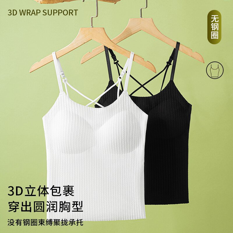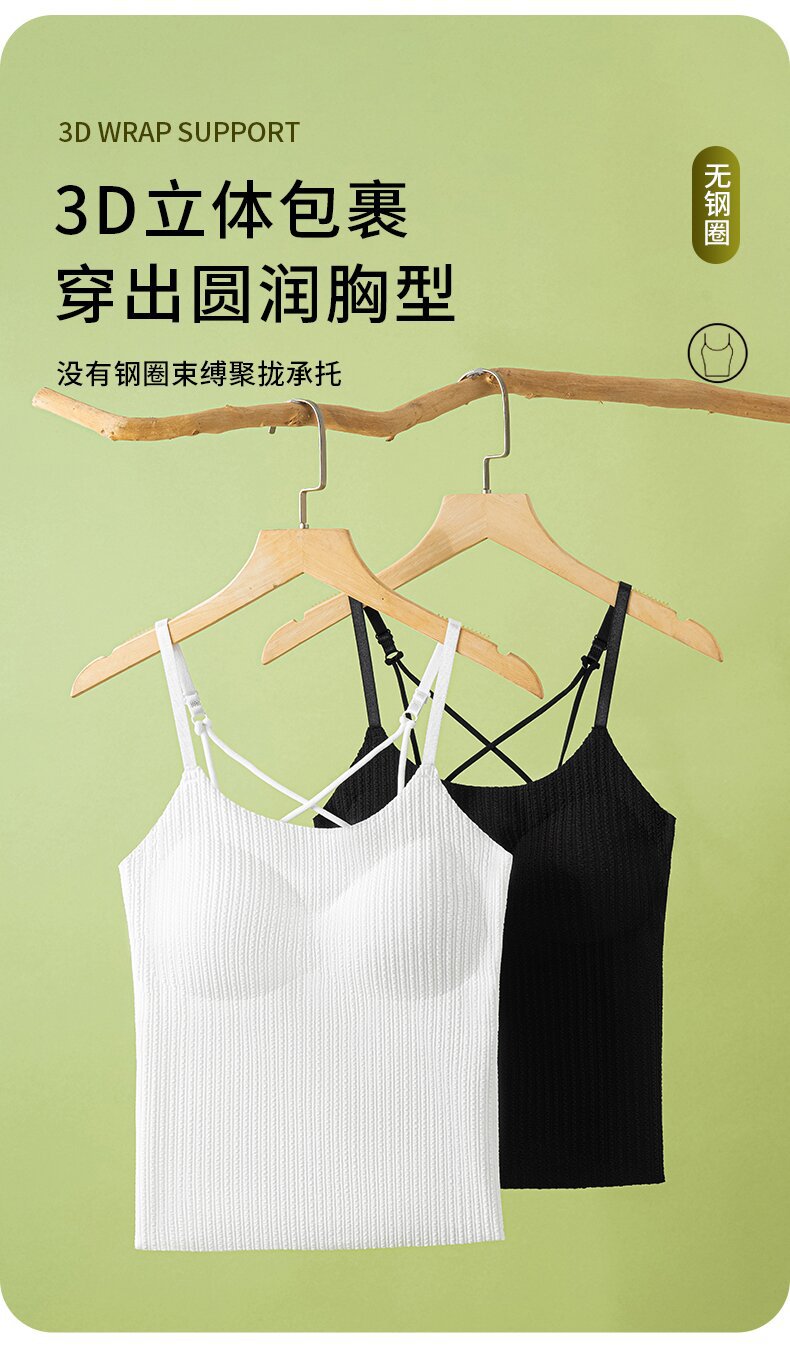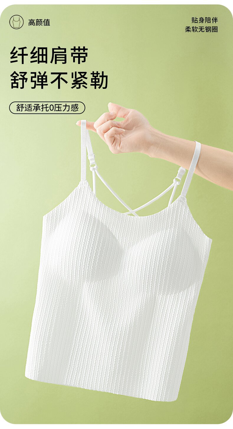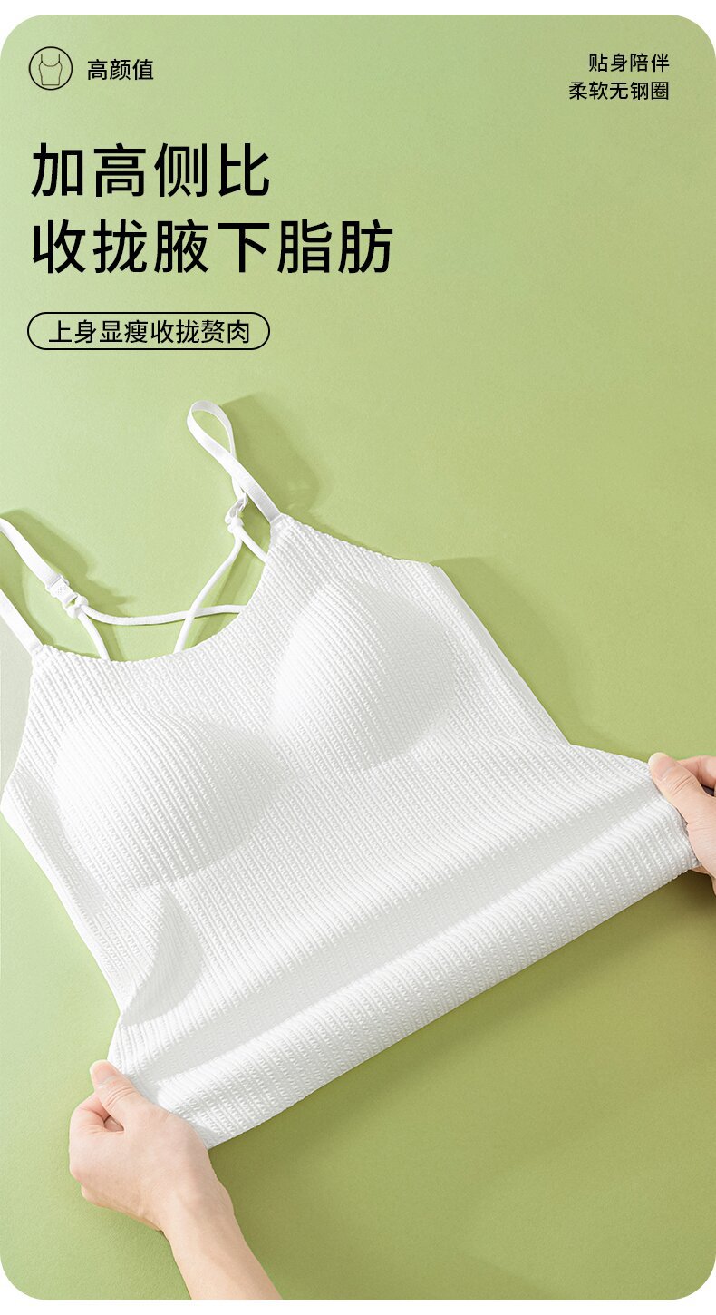 直播爆款夏季条纹百搭吊带背心女内搭外穿收副乳显瘦无痕交叉美背