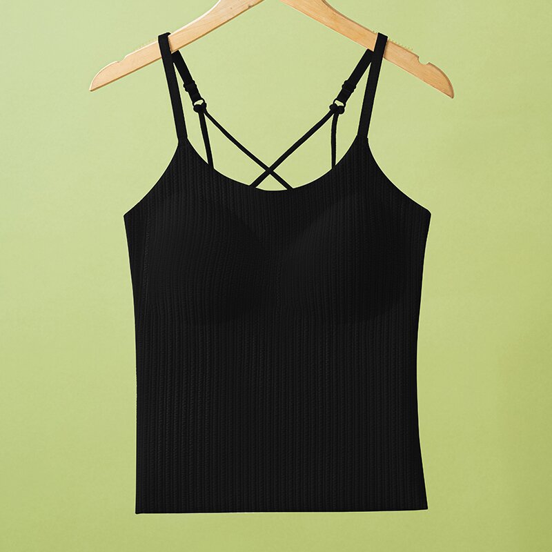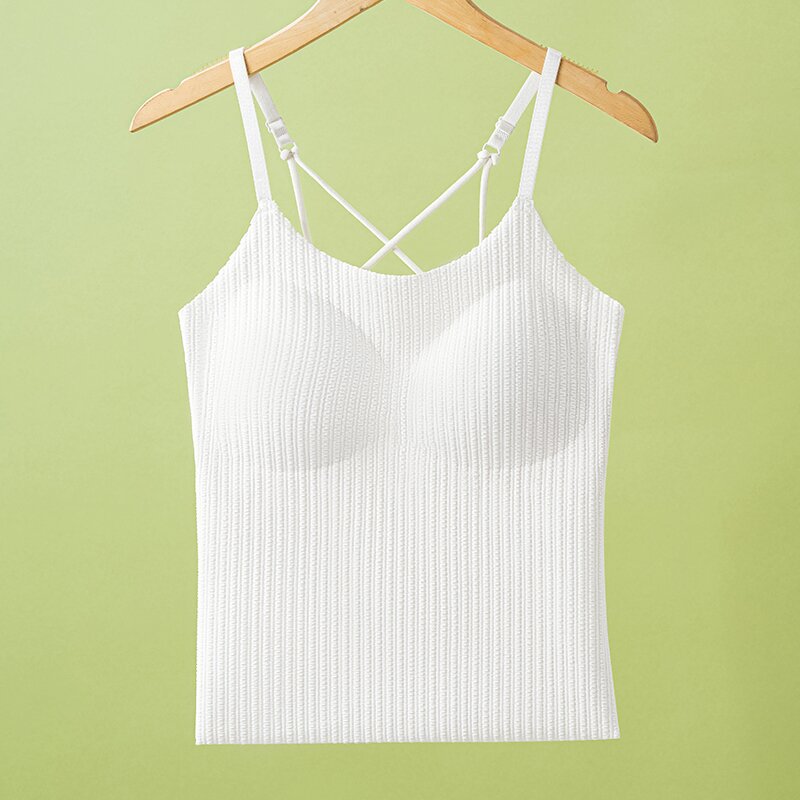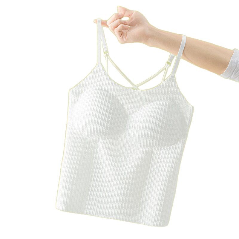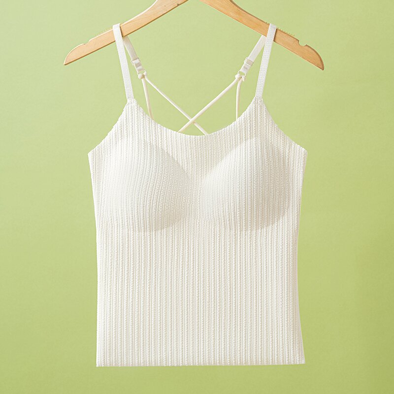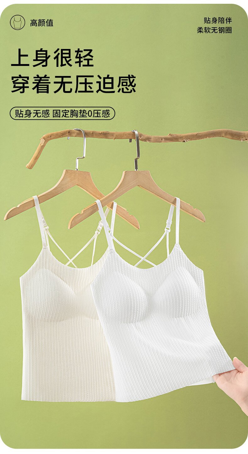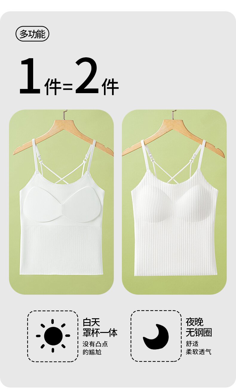 直播爆款夏季条纹百搭吊带背心女内搭外穿收副乳显瘦无痕交叉美背