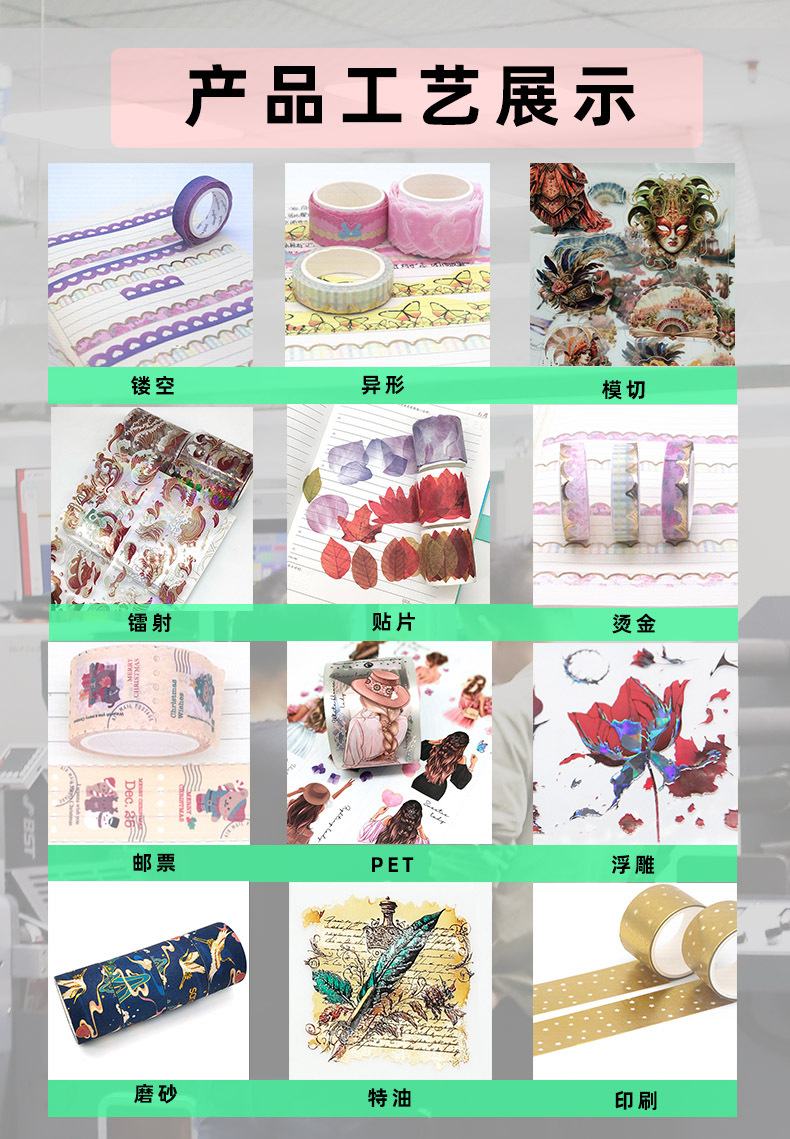 和纸胶带可书写社团手帐DIY文创卡通动漫pet特油烫金浮雕镭射贴纸