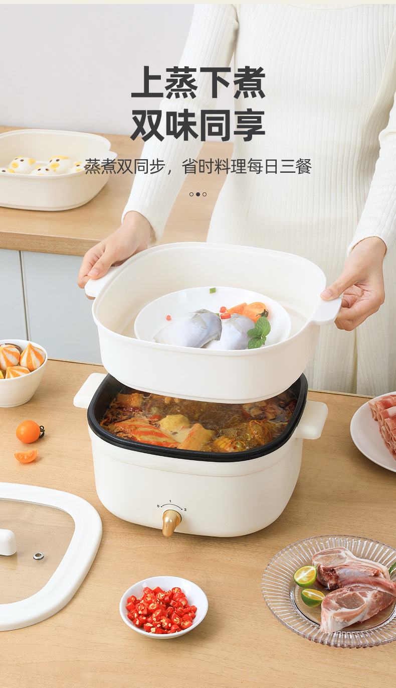 电热锅学生宿舍用小火锅蒸煮一体小电煮锅透明可视玻璃盖礼品锅