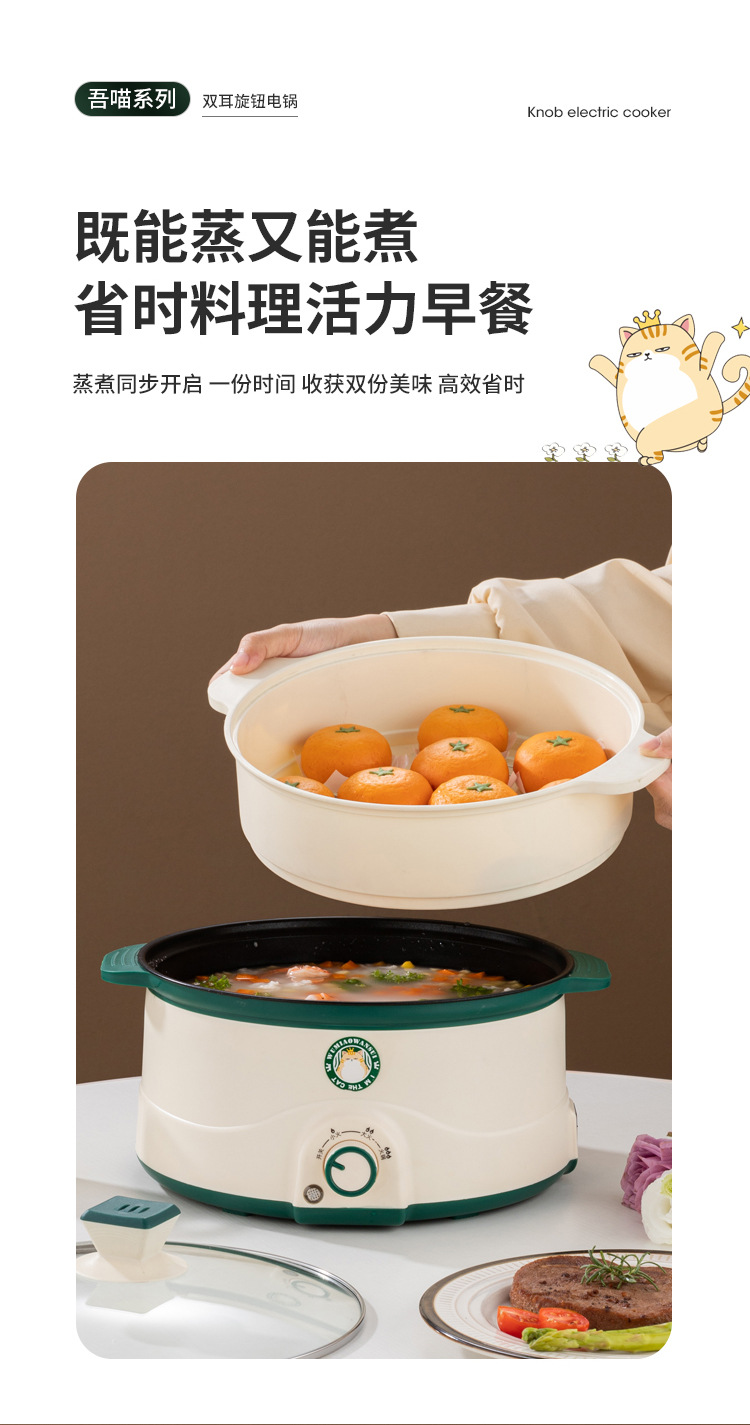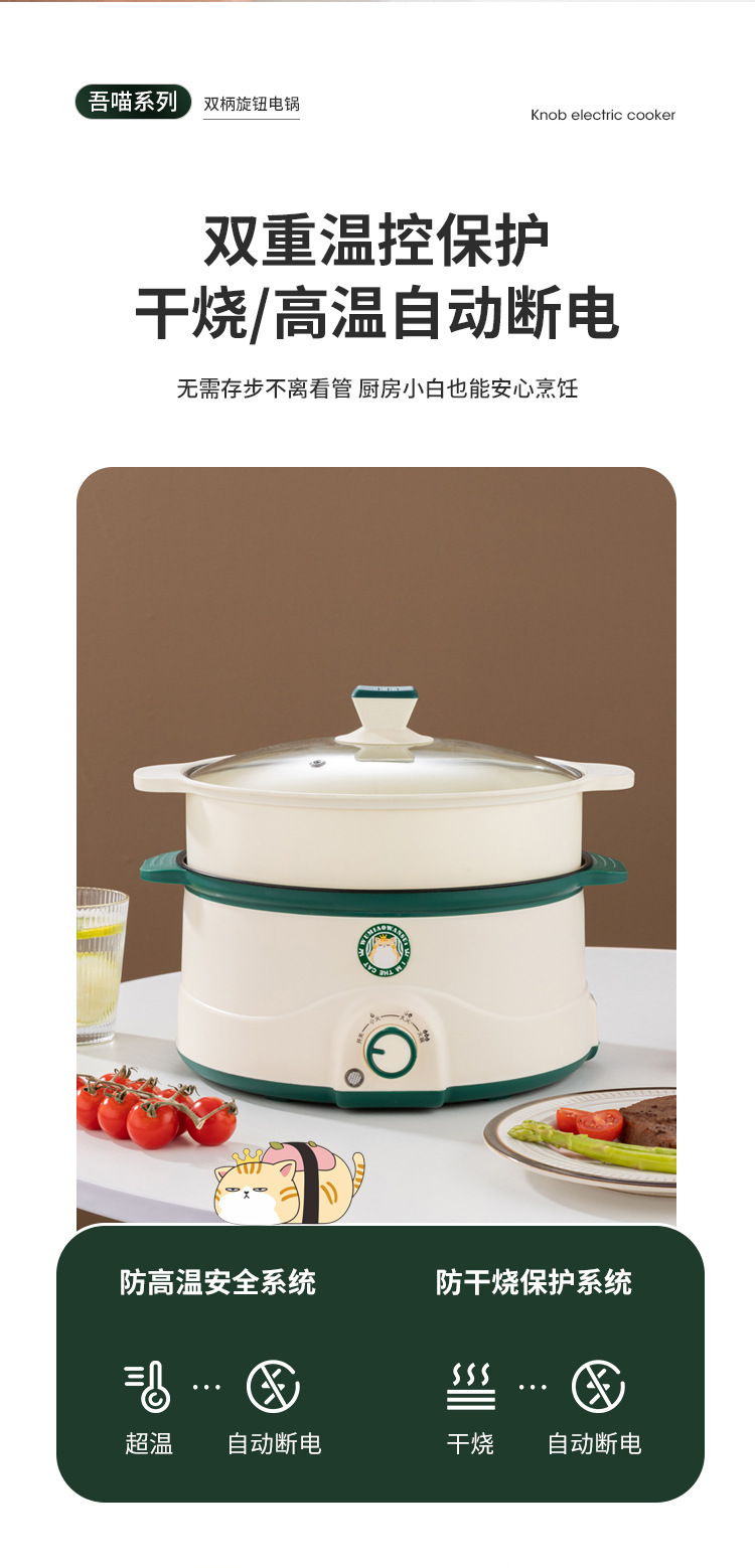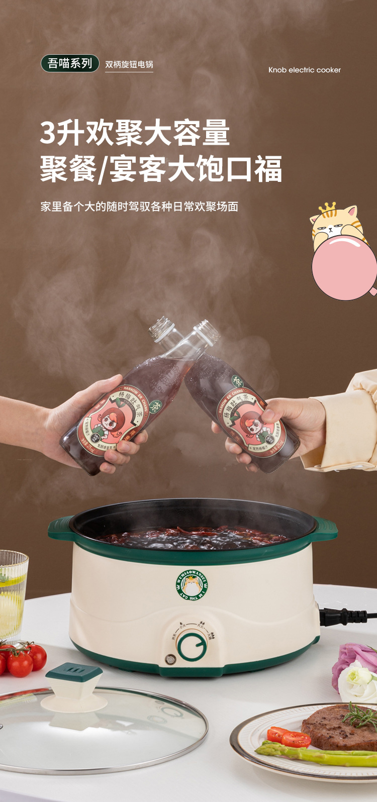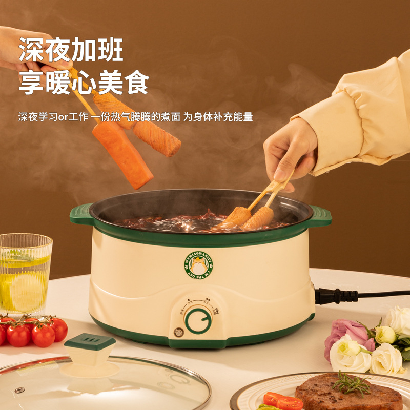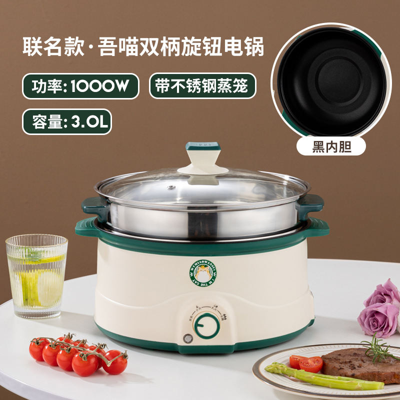 粤尔德直供吾喵联名款电锅宿舍电火锅多功能一体式蒸煮电煮锅代发
