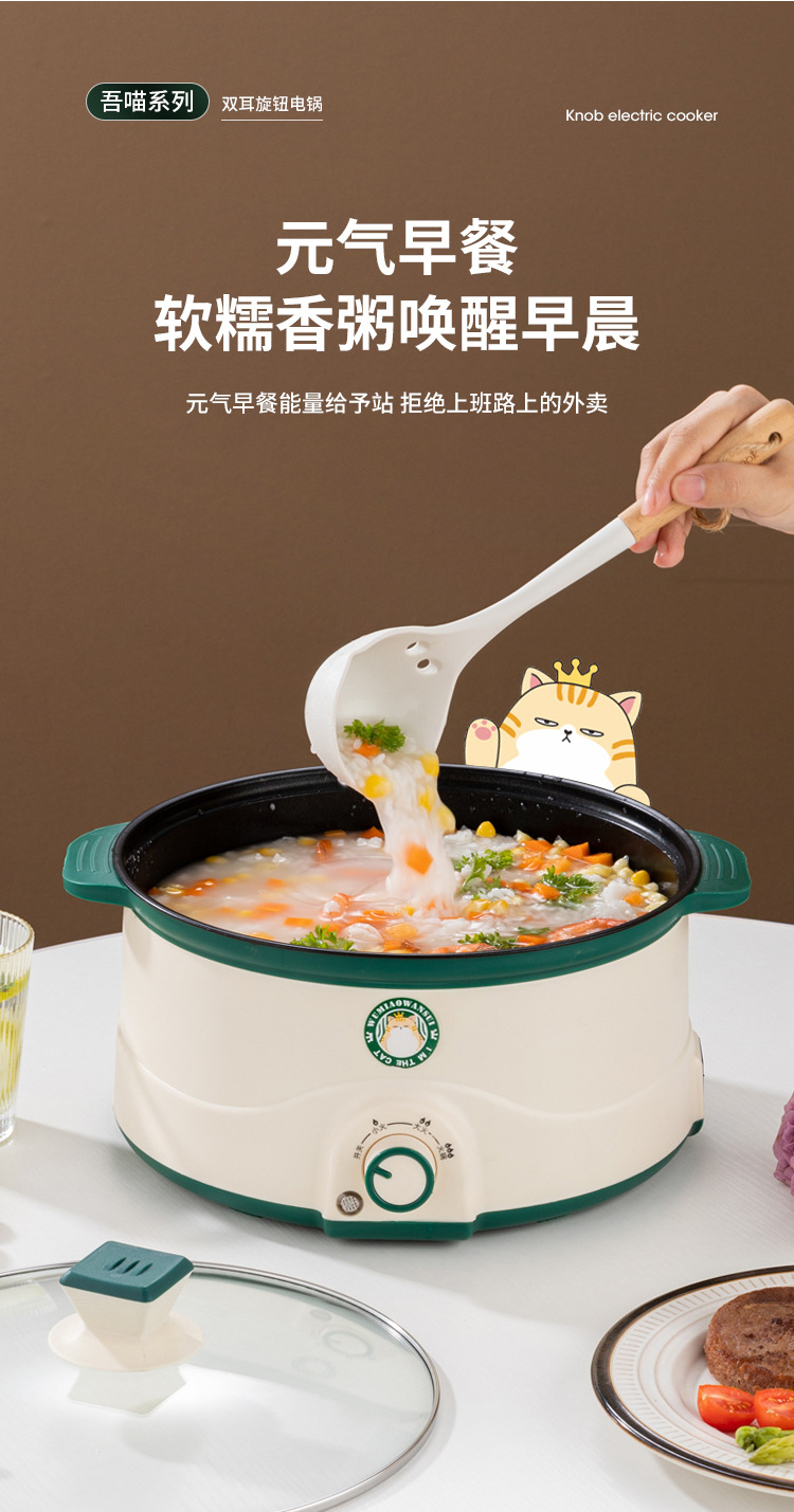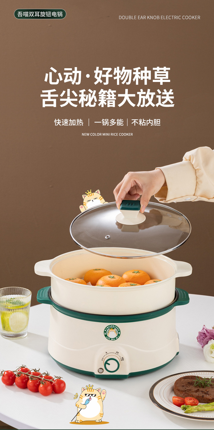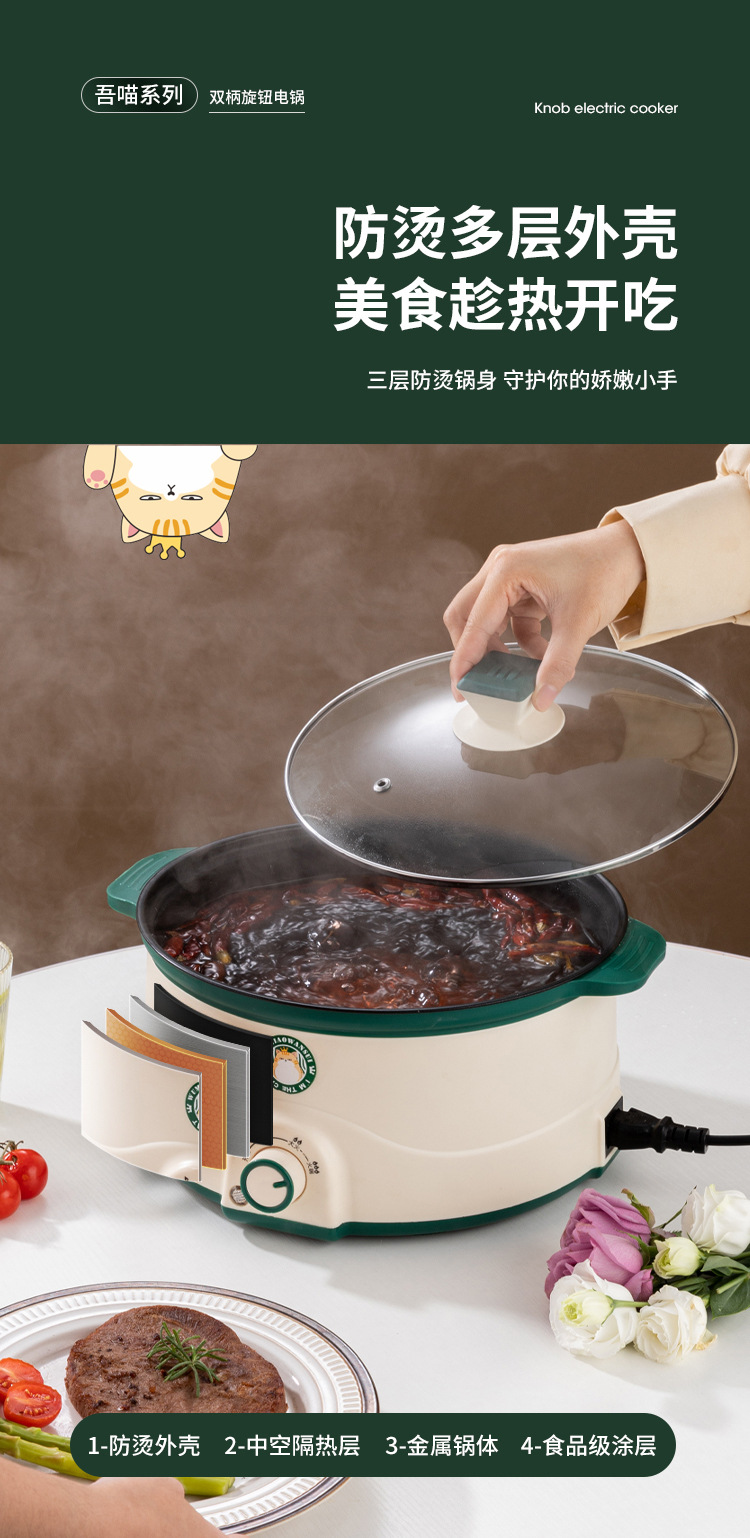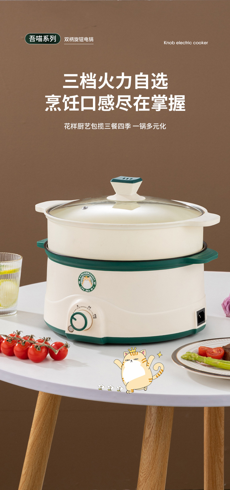 粤尔德直供吾喵联名款电锅宿舍电火锅多功能一体式蒸煮电煮锅代发