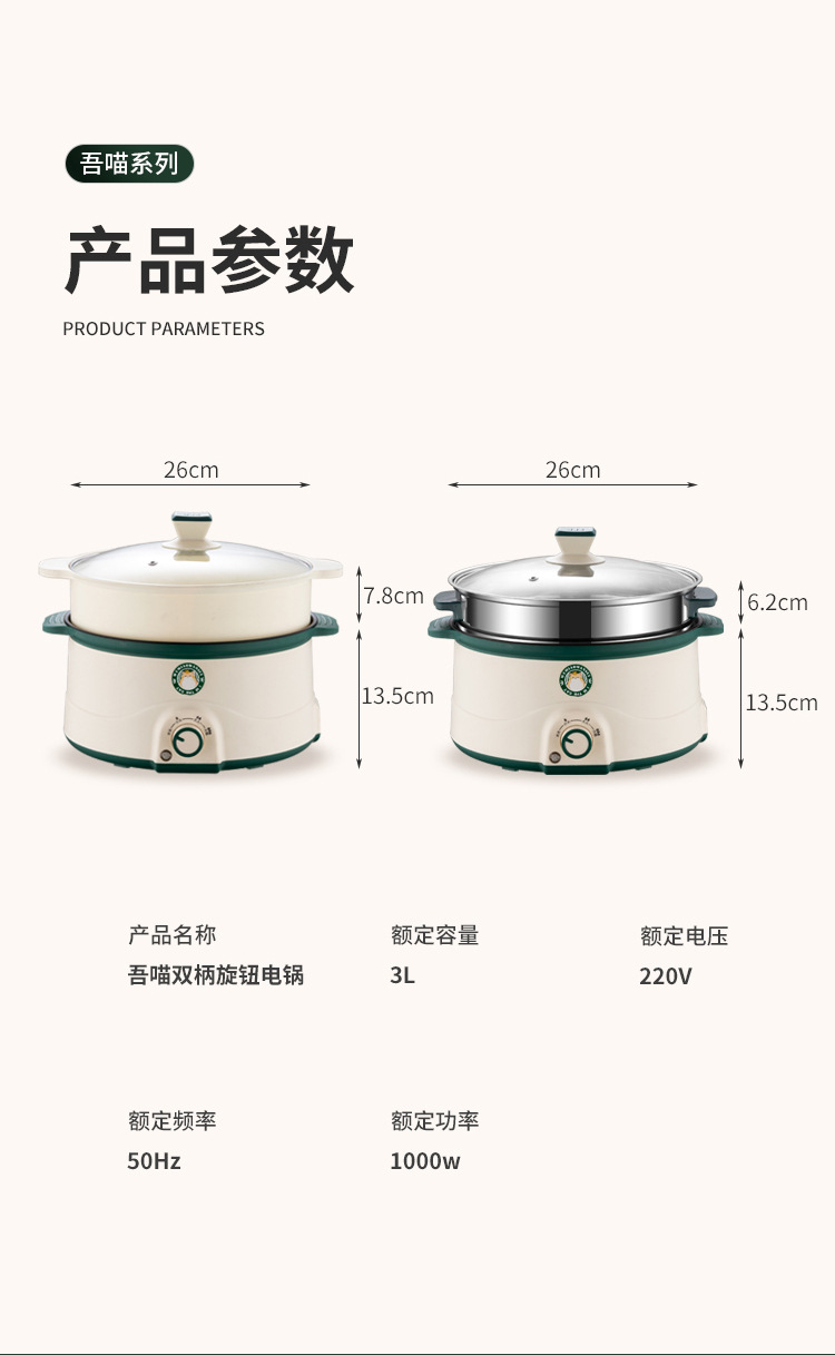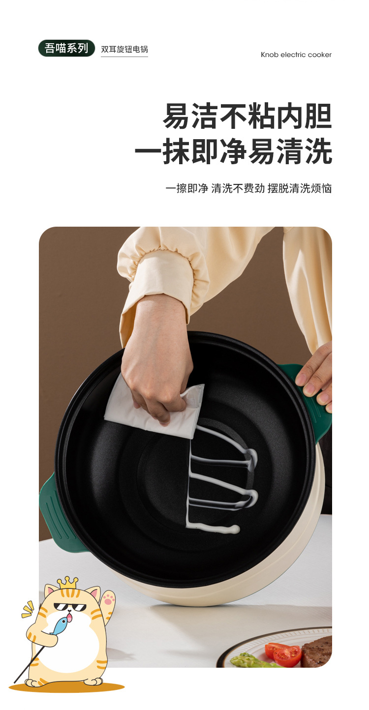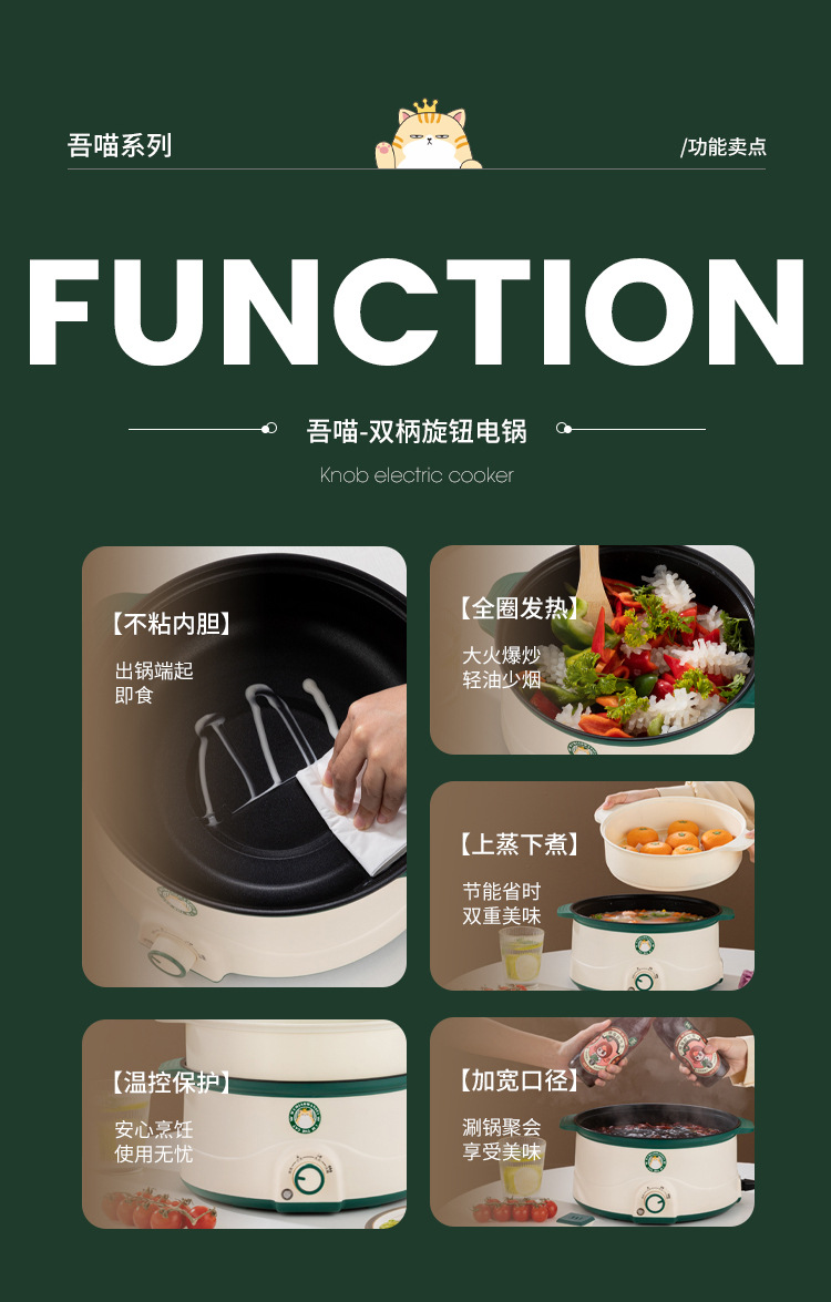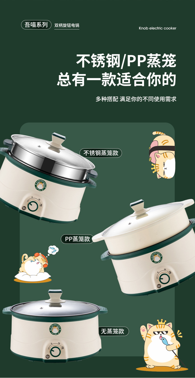 粤尔德直供吾喵联名款电锅宿舍电火锅多功能一体式蒸煮电煮锅代发