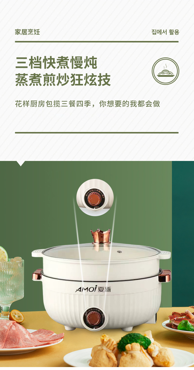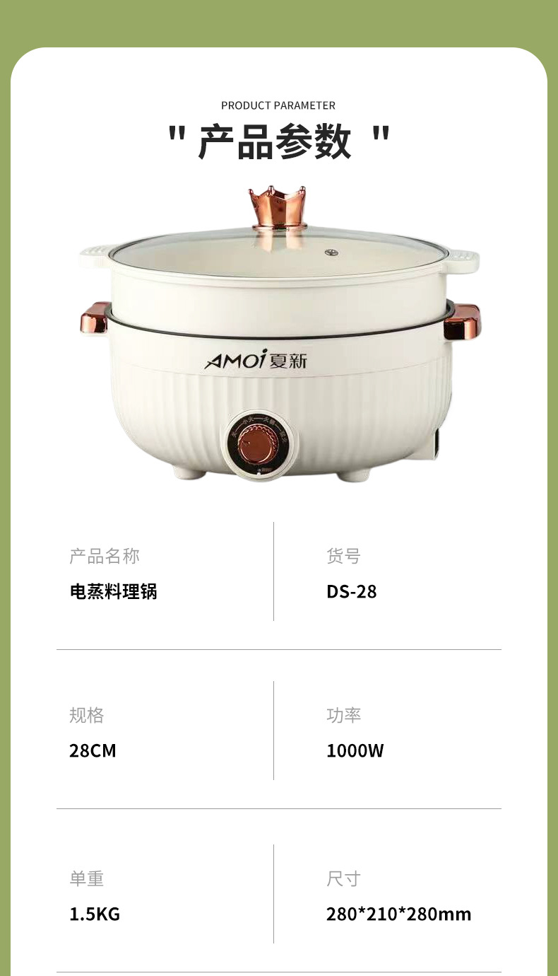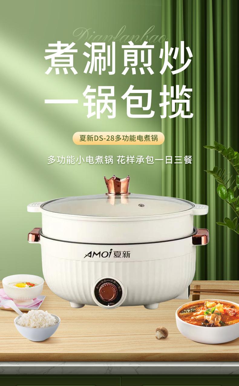 夏新电煮锅多功能电热锅一体锅家用宿舍电火锅电器不粘料理小电锅