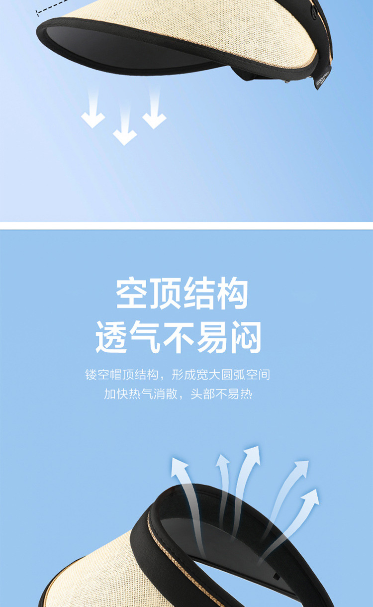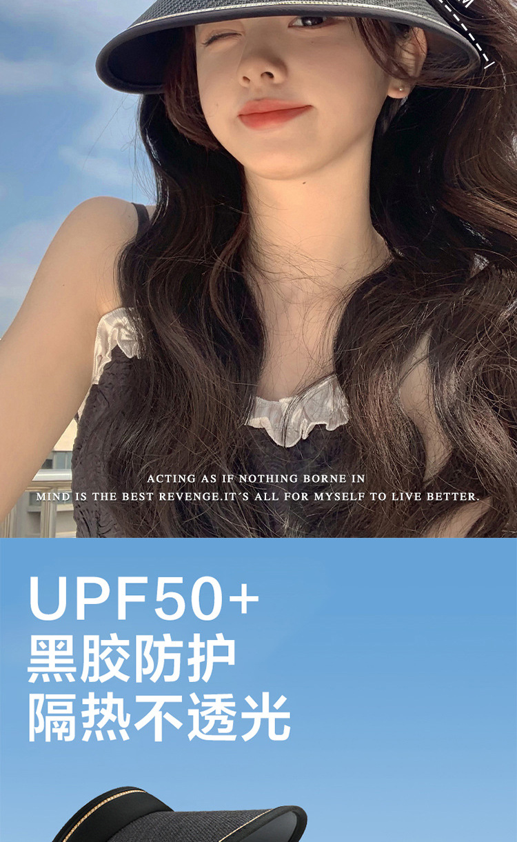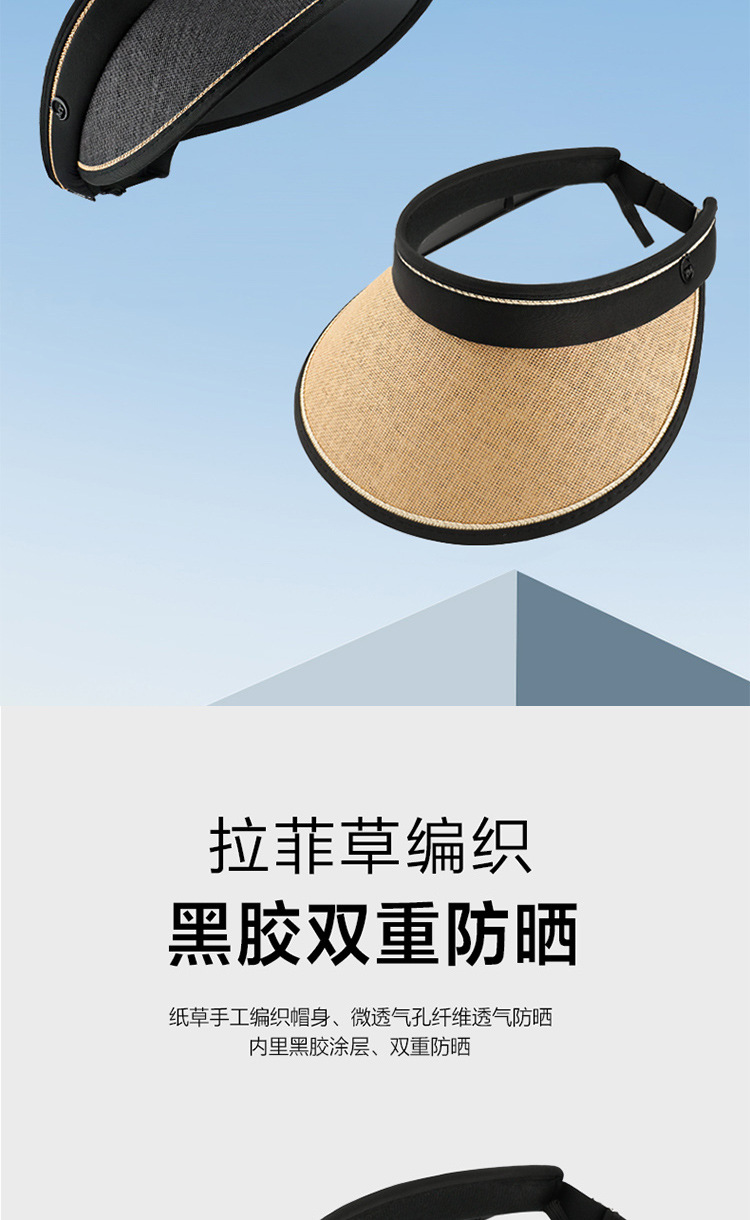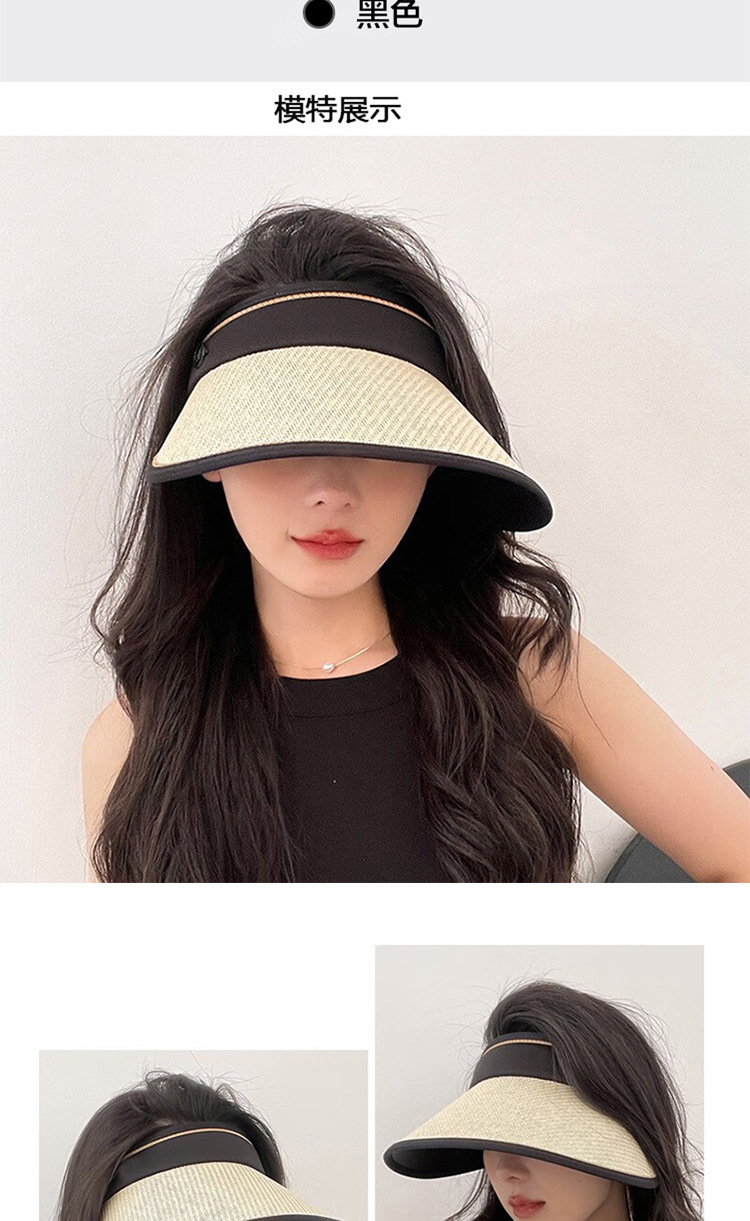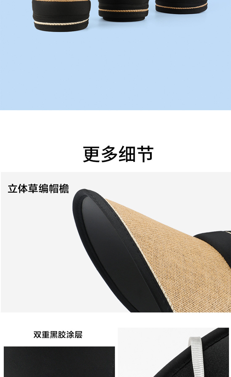 黑胶空顶防晒帽子夏季大檐遮脸防紫外线户外遮阳帽草编太阳帽女生