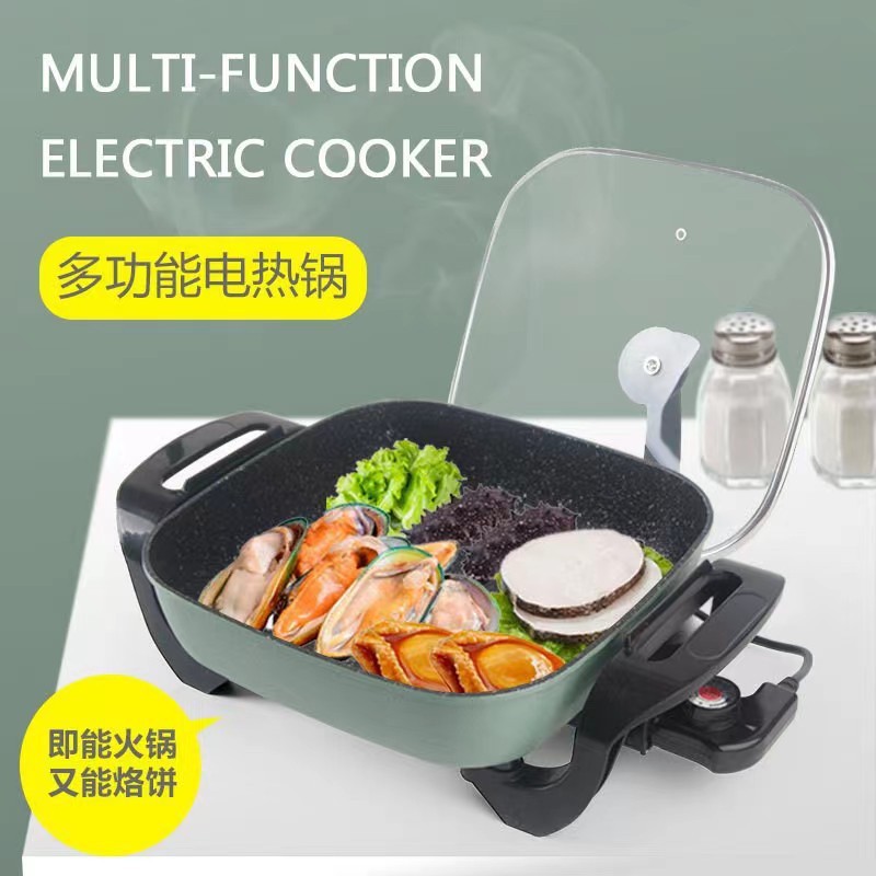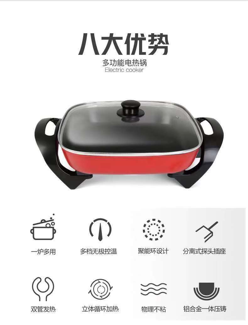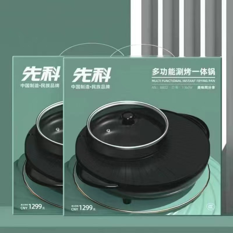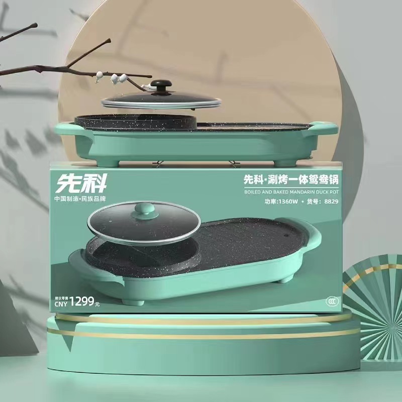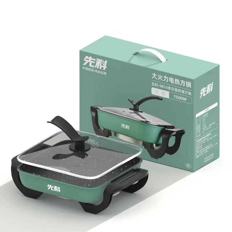 先科电火锅不粘四方锅小家电礼品电煮锅鸳鸯锅涮烤一体锅电烤盘